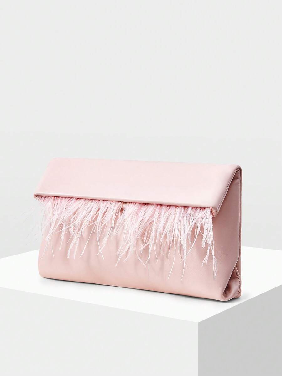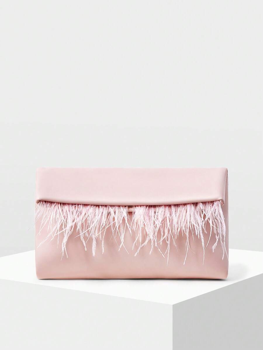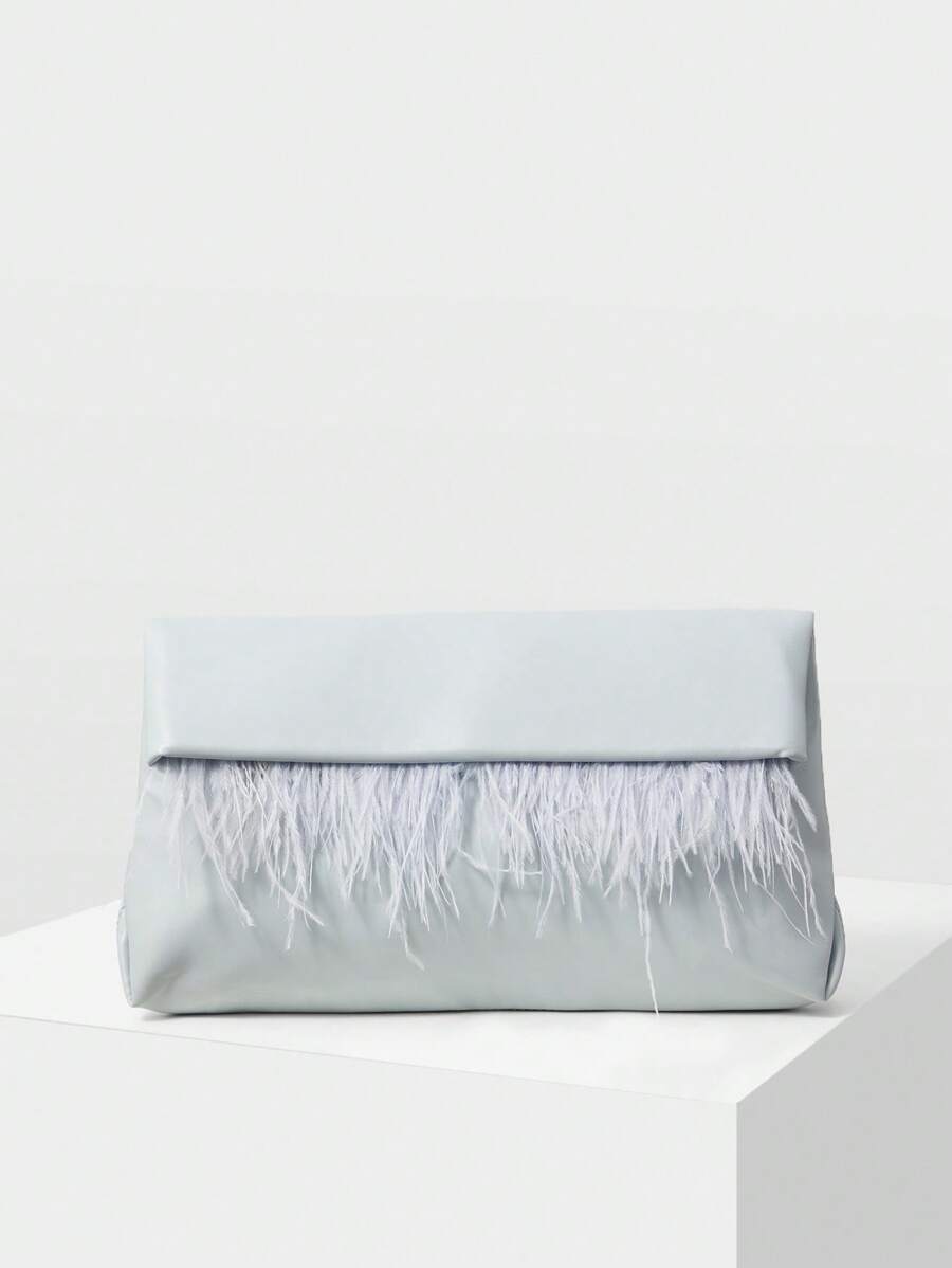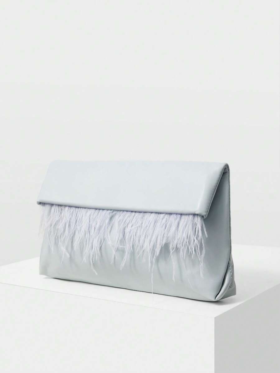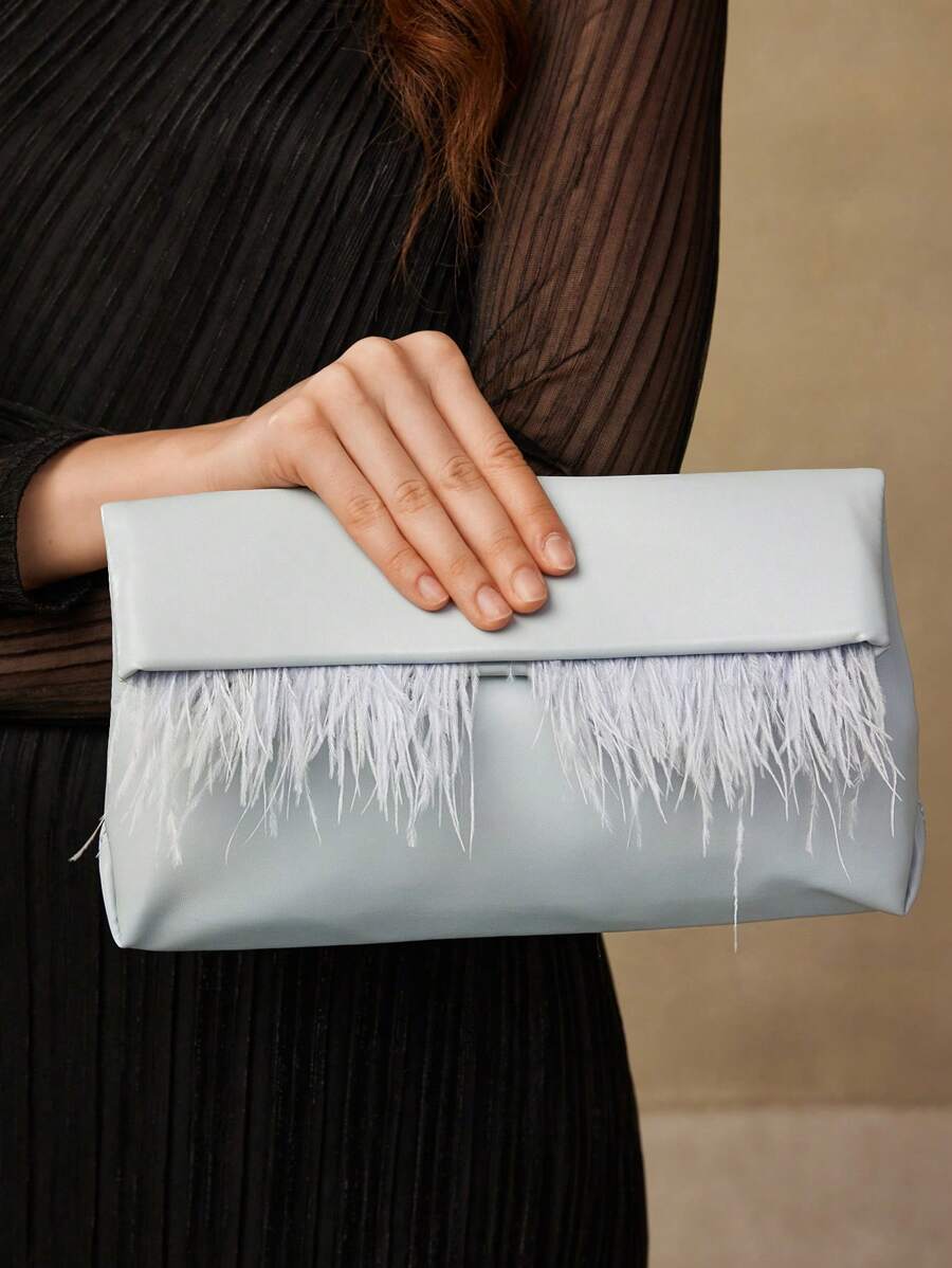 MIU PREMIUM WOMEN'S FASHION SQUARE FAUX FEATHER CLUTCH BAG, VALENTINES, PERFECTLY MATCHING WITH PROM DRESSES, PROM ACCESSORIES,SEQUIN DRESS SPARKLY DRESS