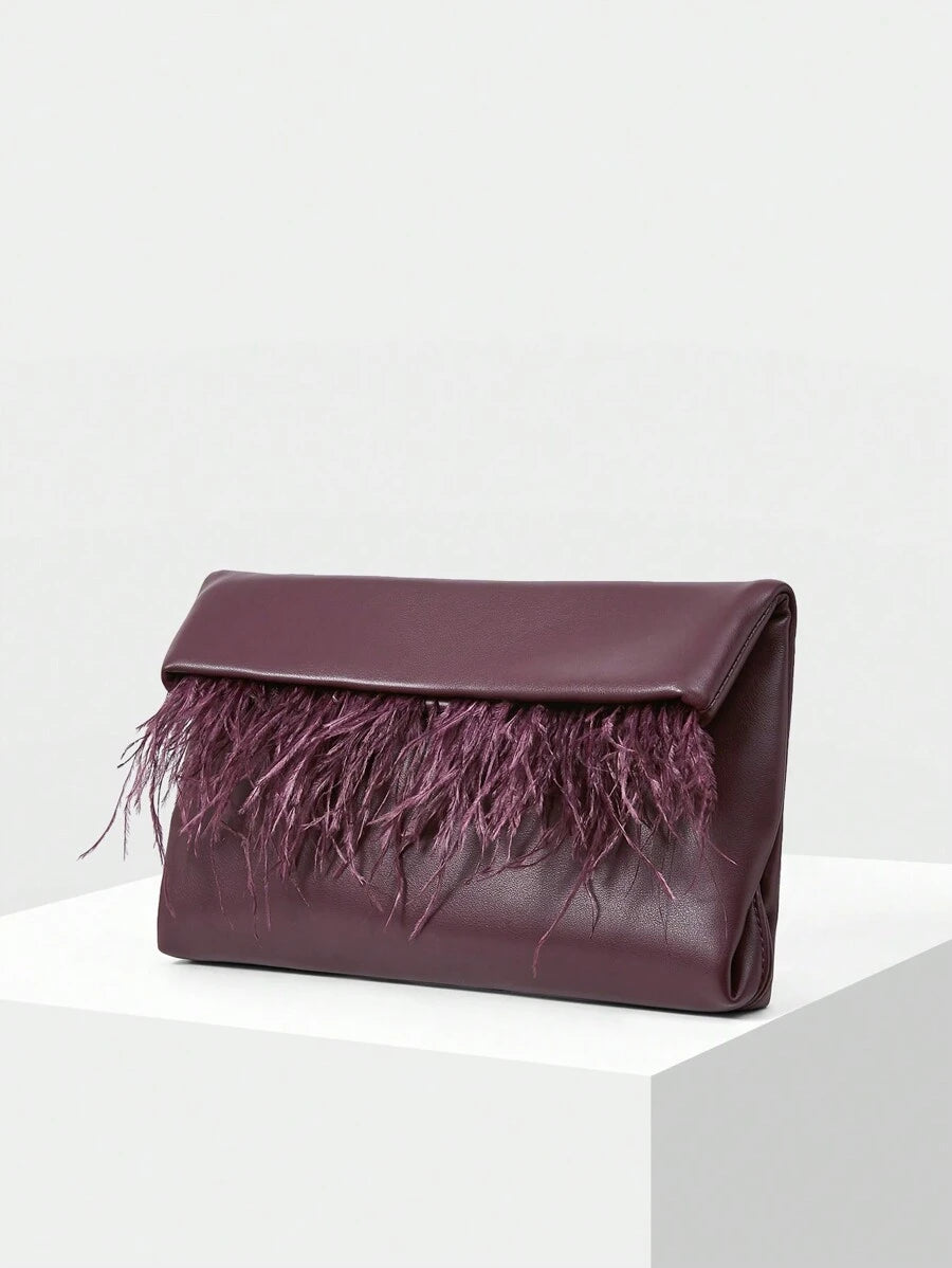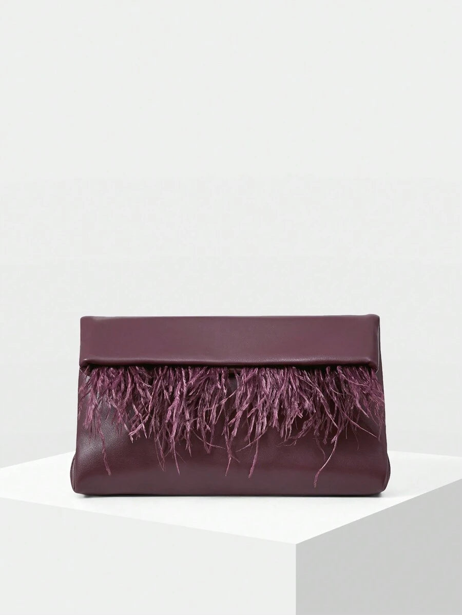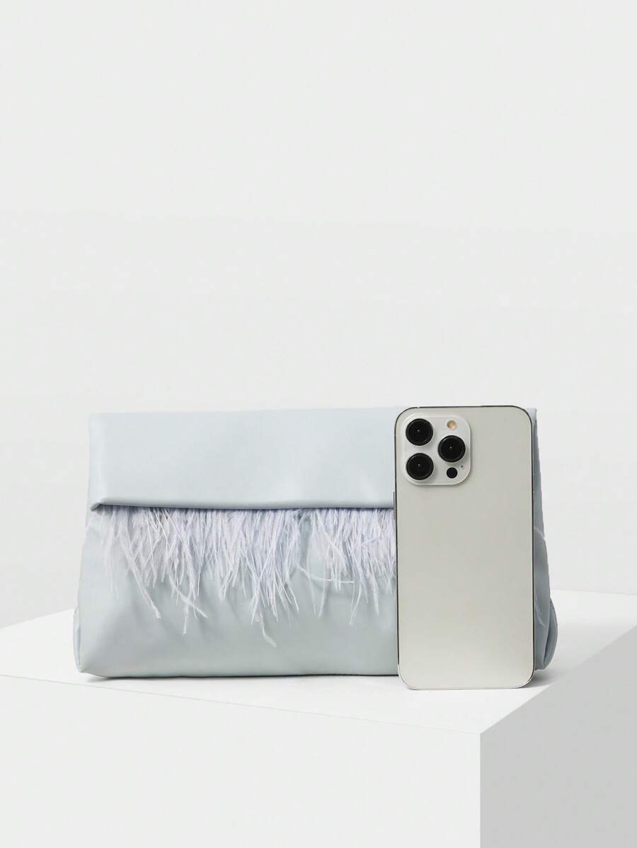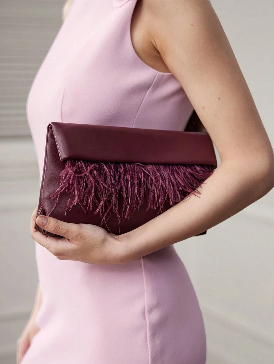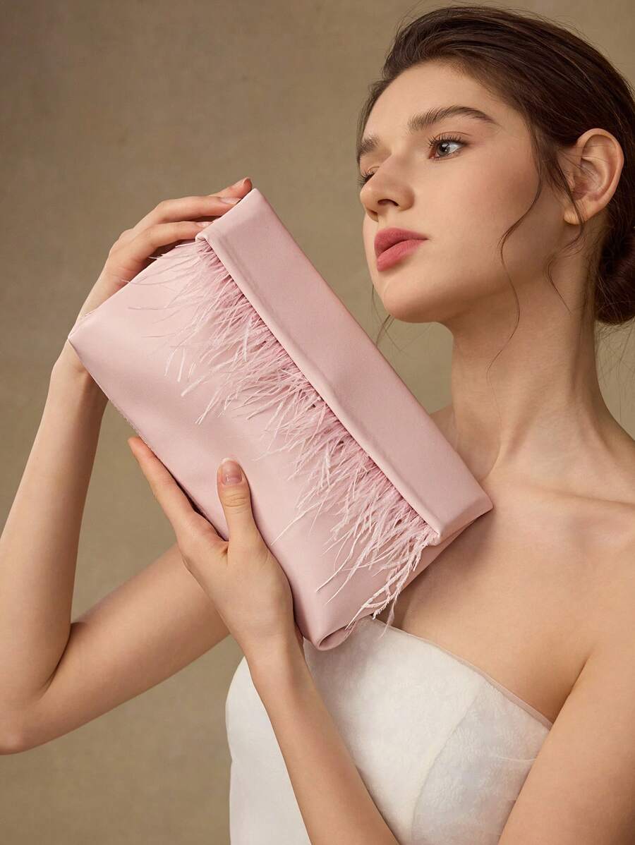 MIU PREMIUM WOMEN'S FASHION SQUARE FAUX FEATHER CLUTCH BAG, VALENTINES, PERFECTLY MATCHING WITH PROM DRESSES, PROM ACCESSORIES,SEQUIN DRESS SPARKLY DRESS