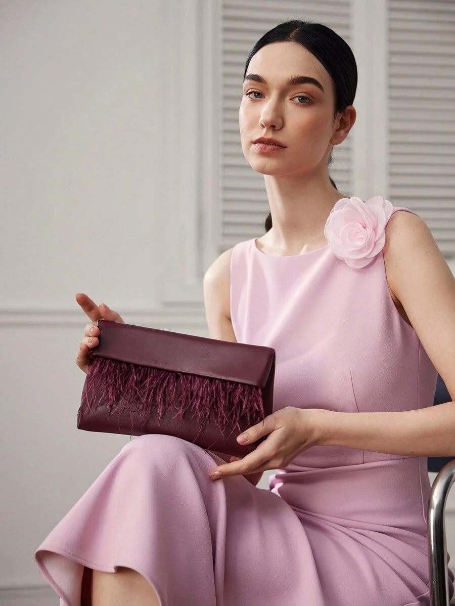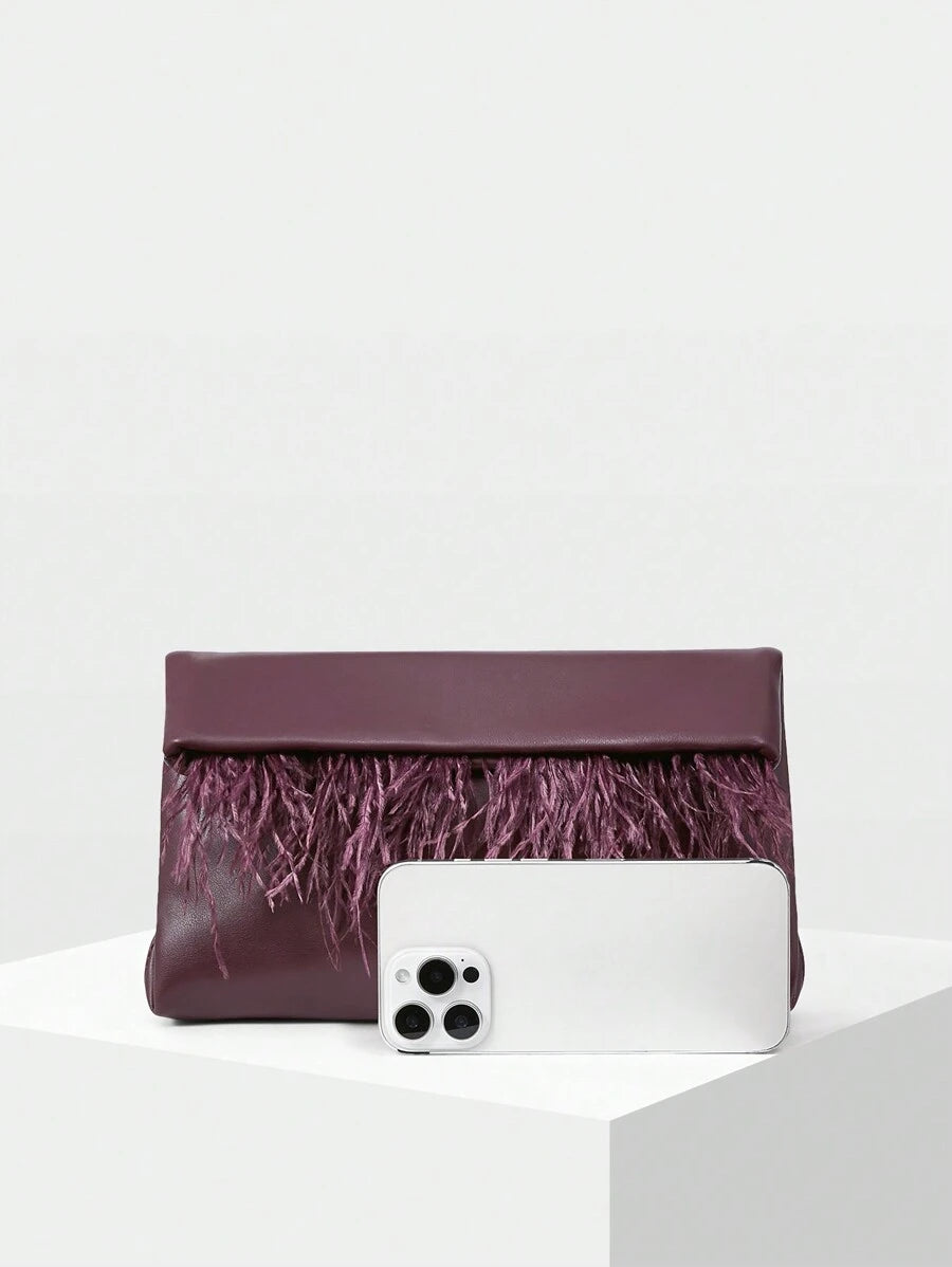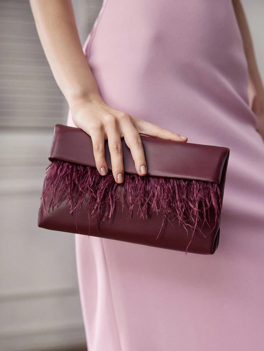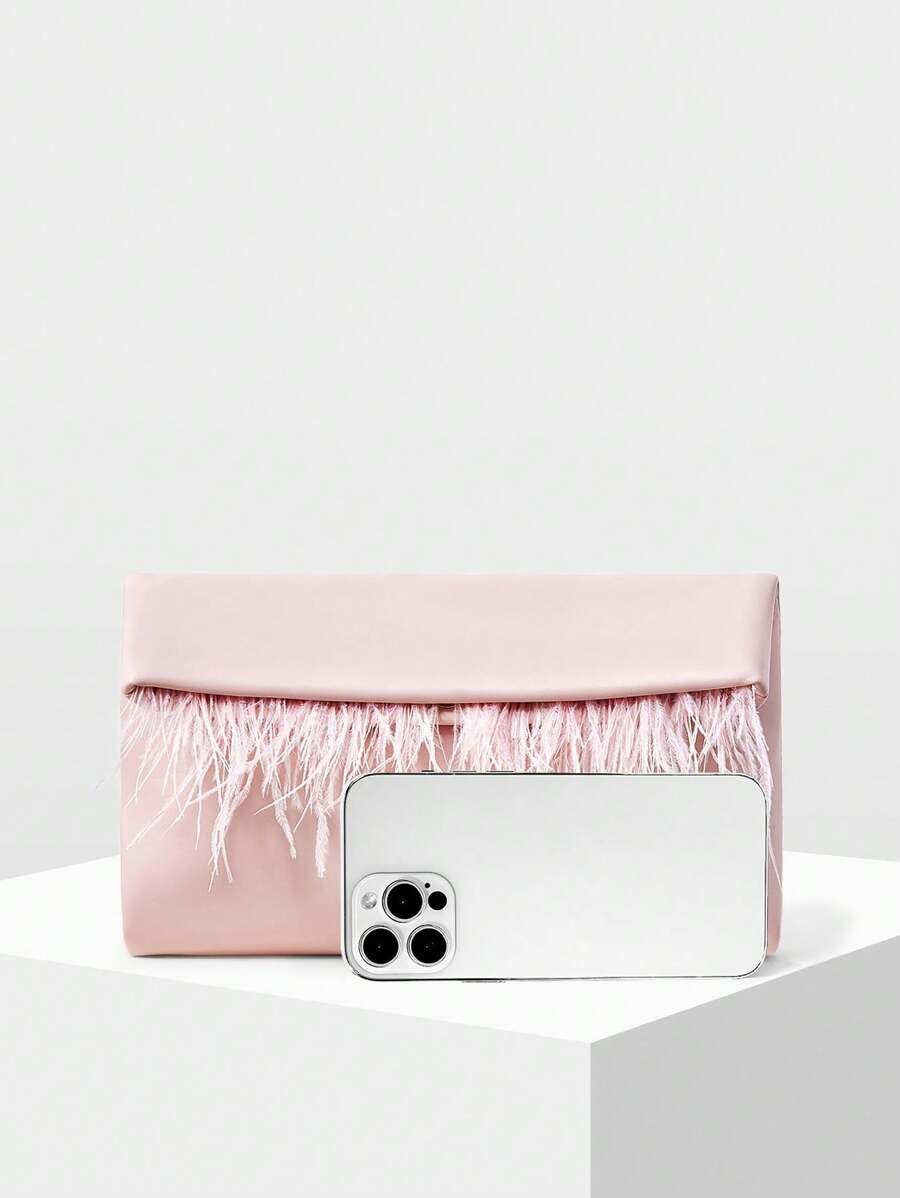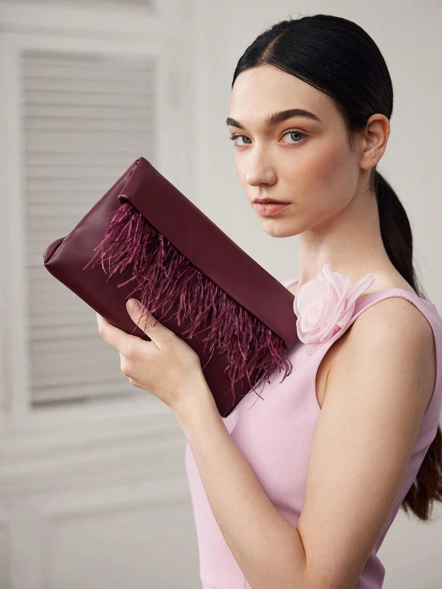 MIU PREMIUM WOMEN'S FASHION SQUARE FAUX FEATHER CLUTCH BAG, VALENTINES, PERFECTLY MATCHING WITH PROM DRESSES, PROM ACCESSORIES,SEQUIN DRESS SPARKLY DRESS