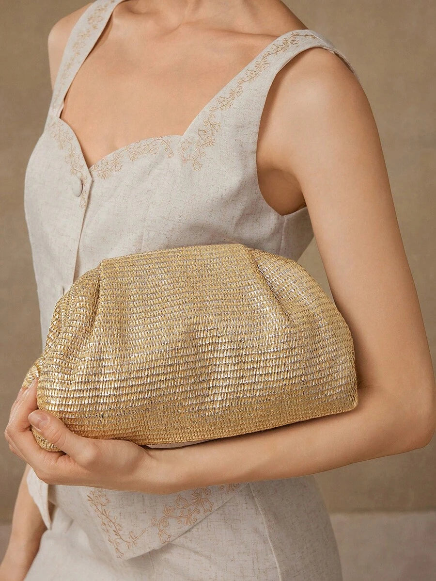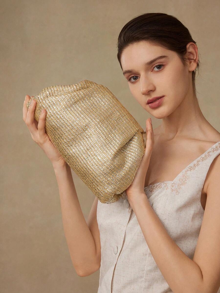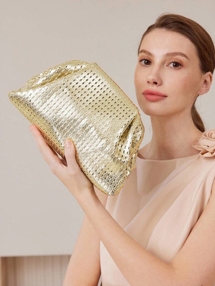 MIU PREMIUM WOMEN'S GOLD TEXTURED CLUTCH BAG, FASHIONABLE BRIDE BAG, PERFECT FOR PARTY,WEDDING, PROM,DINNER/BANQUET, MATCHING WITH WEDDING DRESS, FORMAL DRESSES, PROM DRESS, BIRTHDAY DRESS, PARTY DRESS, VALENTINES, LADIES' ELEGANT BAG