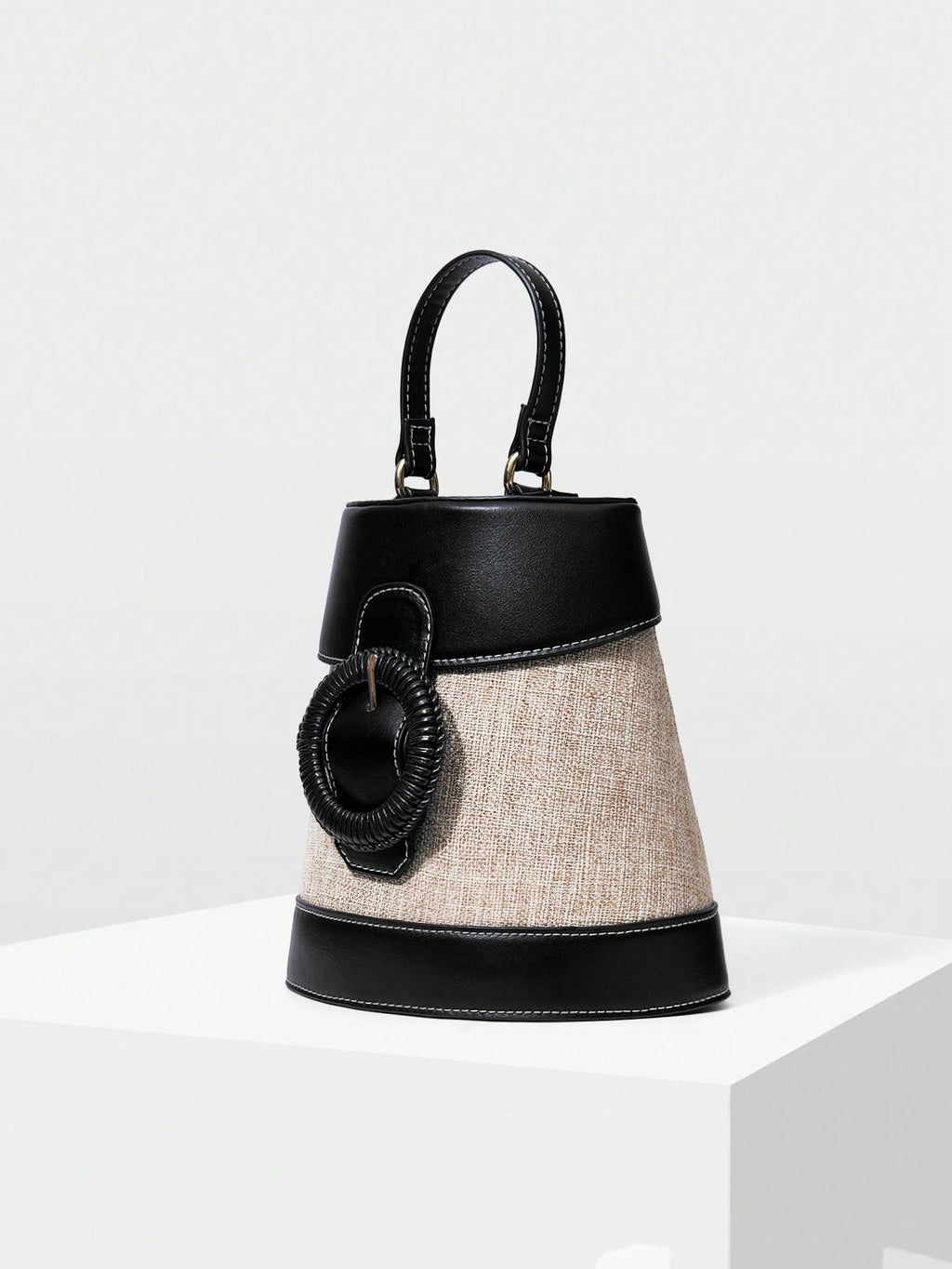 MIU PREMIUM WOMEN'S PU LEATHER BUCKLE DETAIL COMMUTER HANDBAG