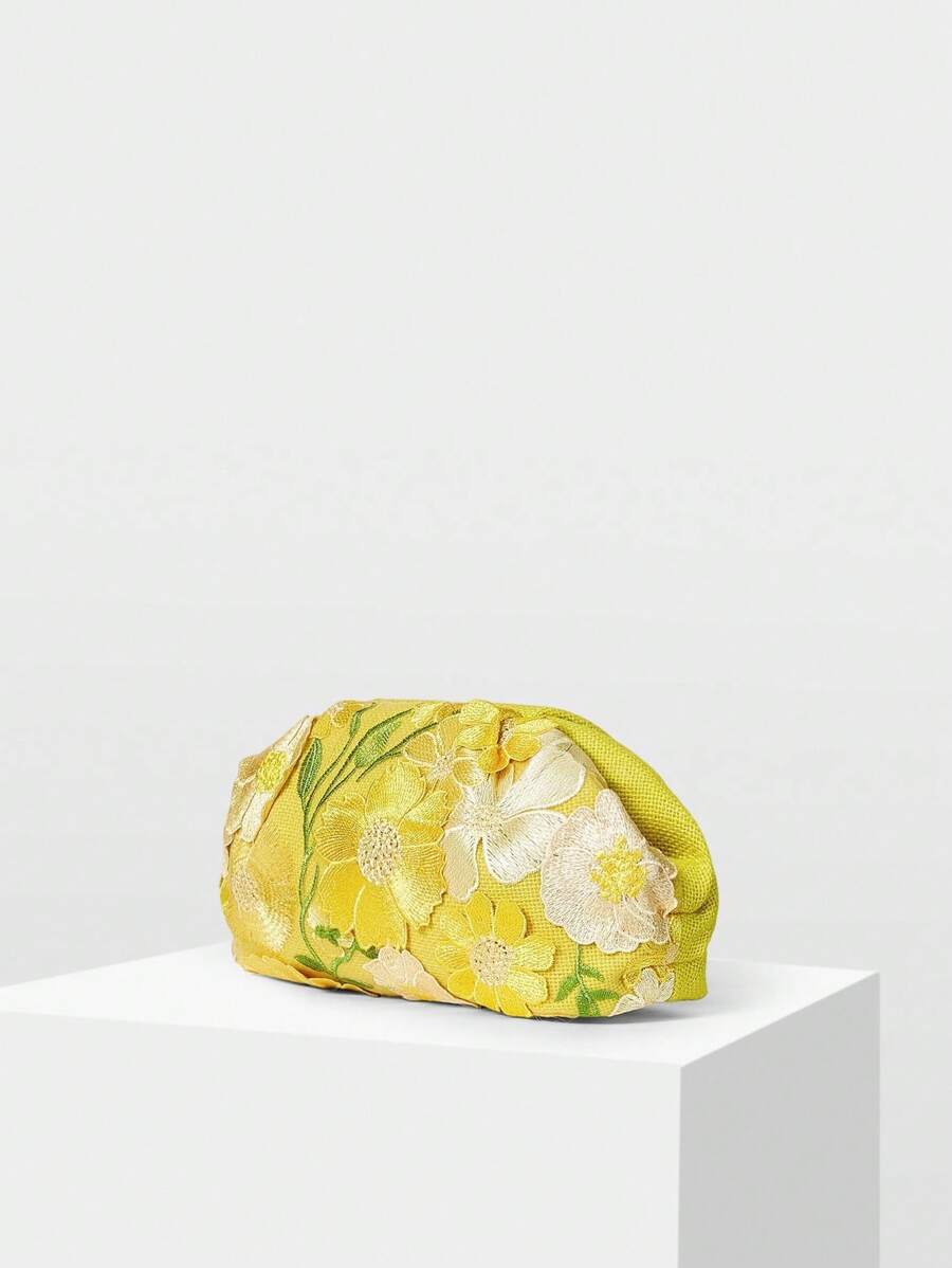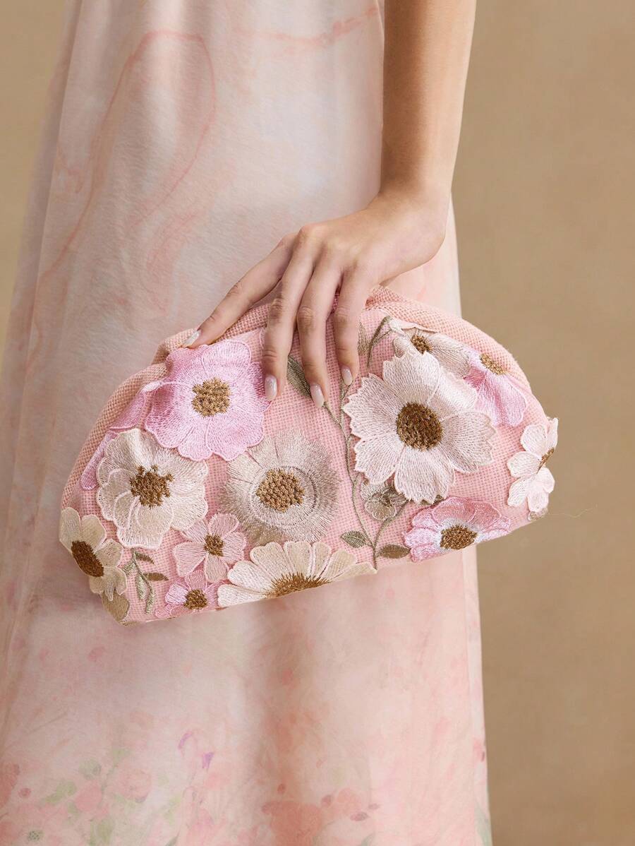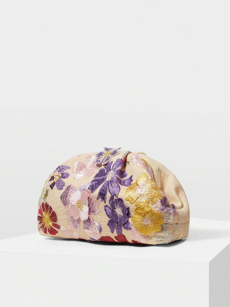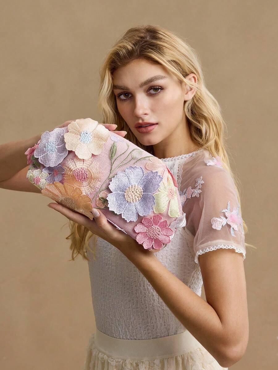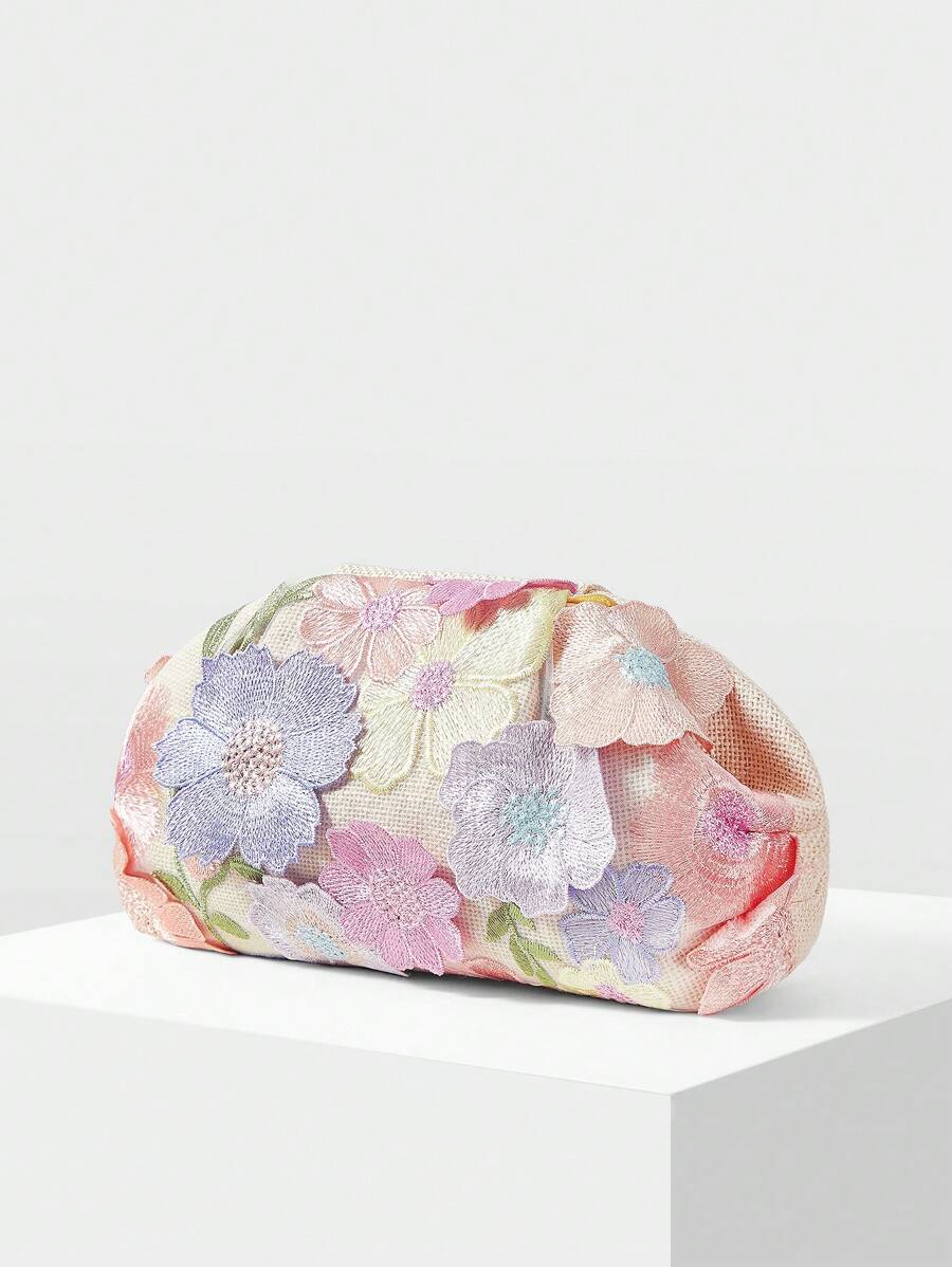 MIU PREMIUM WOMEN'S VACATION STYLE FLORAL EMBROIDERED CLUTCH BAG