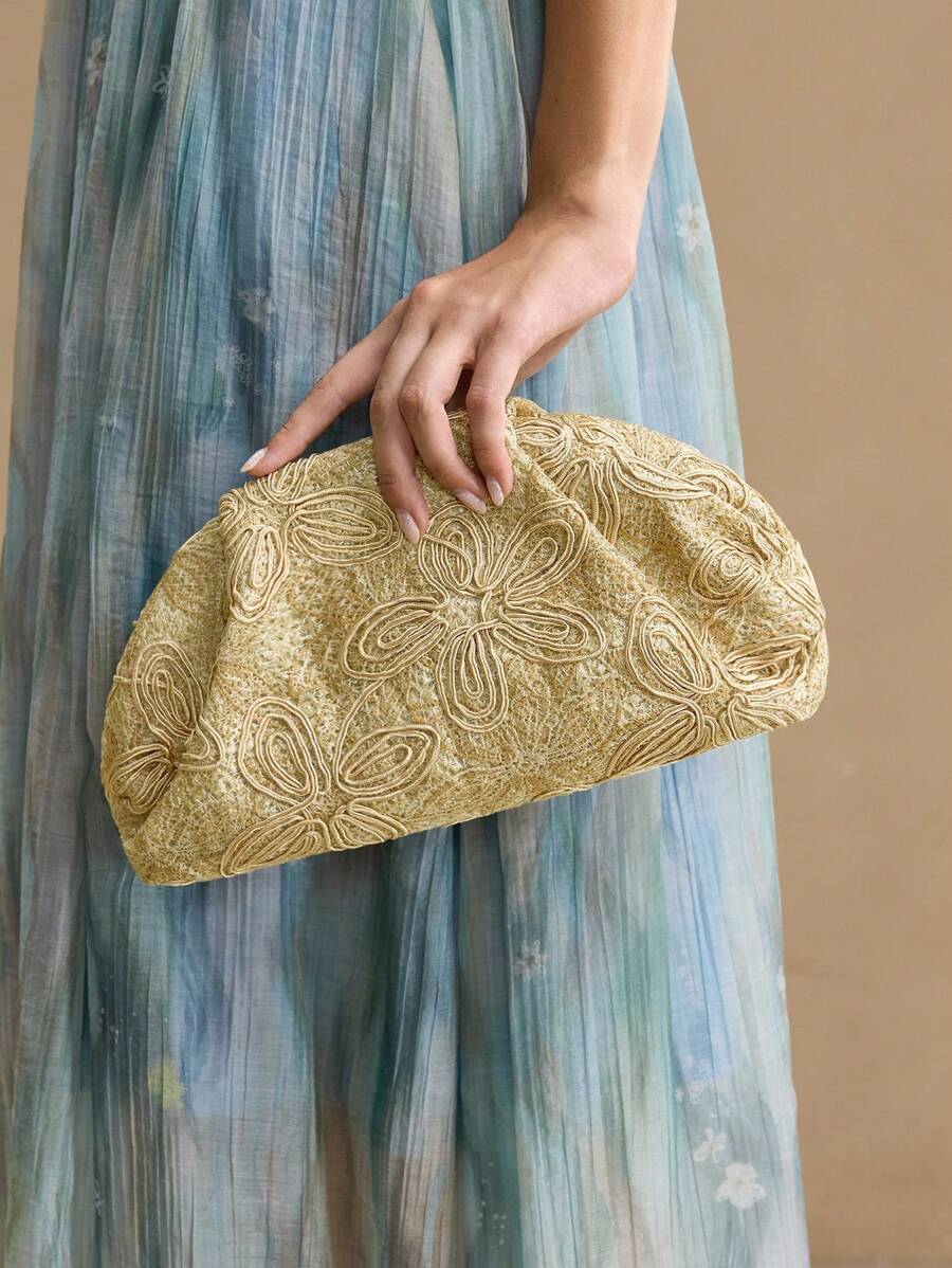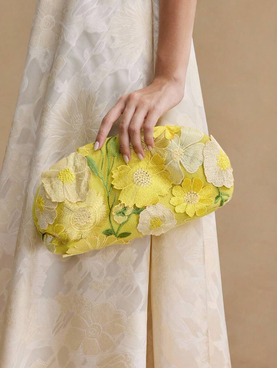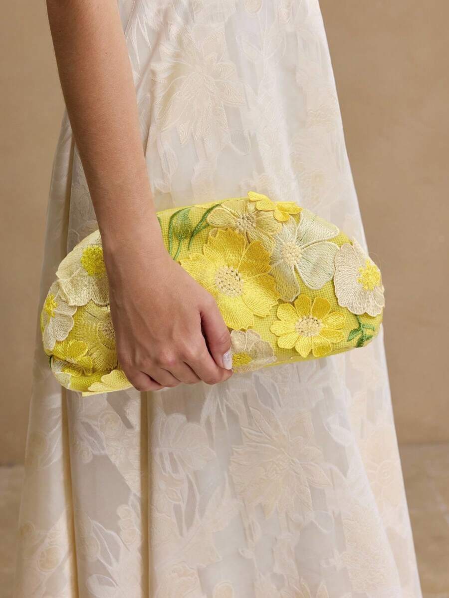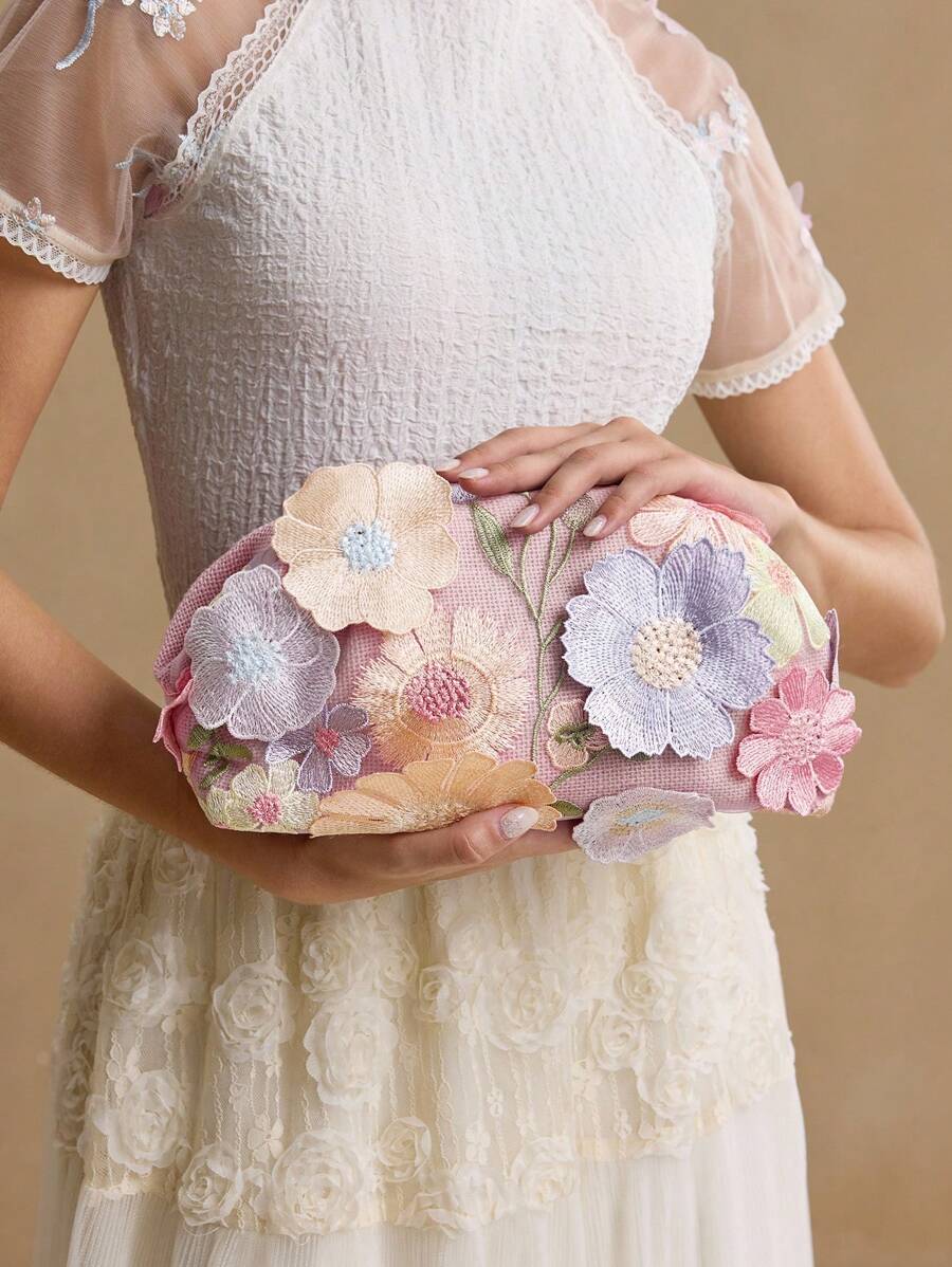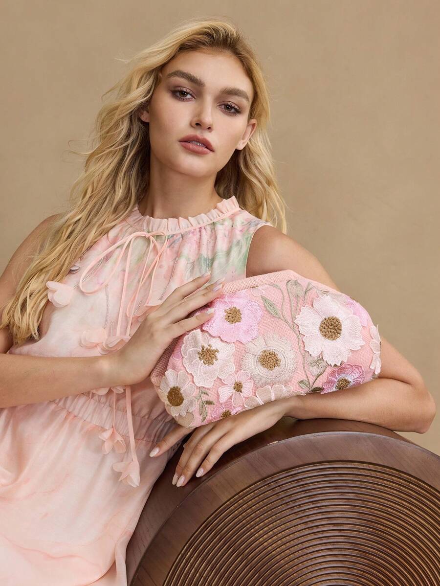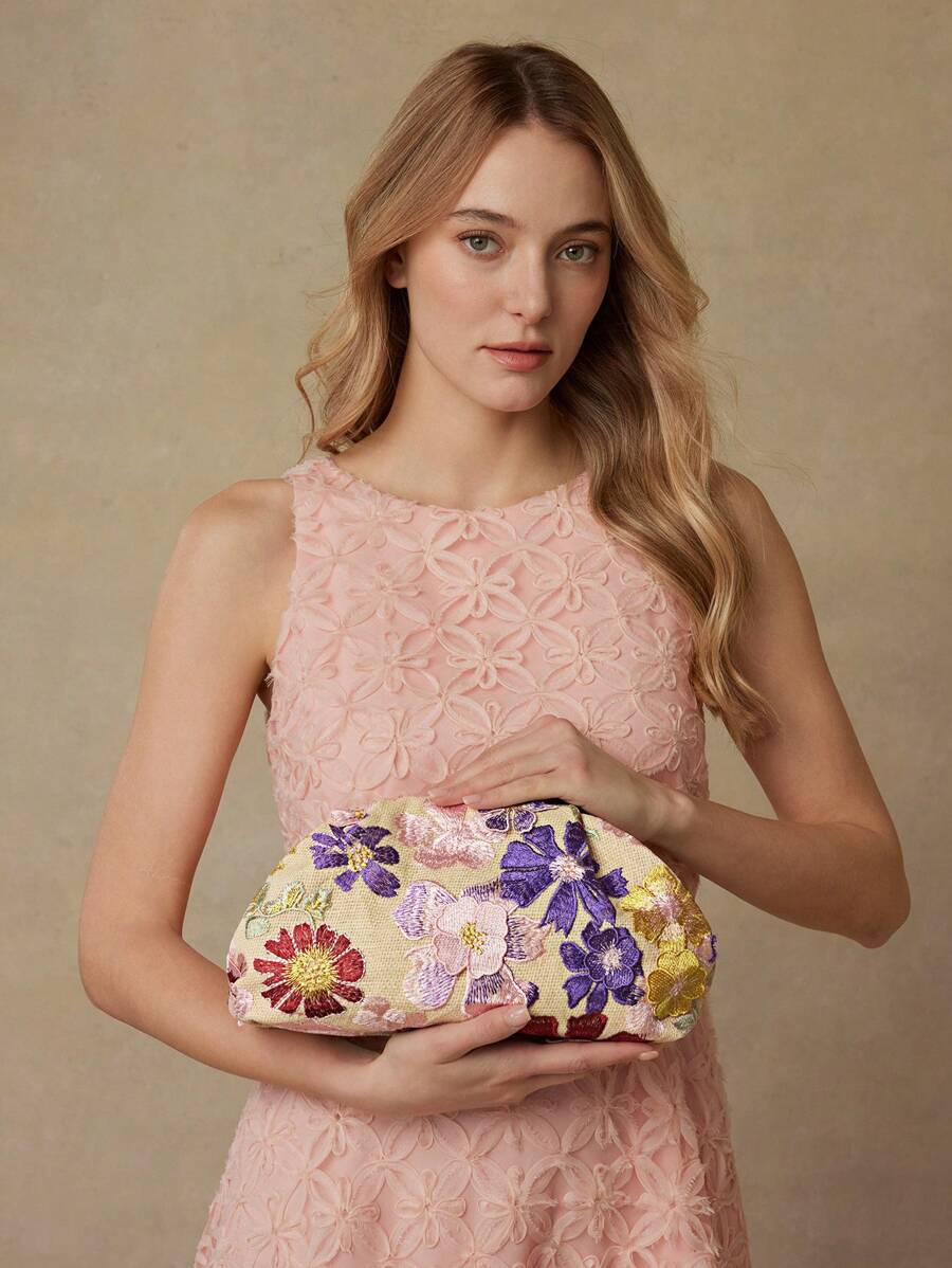 MIU PREMIUM WOMEN'S VACATION STYLE FLORAL EMBROIDERED CLUTCH BAG