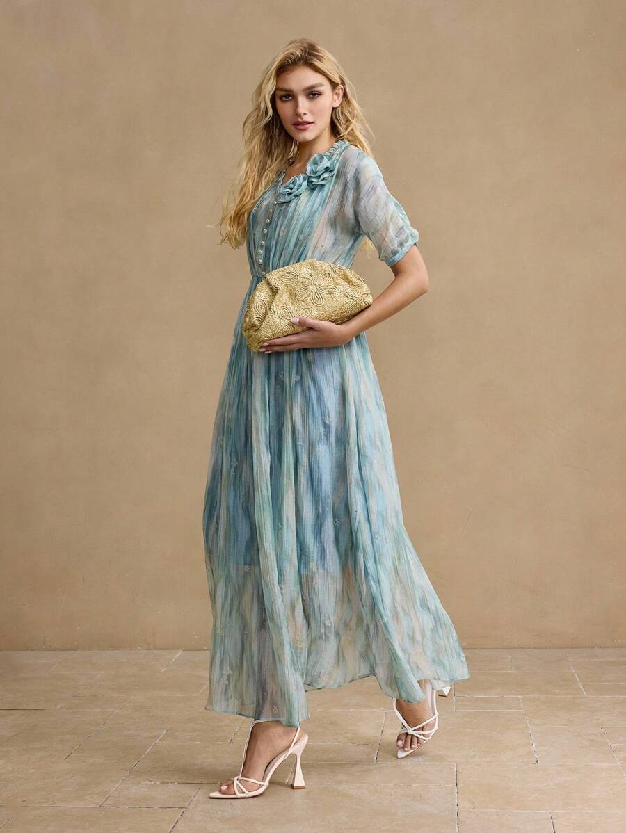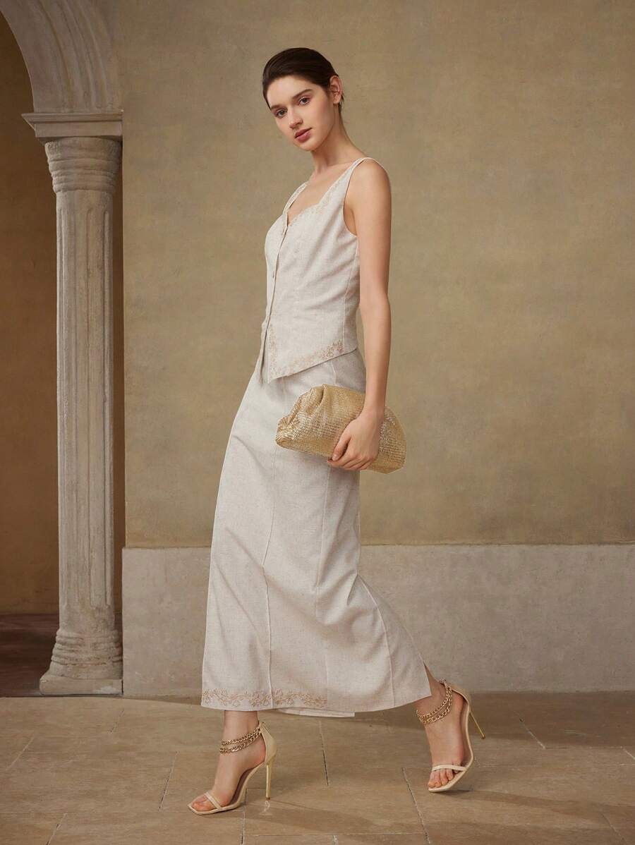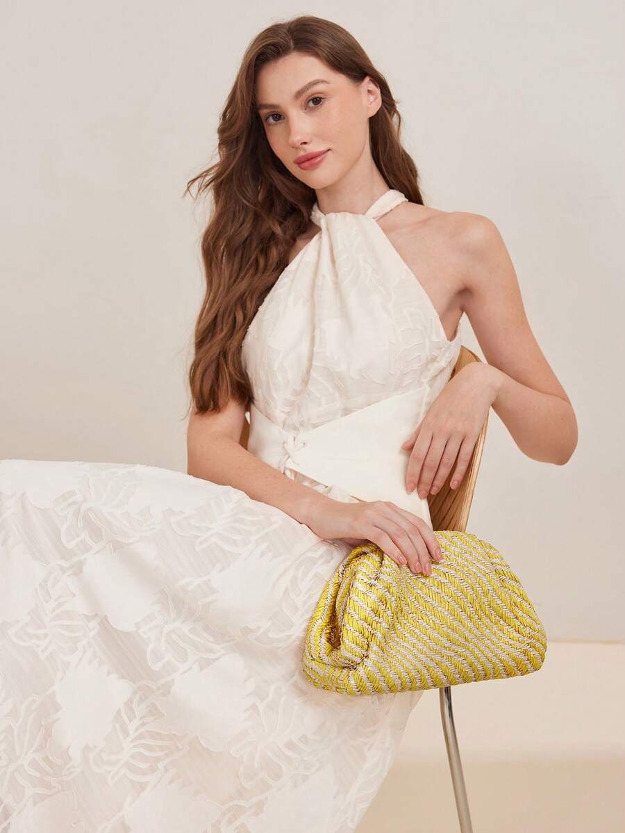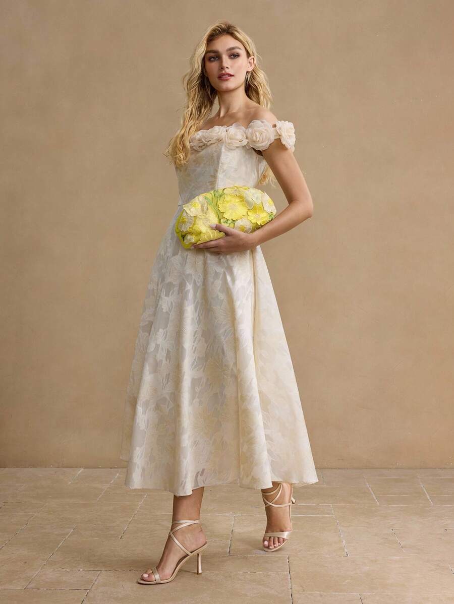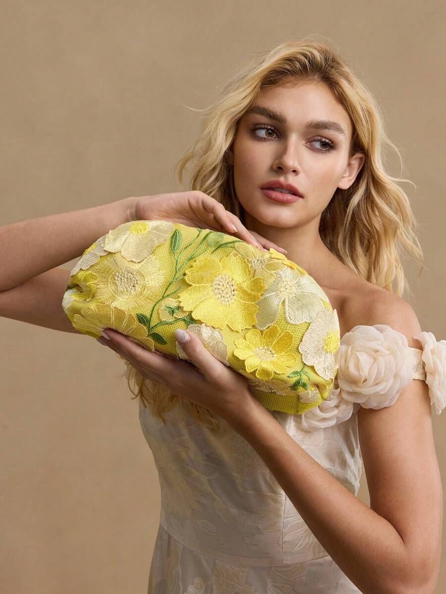 MIU PREMIUM WOMEN'S VACATION STYLE FLORAL EMBROIDERED CLUTCH BAG
