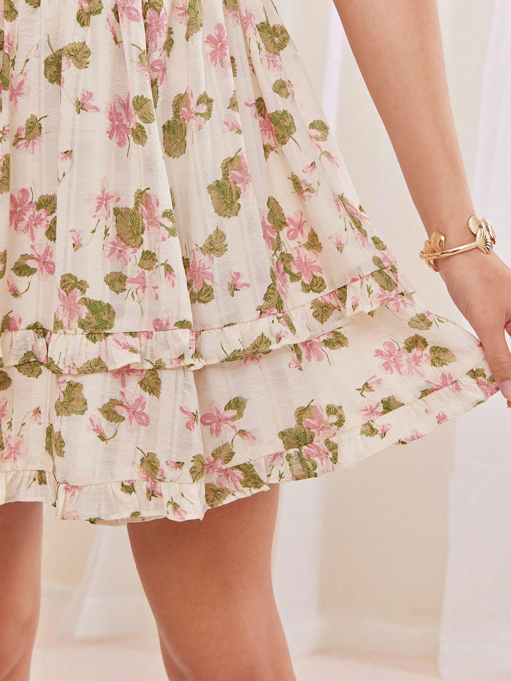 MIU Romantic Vacation Resort Bow Strap Bustier Ruffle Tier Mini Dress