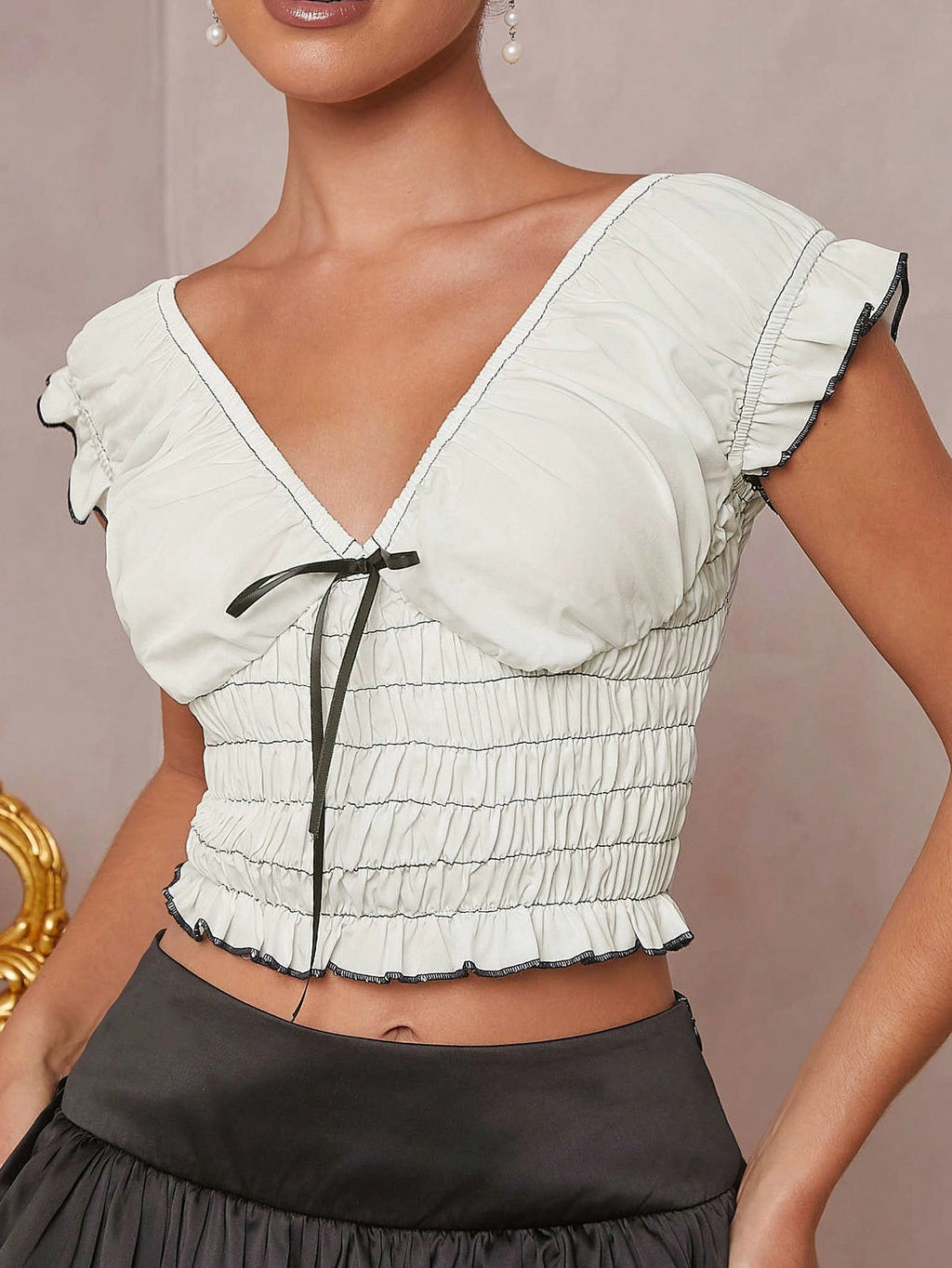 MIU Ruffle Trim Sleeve Stitching Detail Cute Top