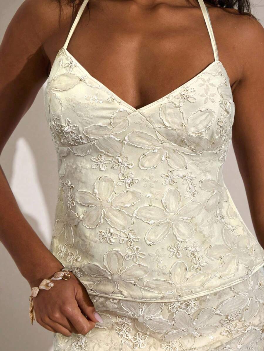 MIU Sequin Solid Color Textured Sleeveless Women Top, Fashion Suitable For Summer Vacation