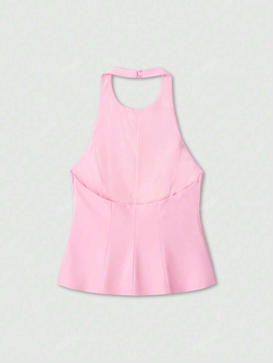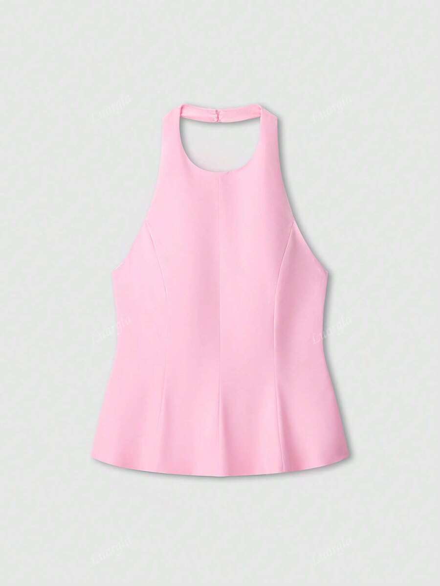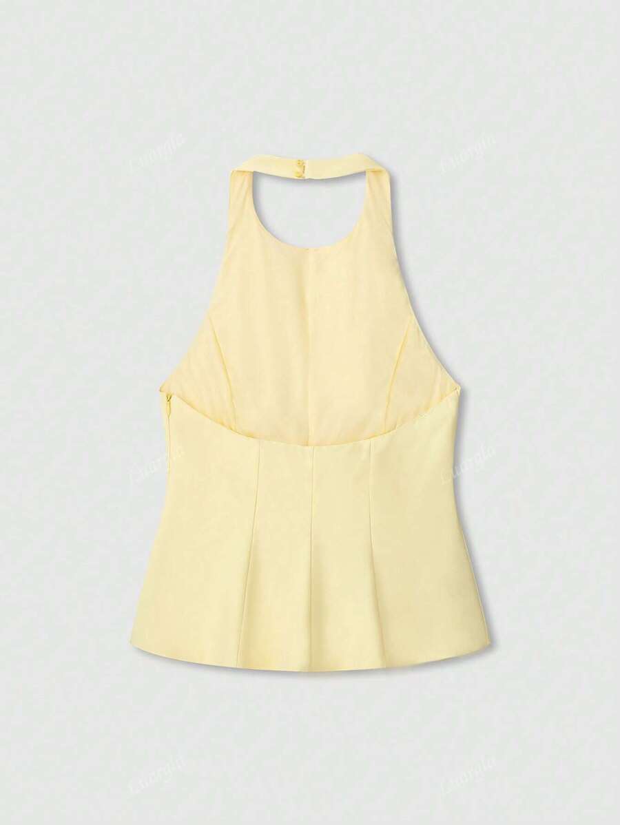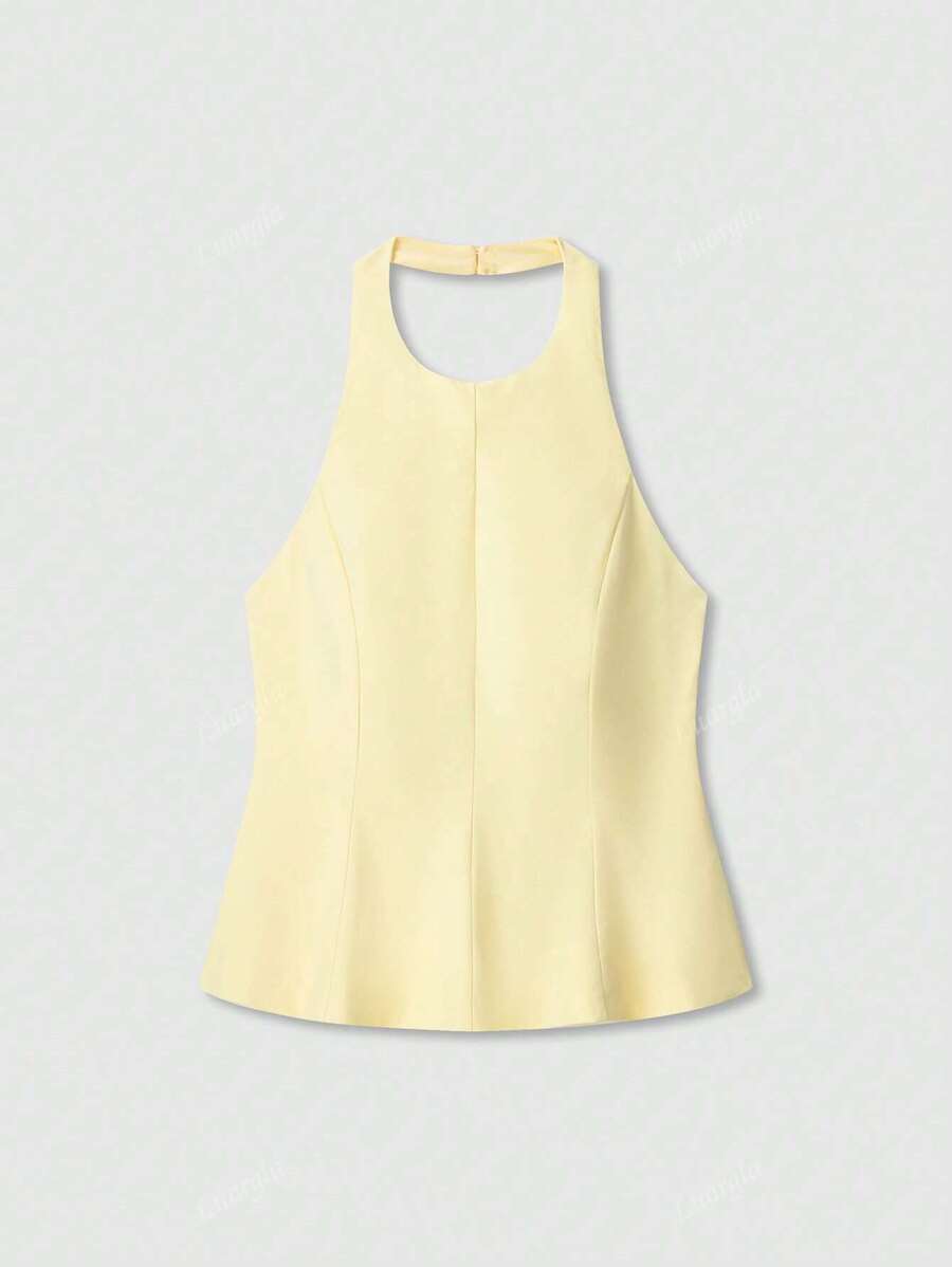 MIU Solid Color Halter Neck Ruffle Hem Backless Camisole