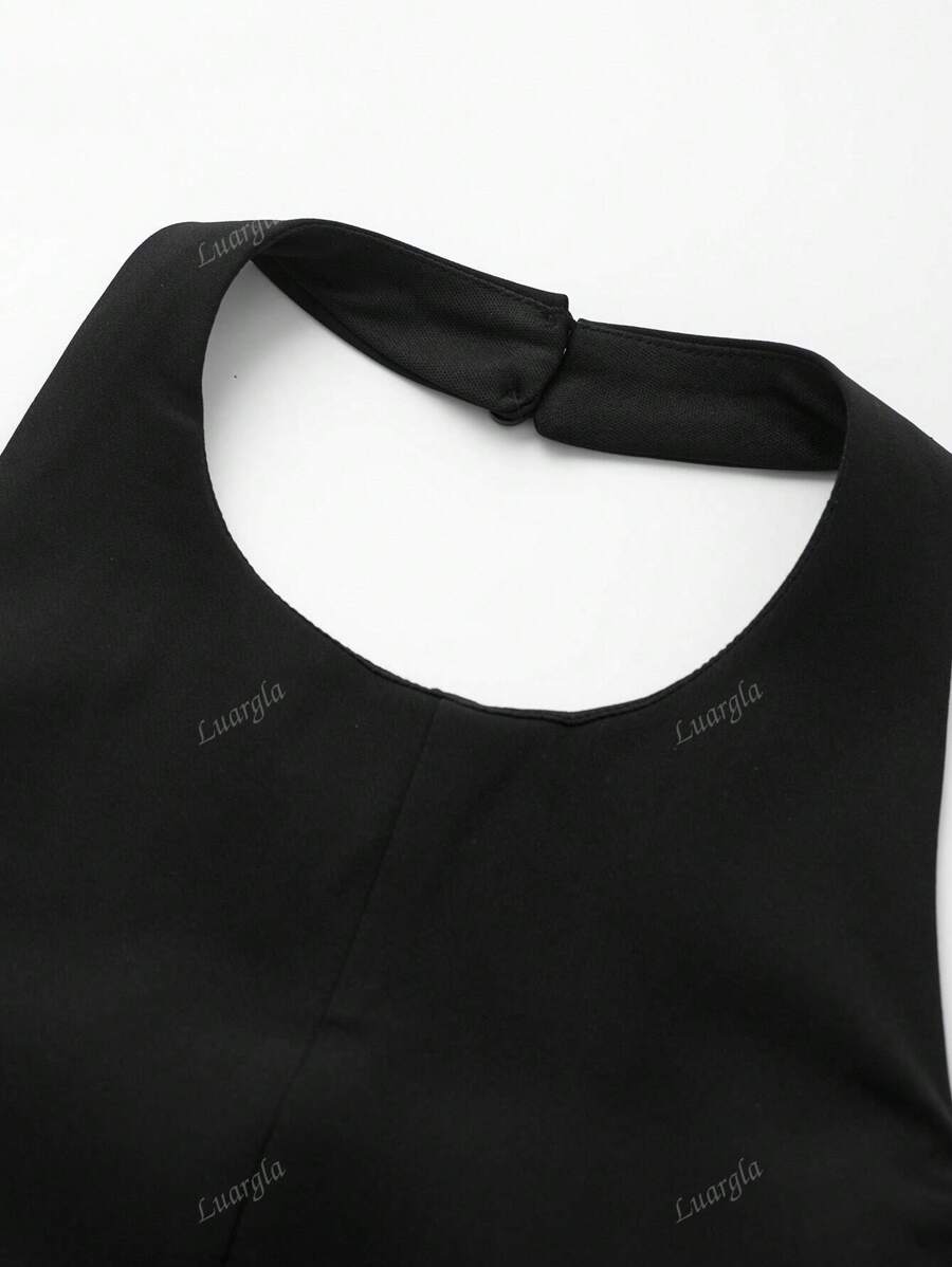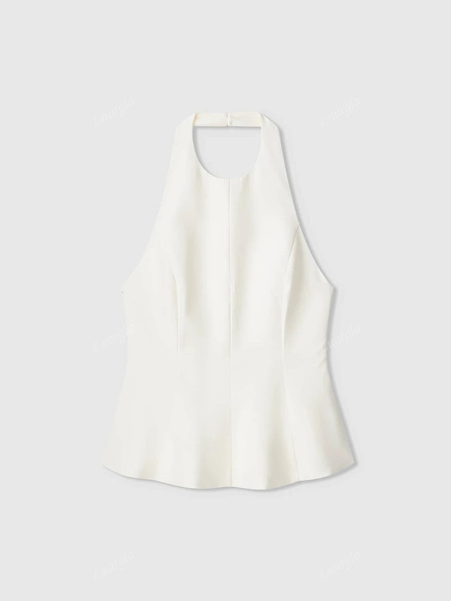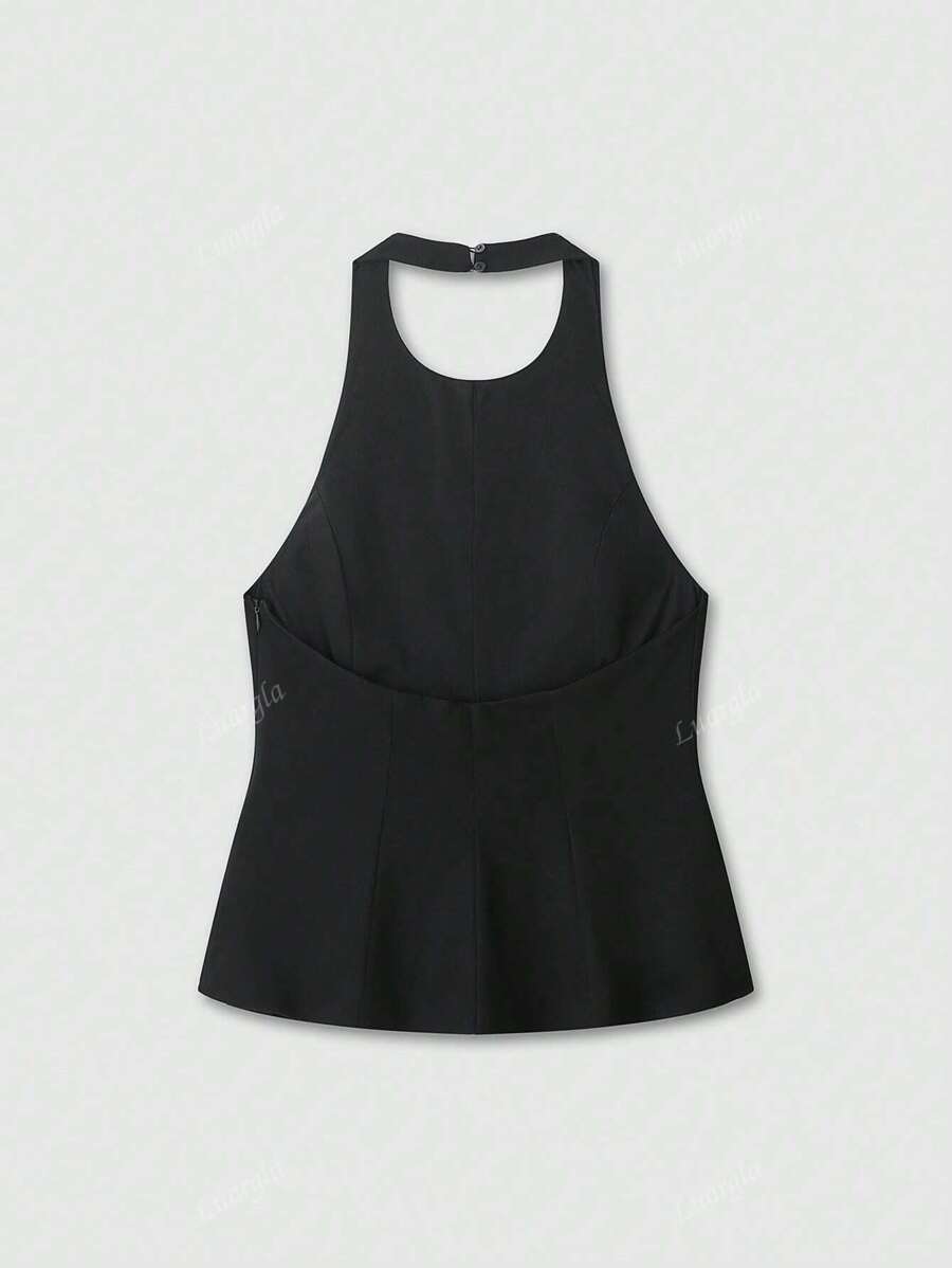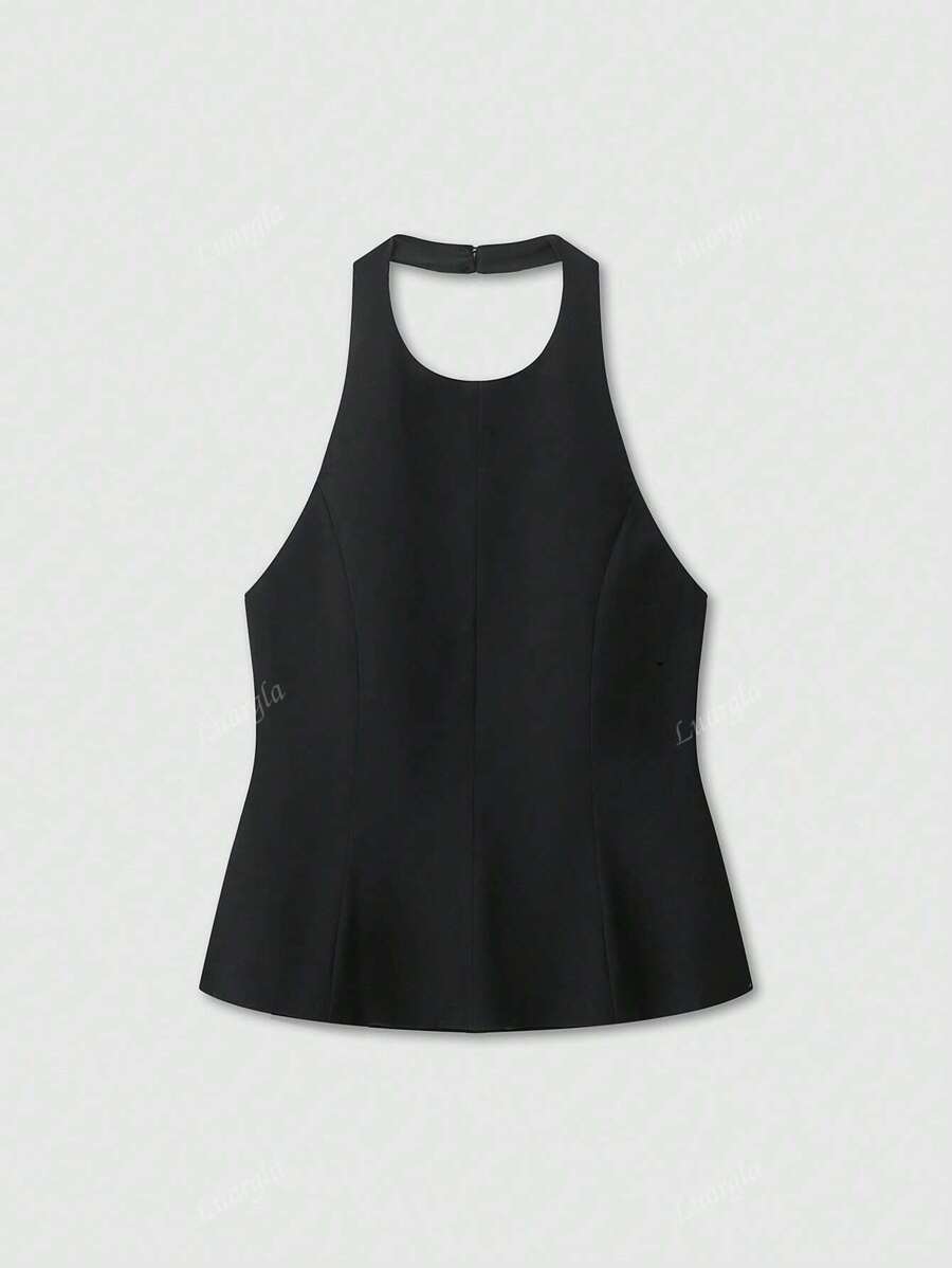 MIU Solid Color Halter Neck Ruffle Hem Backless Camisole