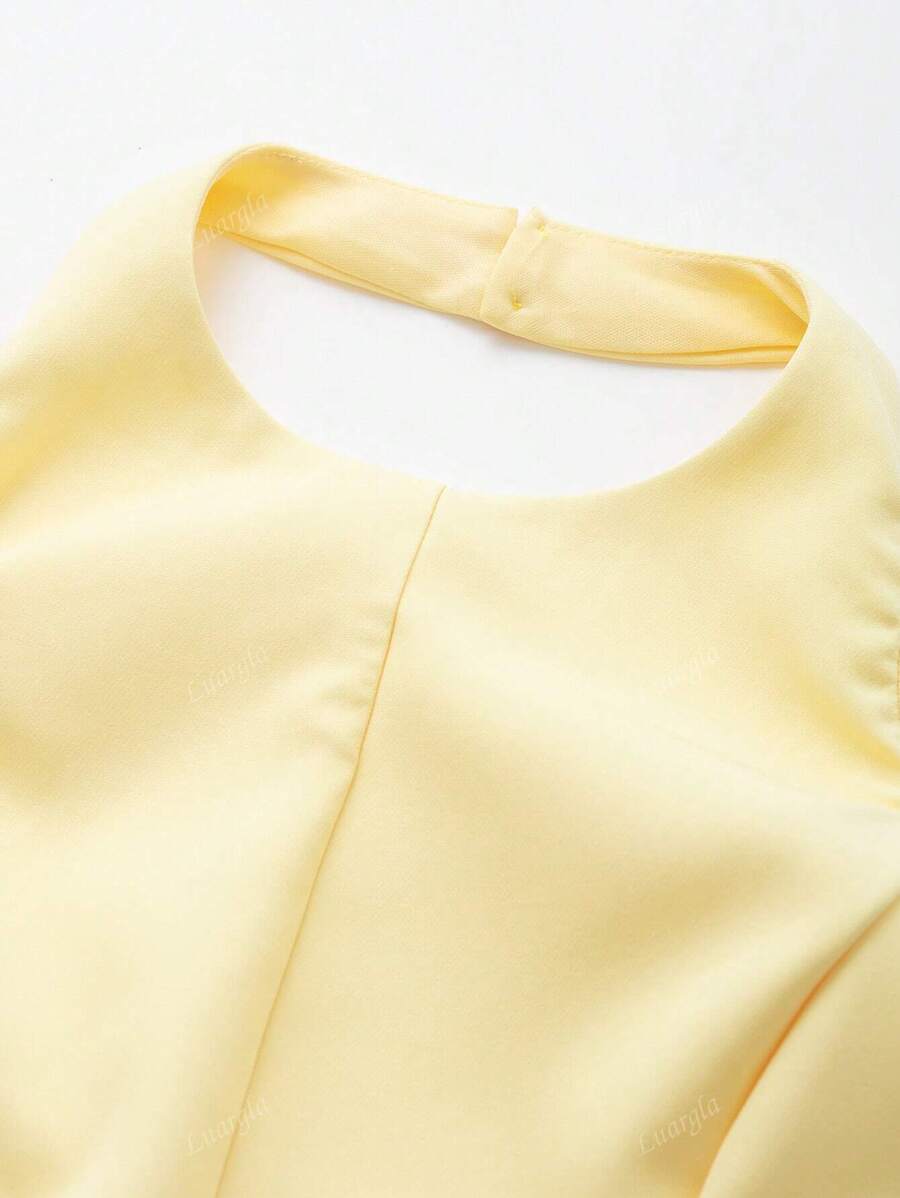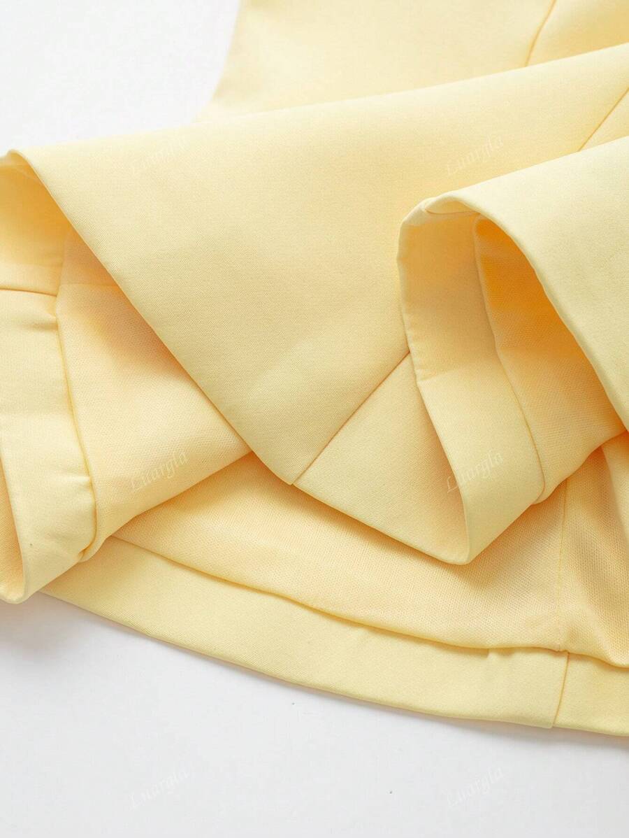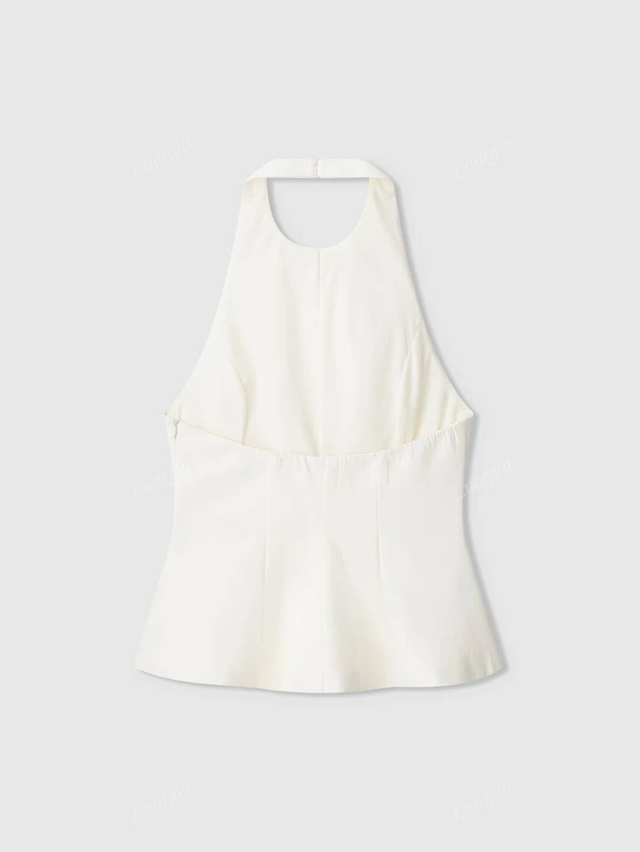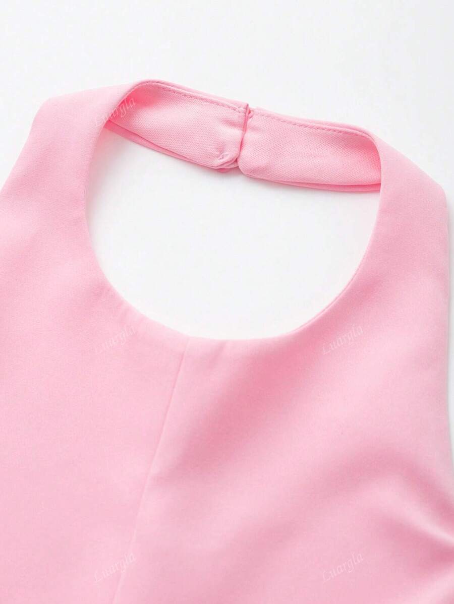 MIU Solid Color Halter Neck Ruffle Hem Backless Camisole