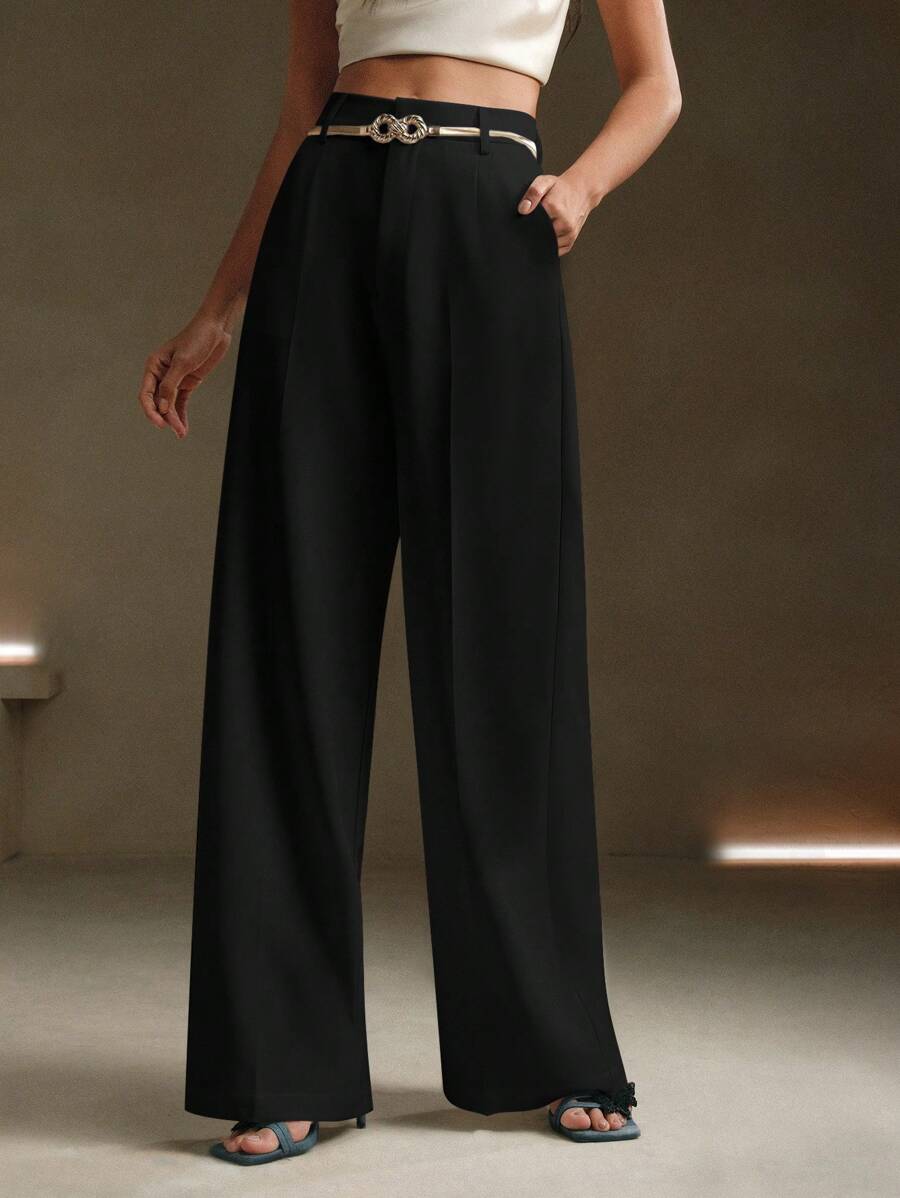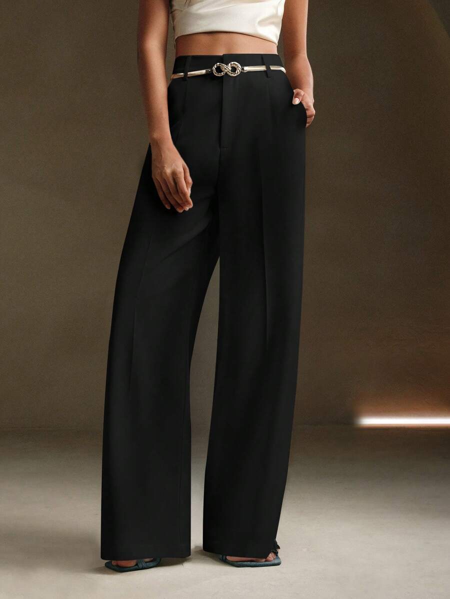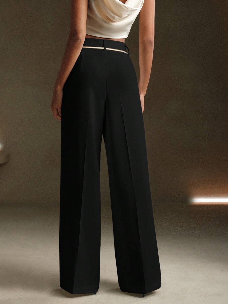 MIU Solid Color Metal Decorated Pocket Urban Suit Pants