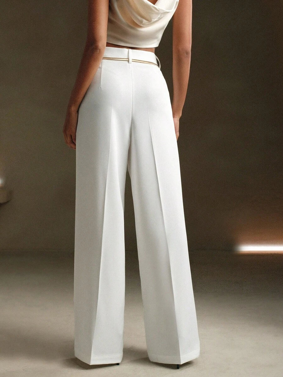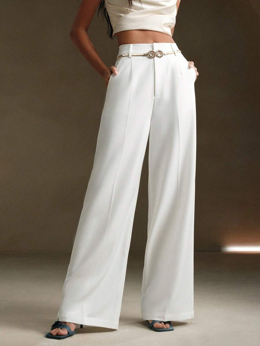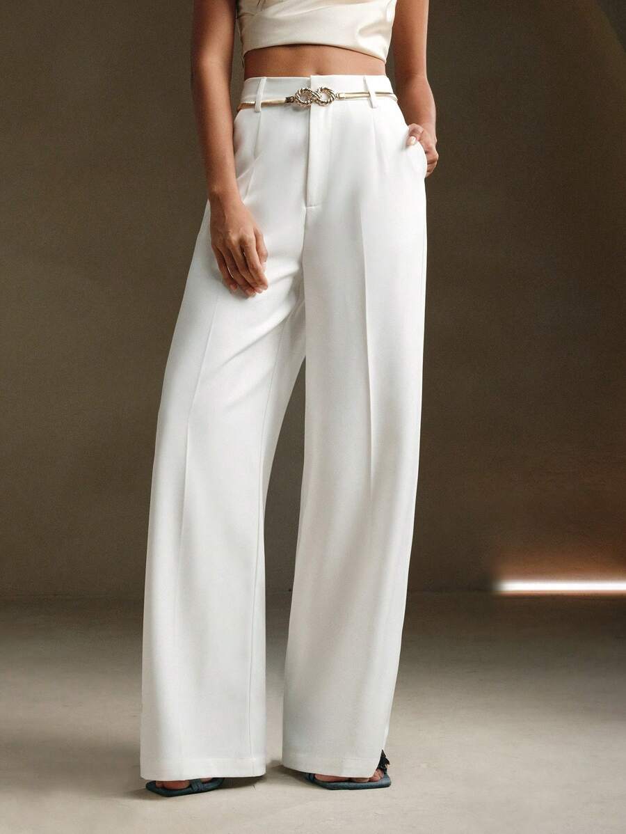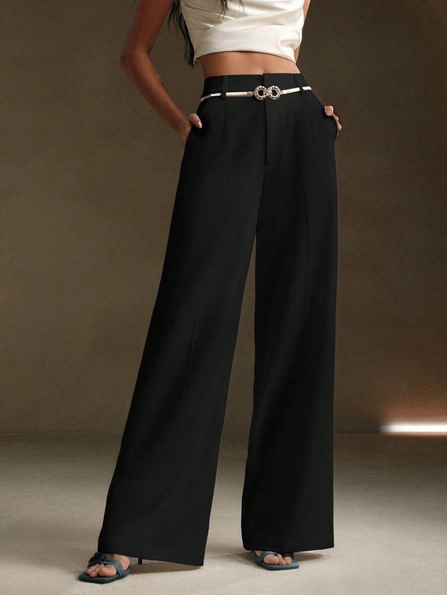 MIU Solid Color Metal Decorated Pocket Urban Suit Pants