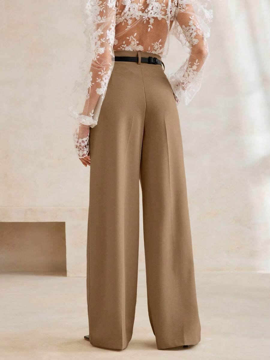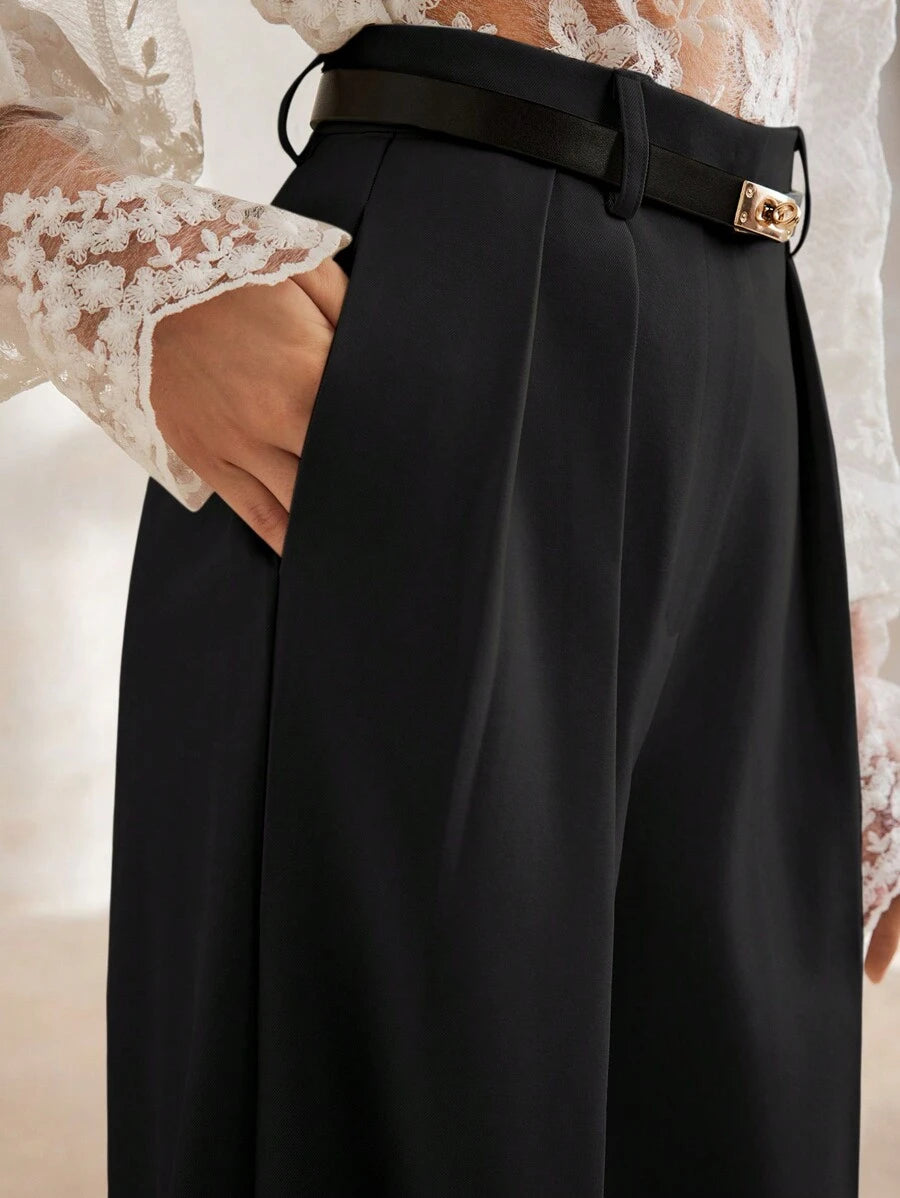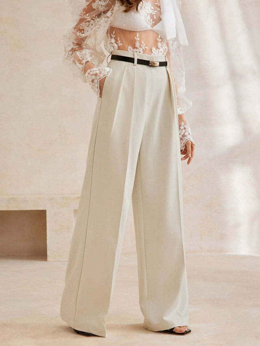 MIU Solid Color With Pockets Urban Elegant Women Wide-Leg Trousers