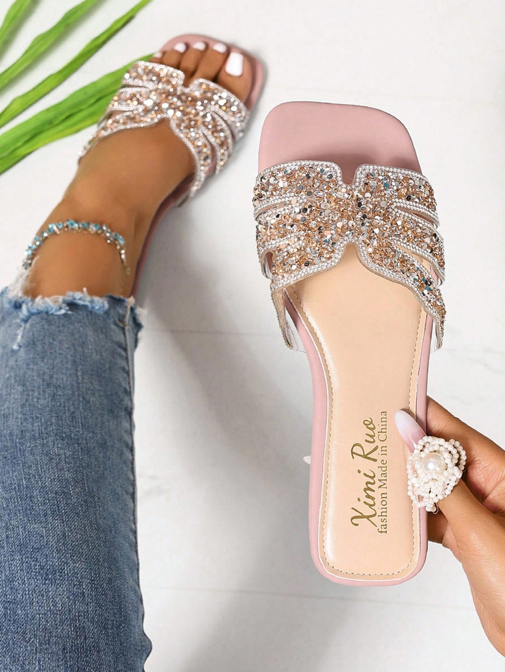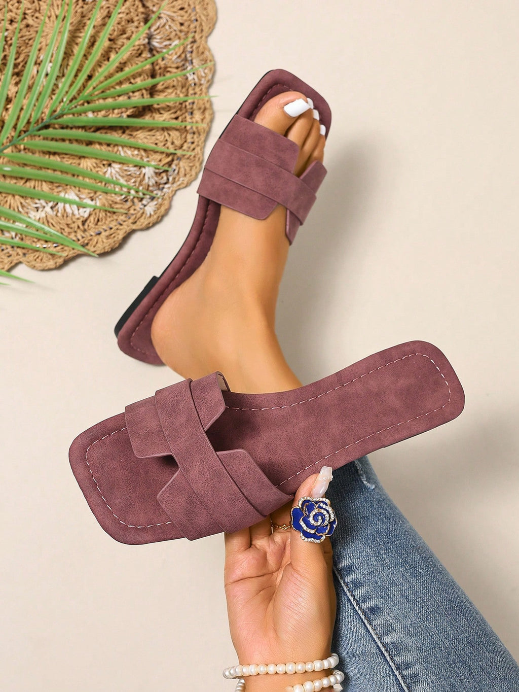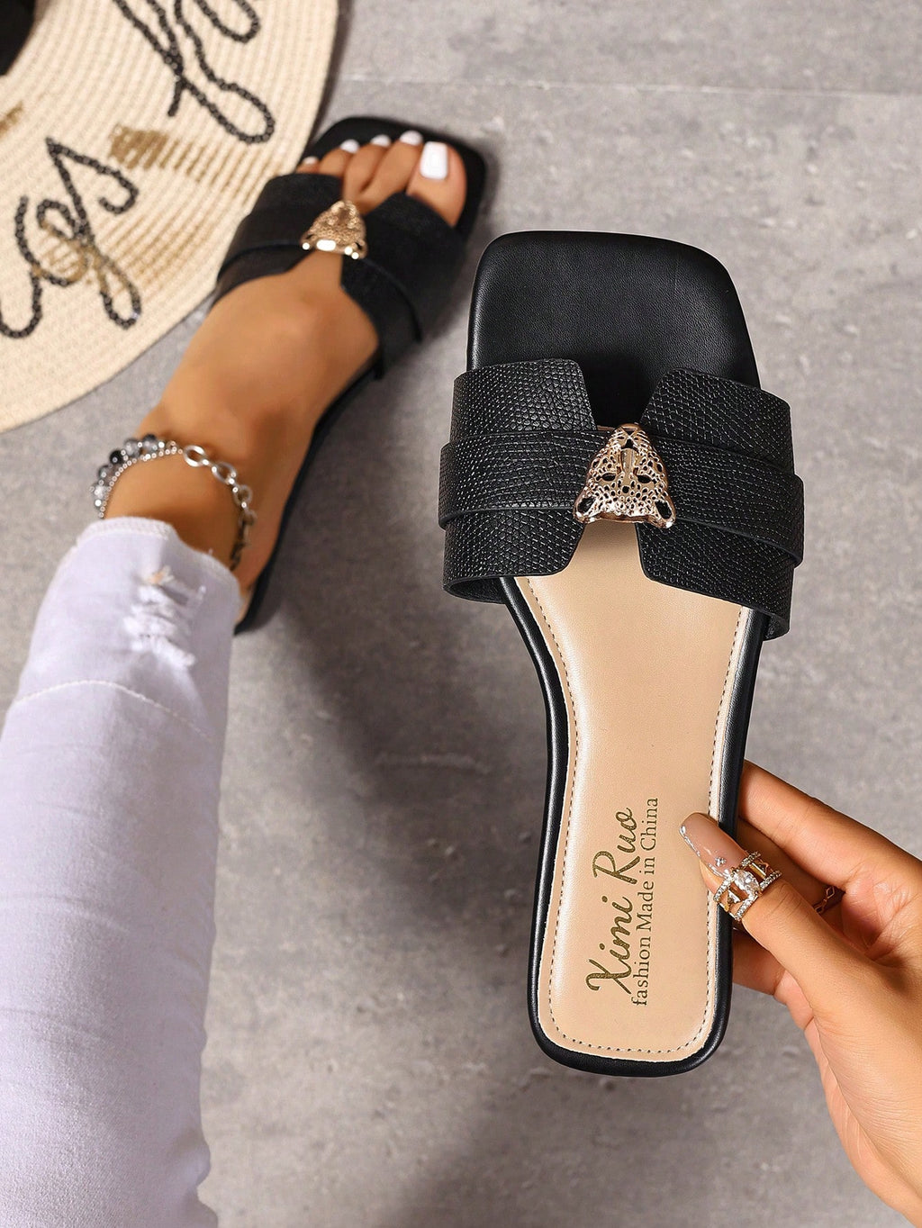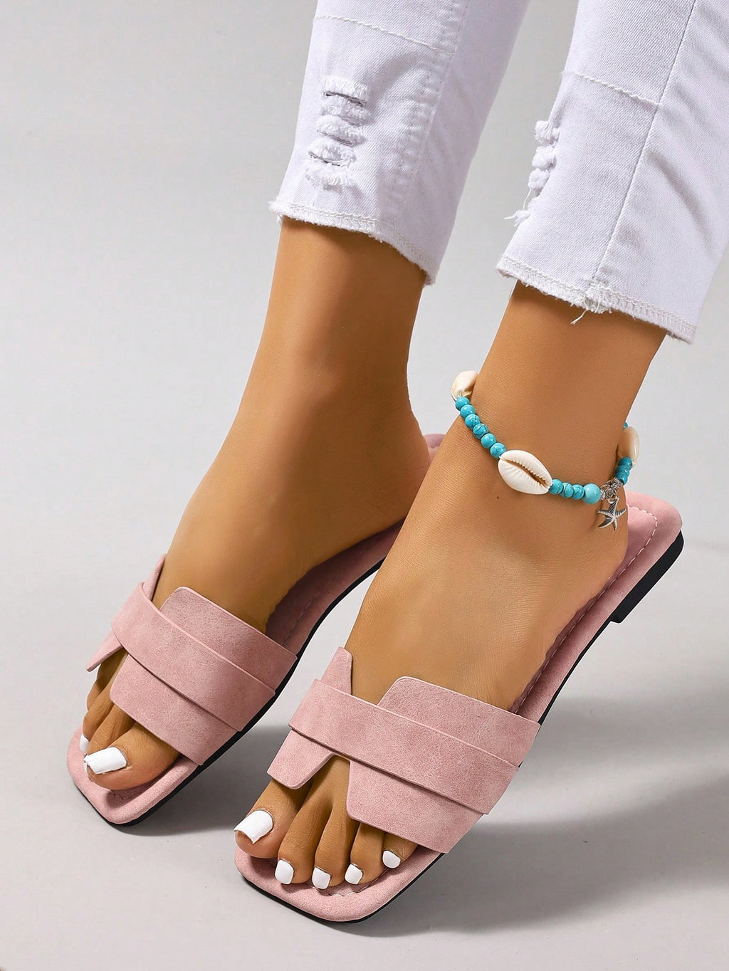 MIU Spring/Summer New Fashion Casual Strap Slip-On Sandals, Women Comfortable Flat Slide Sandals, Elegant Beach Shoes, Spring/Autumn Ladies Minimalist Open Toe Slippers