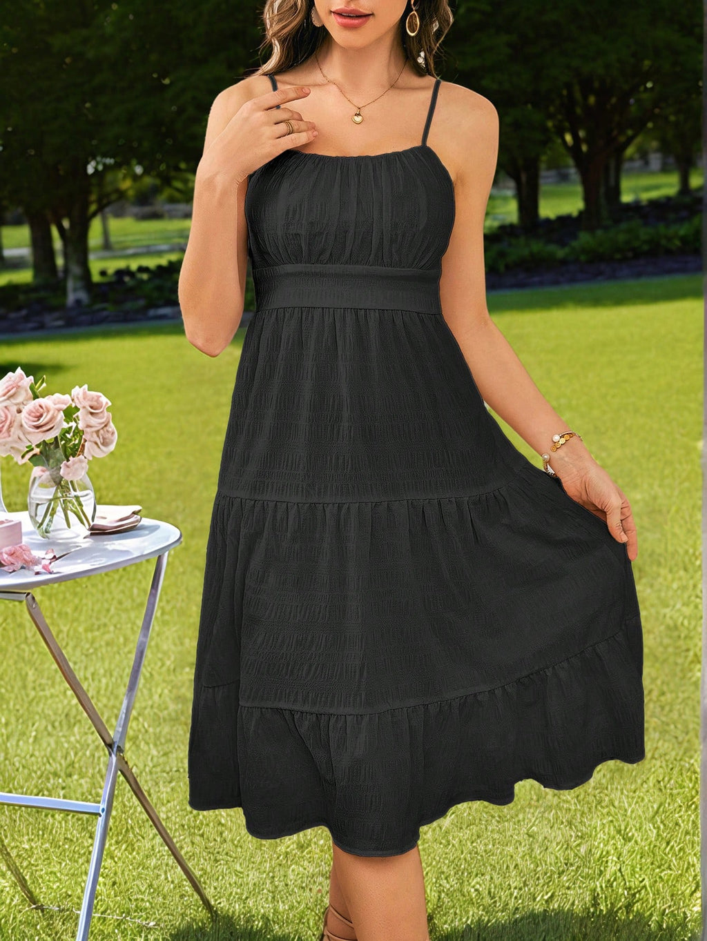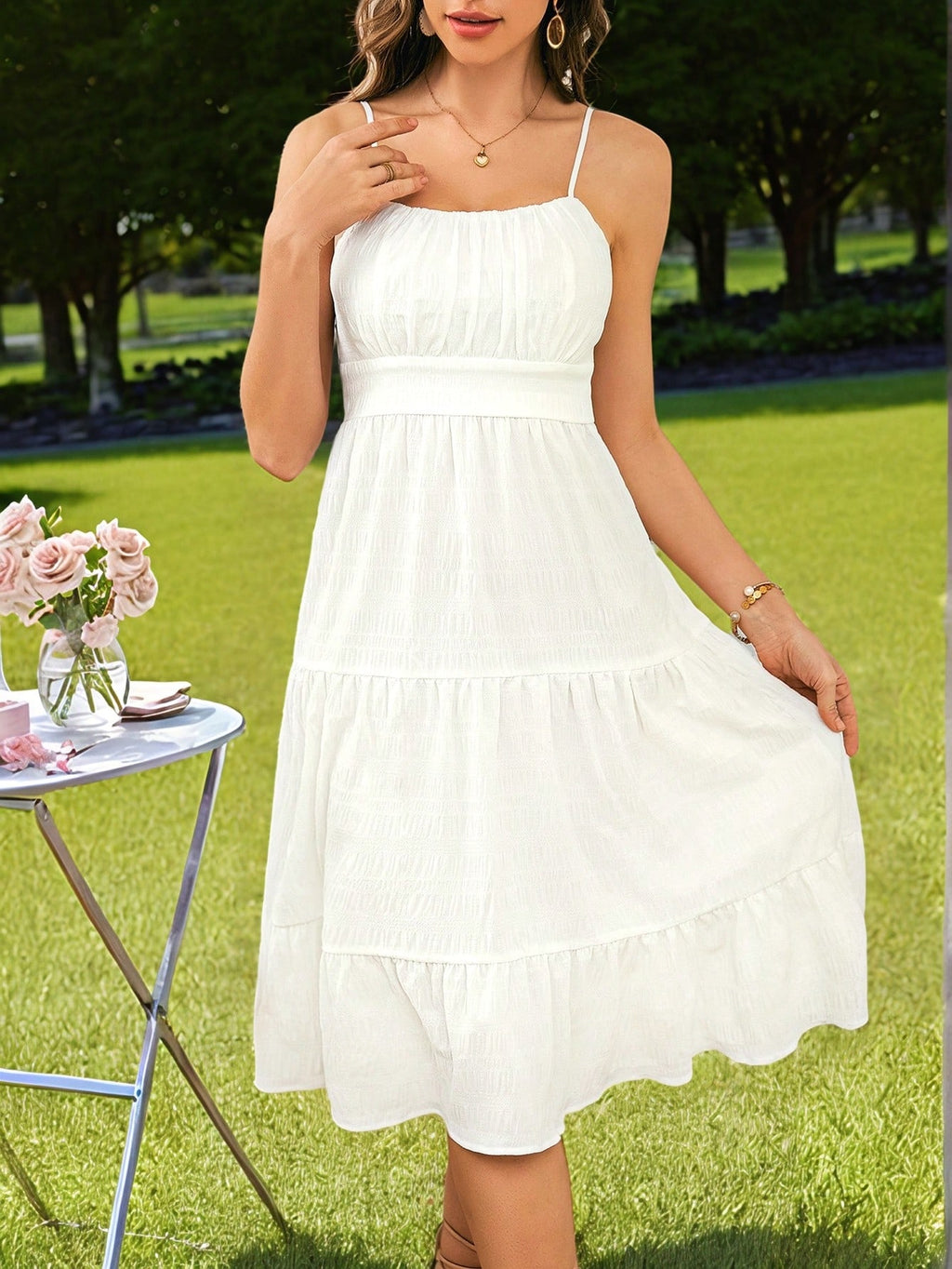 MIU Striped Ruched Bust Ruffle Hem Cami Dress,Pastel Dresses For Women