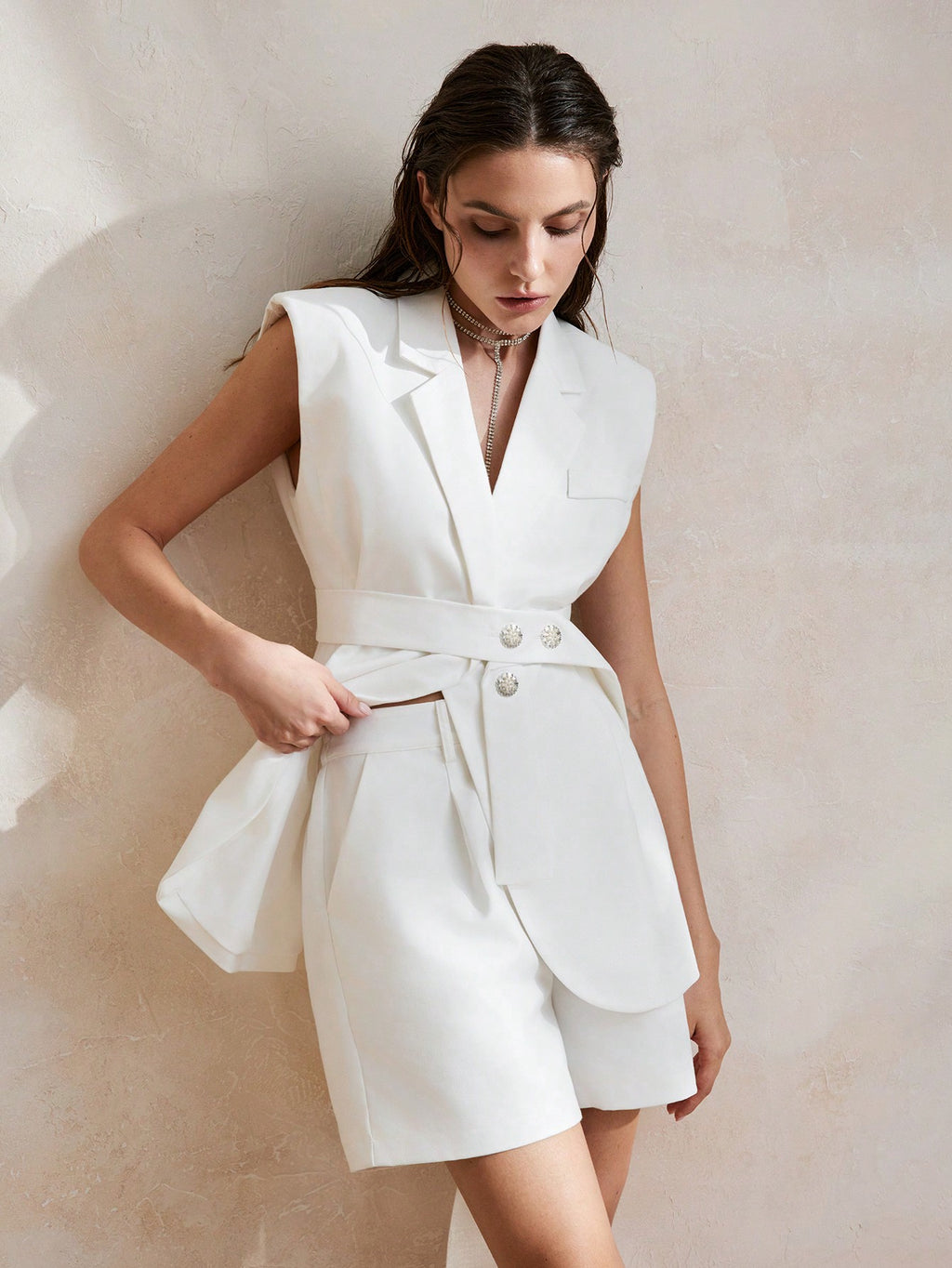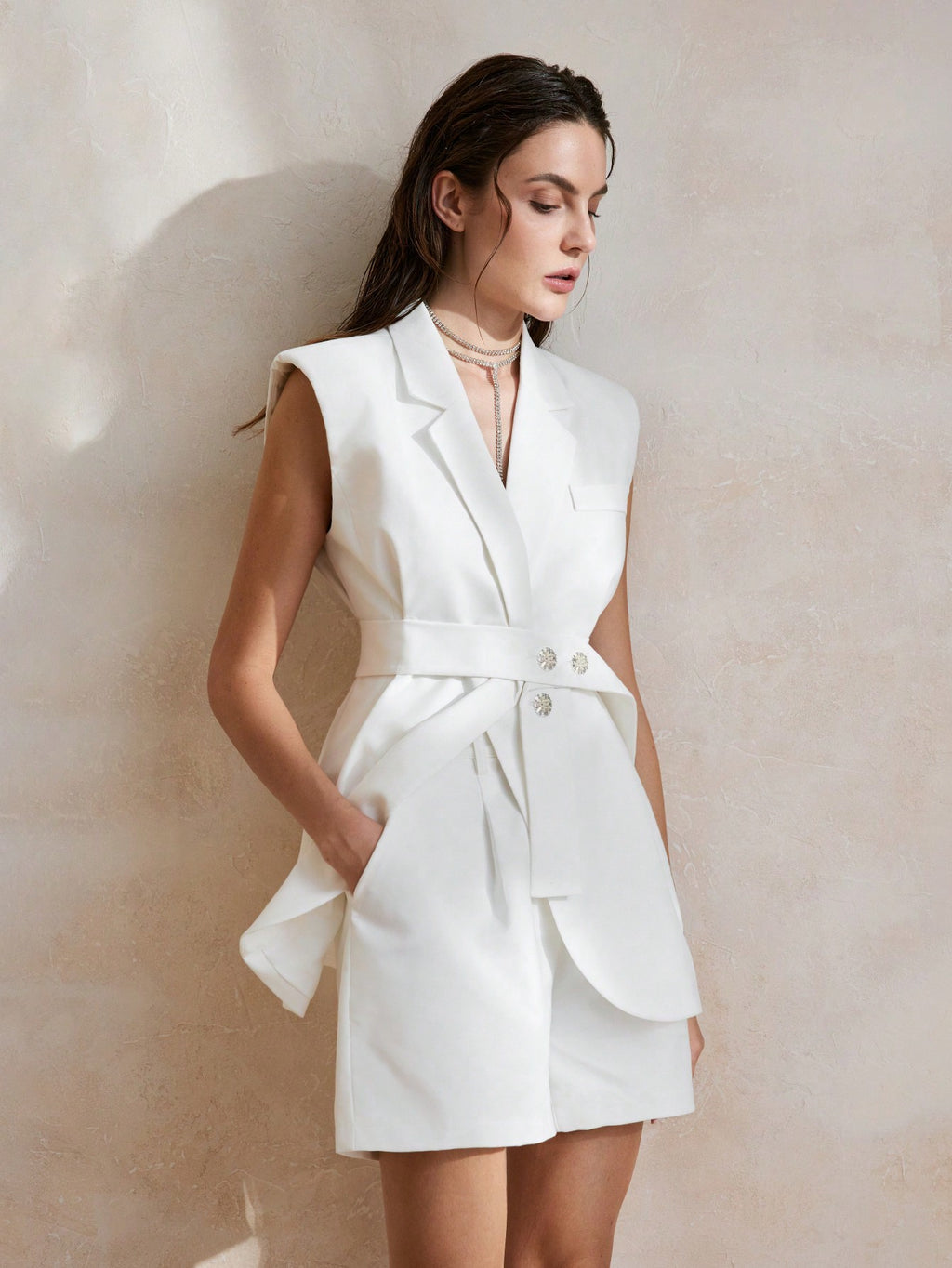MIU Suit Vest With Pearl Button