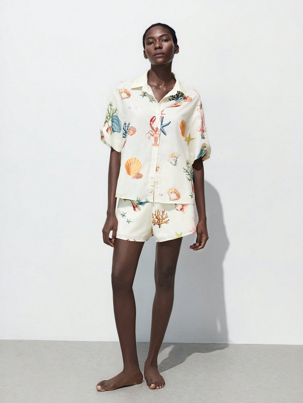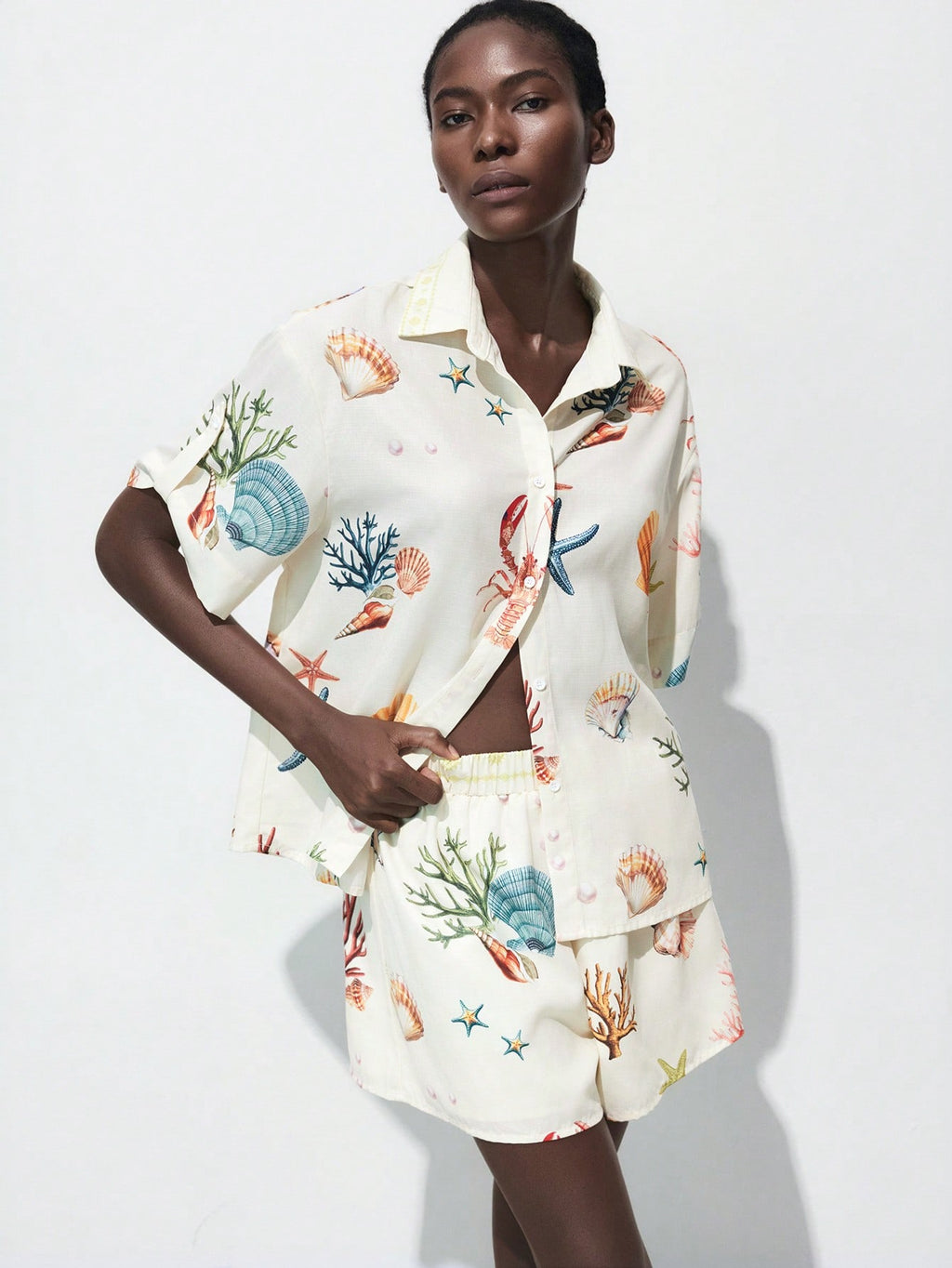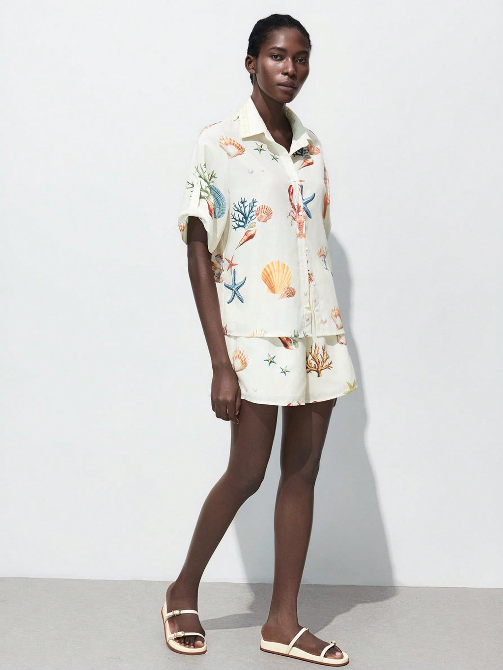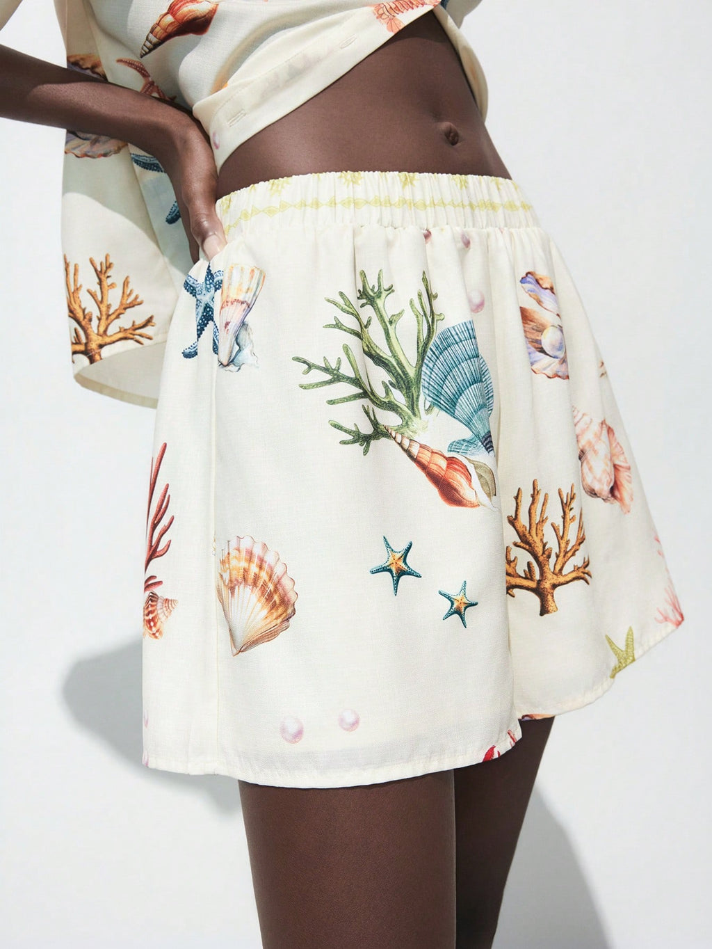 MIU Summer Bohemian Ocean Print Pattern Comfortable Casual Vacation Beach Festival Shorts For Women Printed Shorts Shorts Summer Graphic Shorts Summer Shorts Seashell Shorts