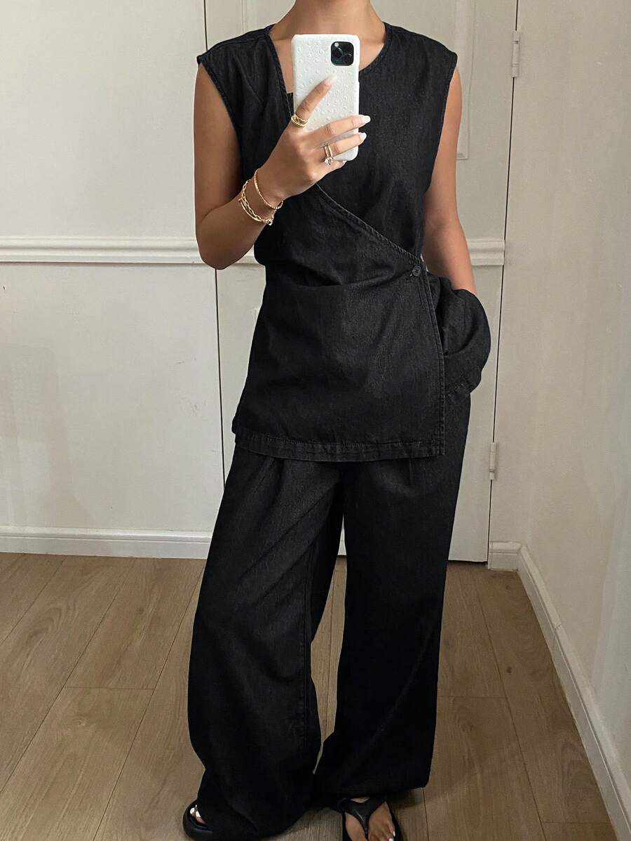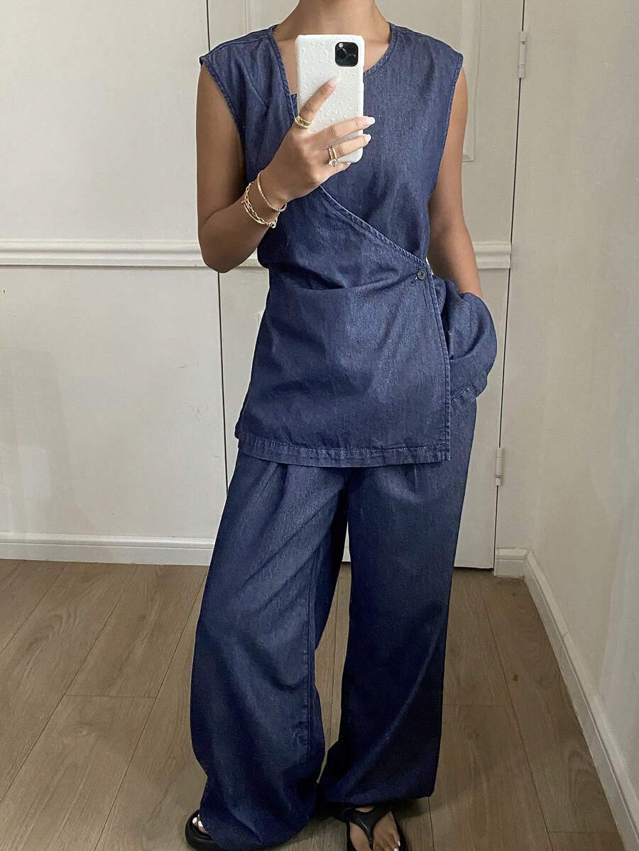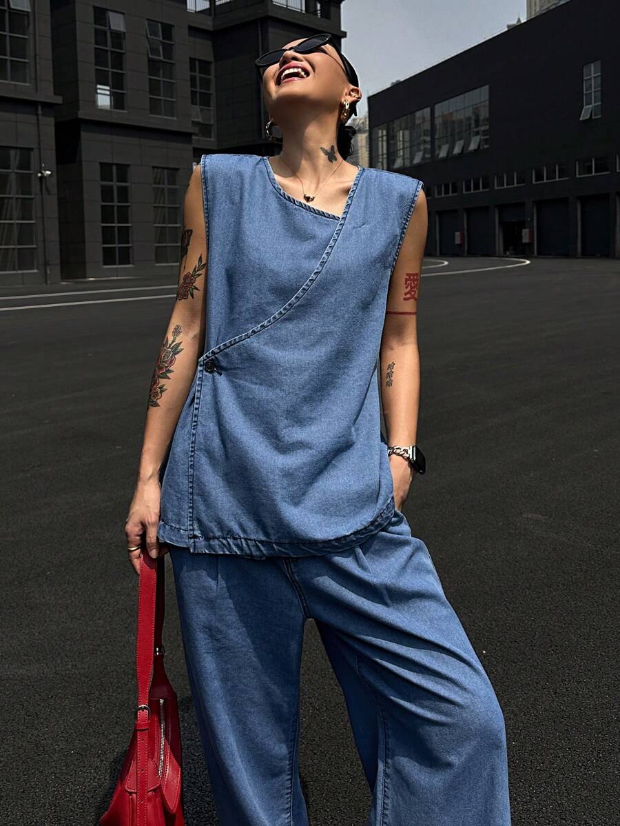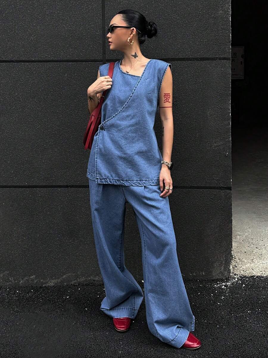 MIU Summer New Loose Casual Vintage Women Denim Two-Piece Set,Back To School Clothes