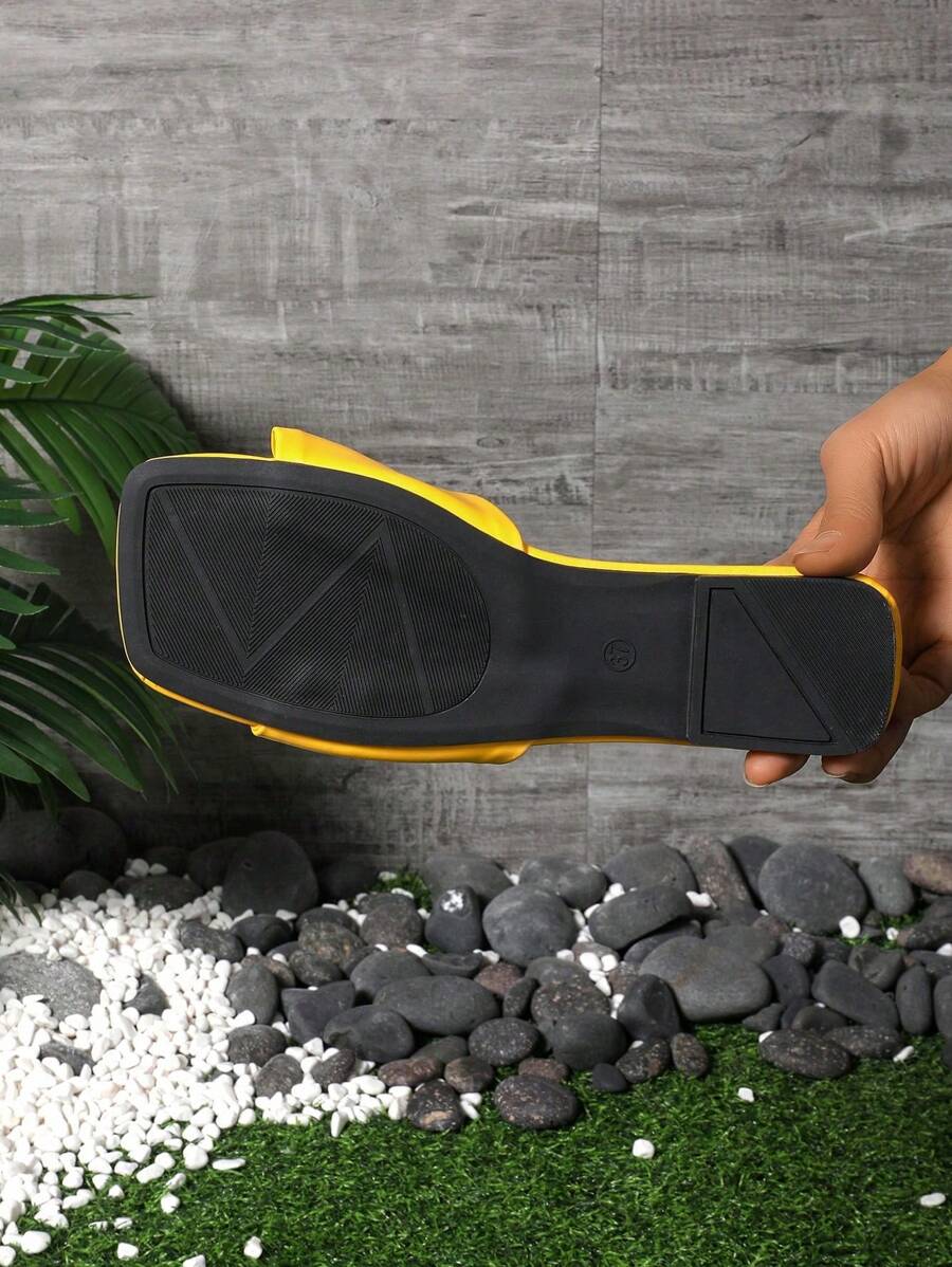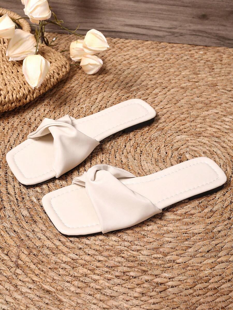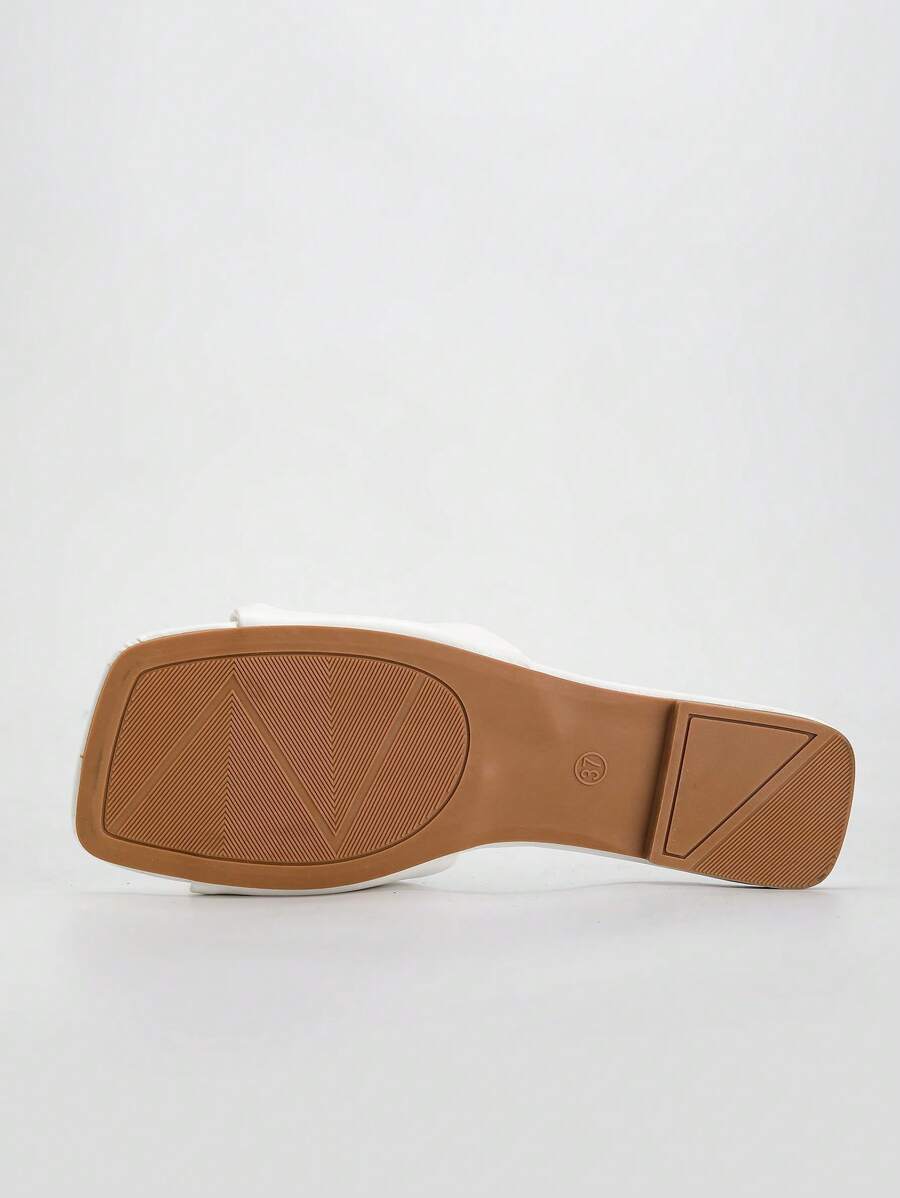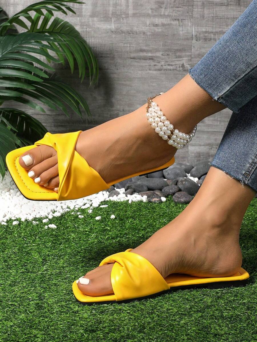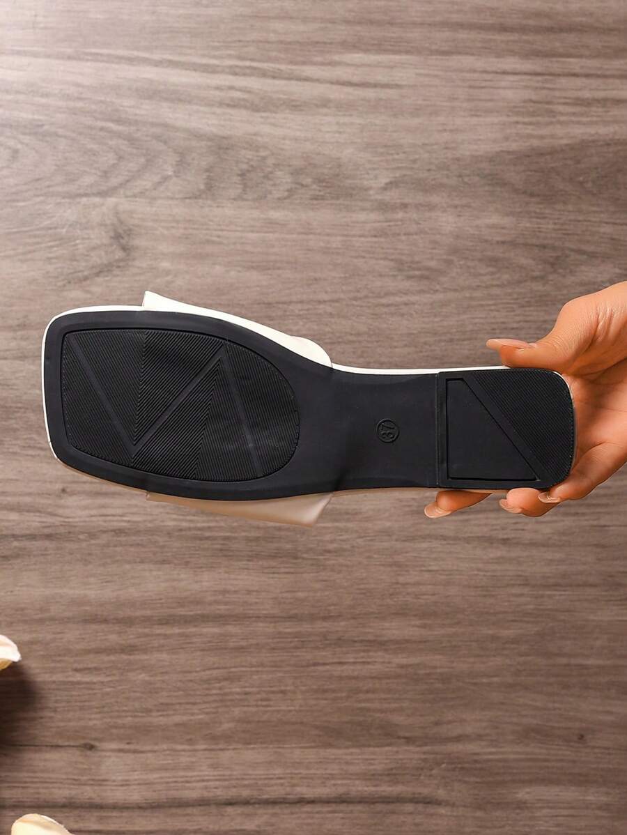 MIU Summer New White Cute Flat Sandals Women, Fashion Casual Thong Slippers With Yellow Sole Square Toe