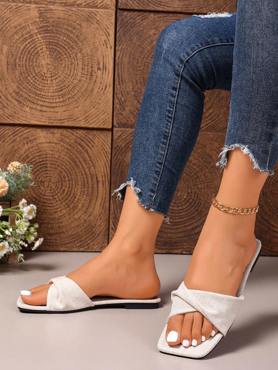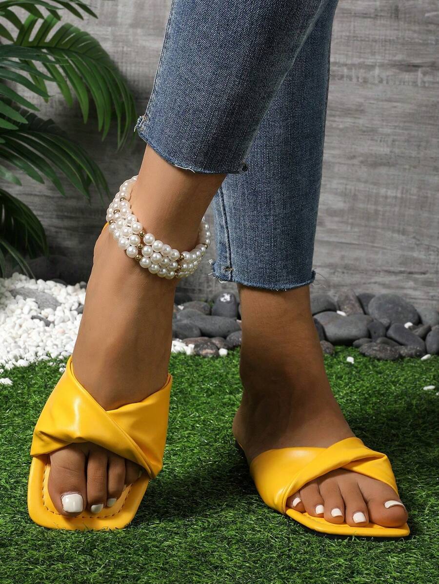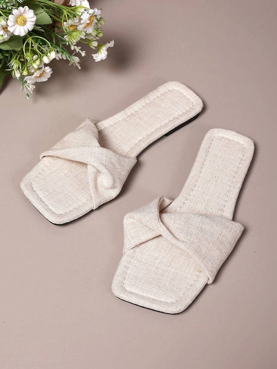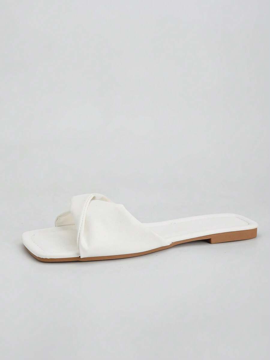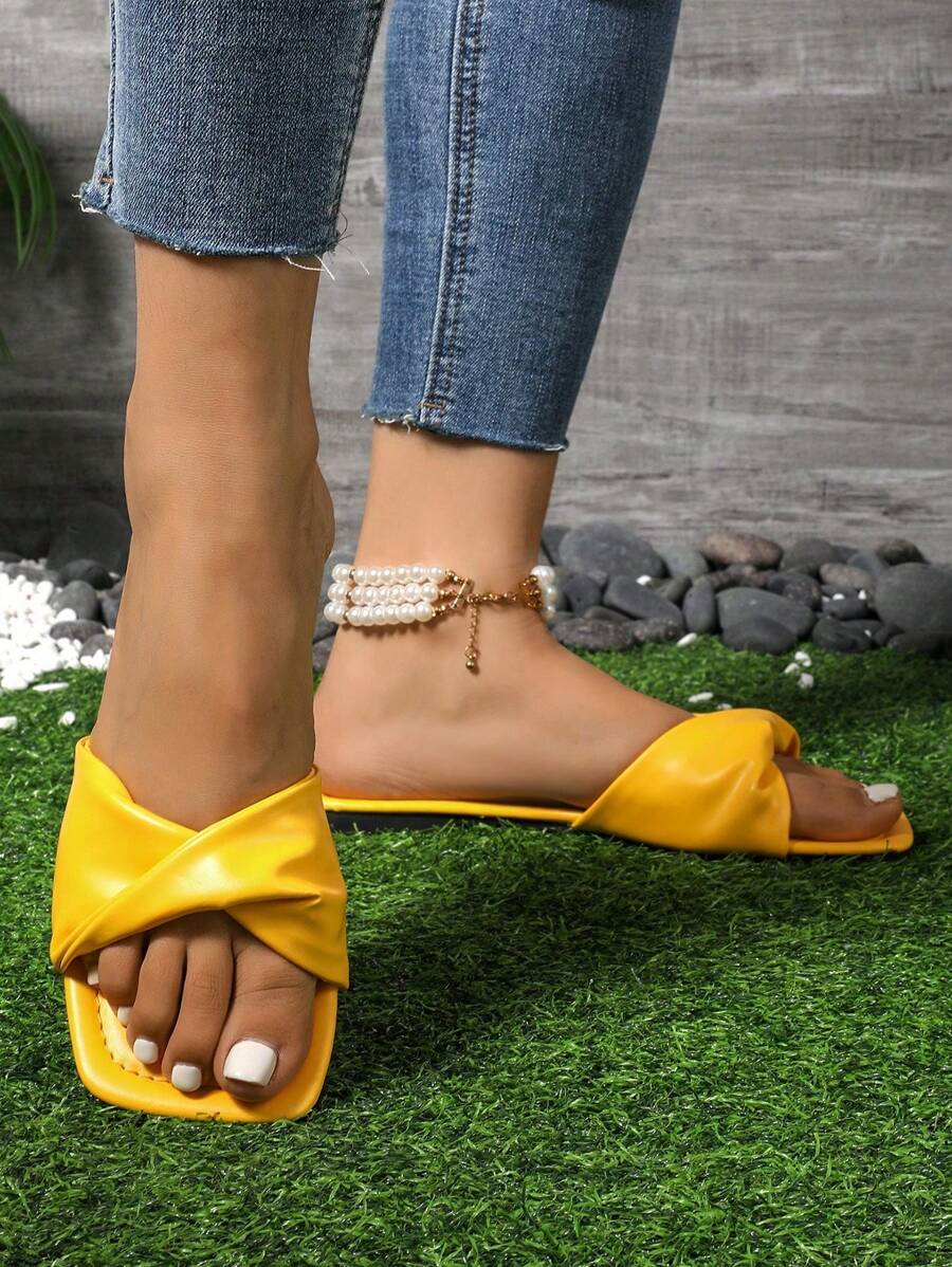 MIU Summer New White Cute Flat Sandals Women, Fashion Casual Thong Slippers With Yellow Sole Square Toe