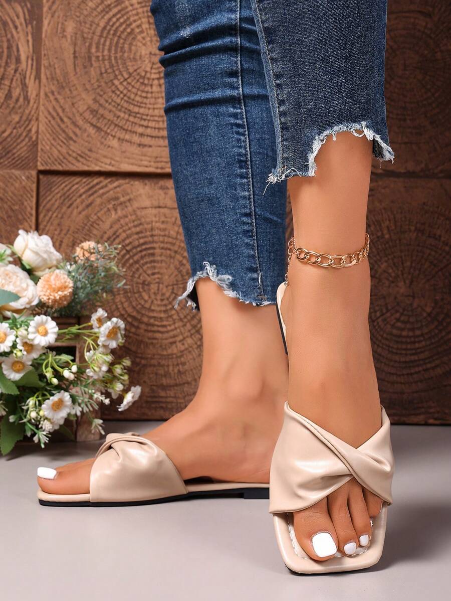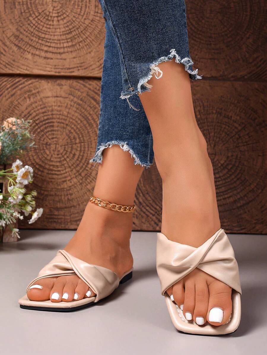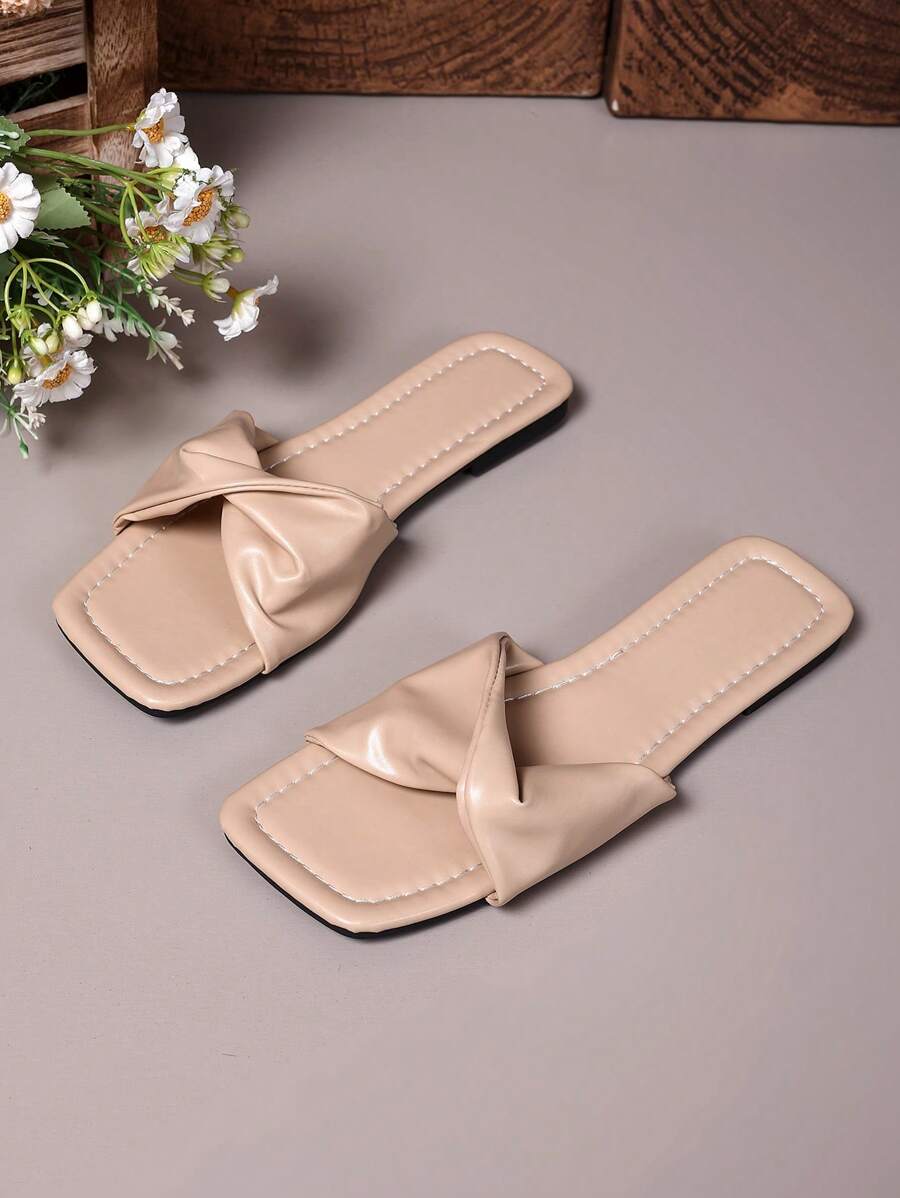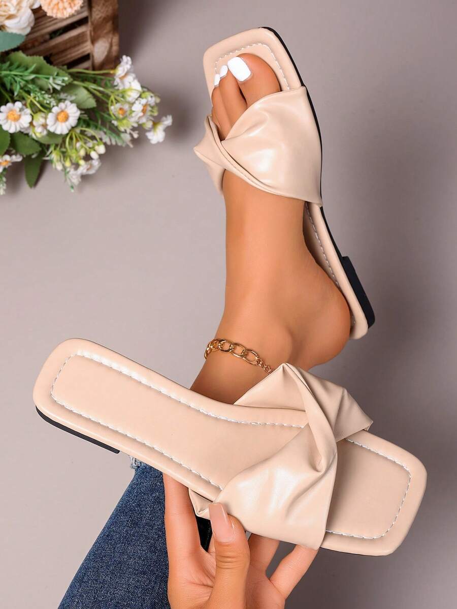 MIU Summer New White Cute Flat Sandals Women, Fashion Casual Thong Slippers With Yellow Sole Square Toe