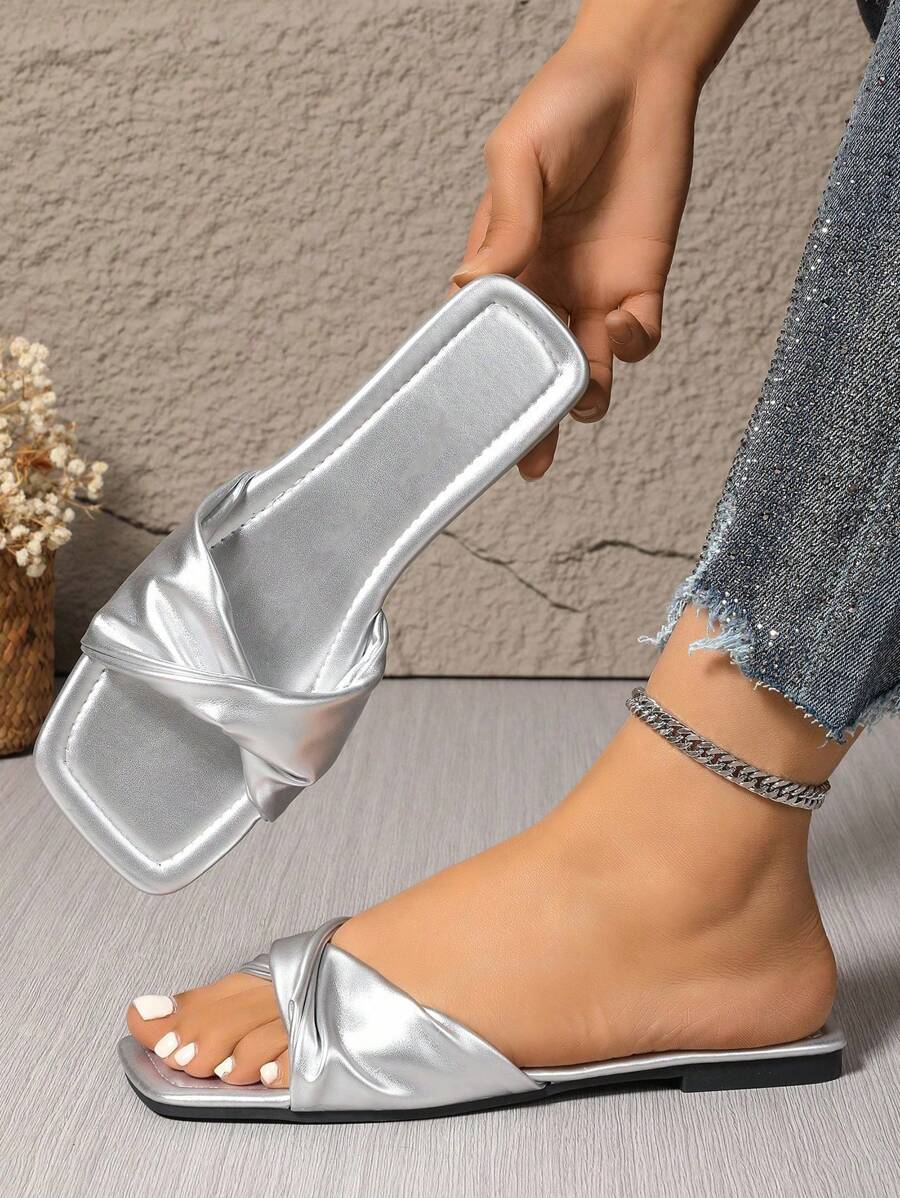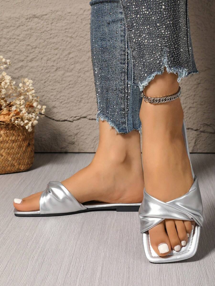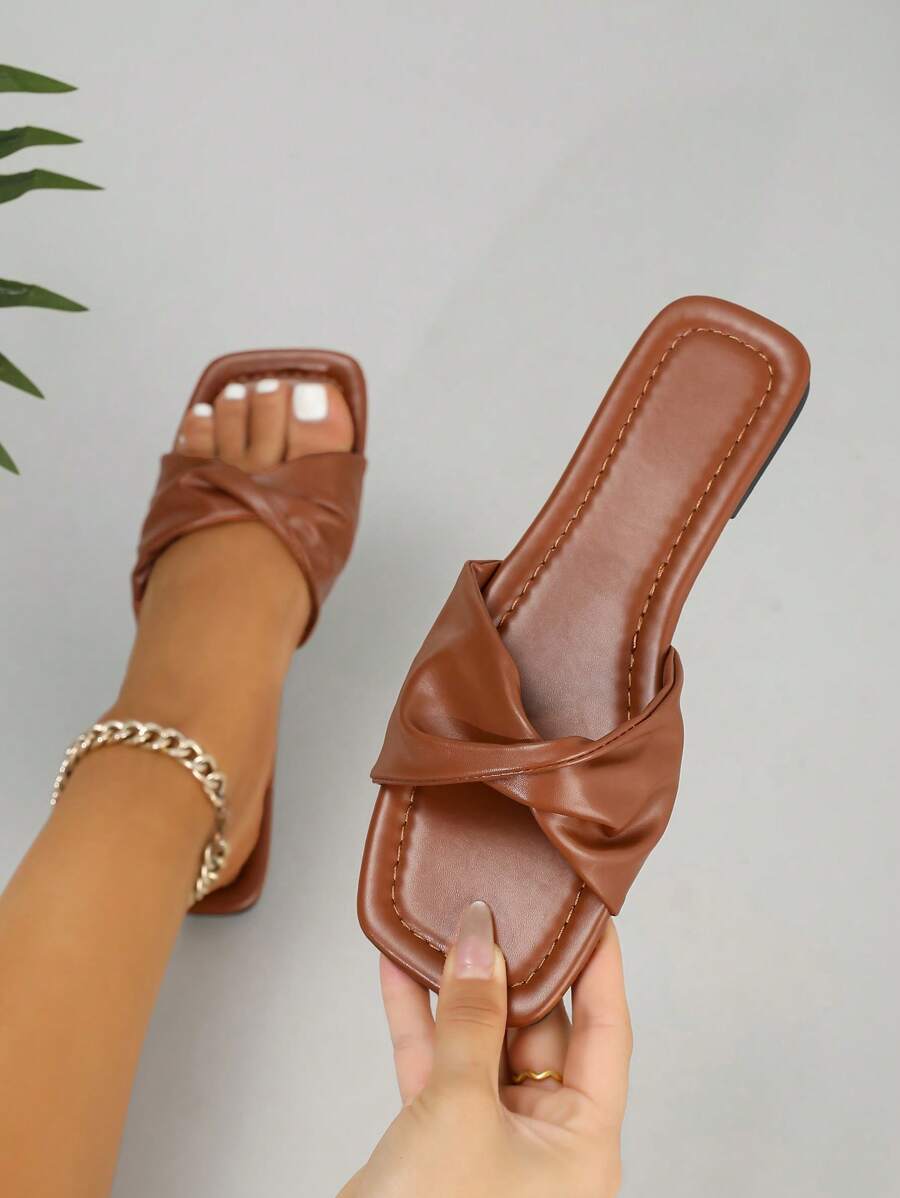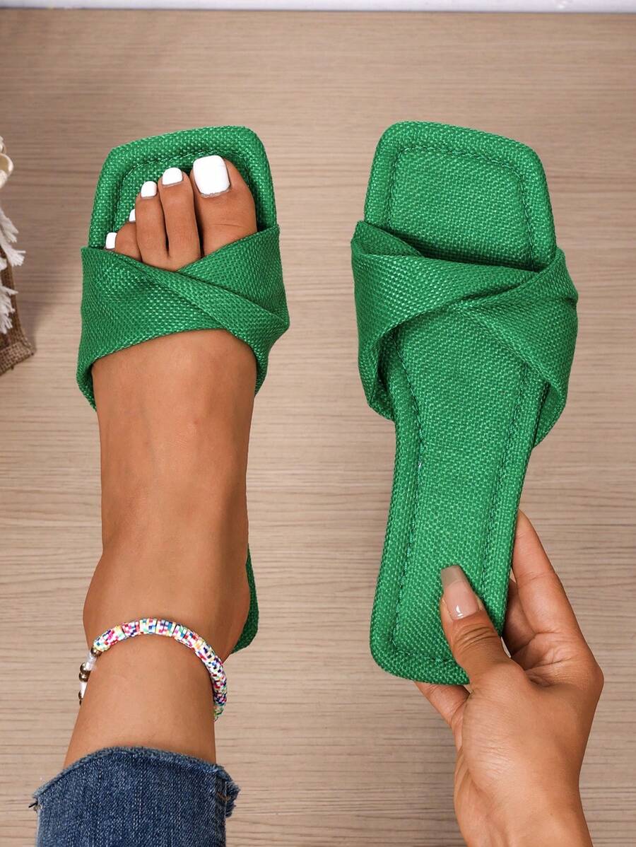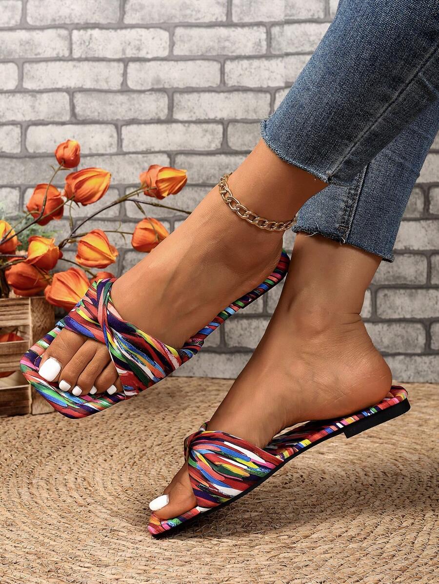 MIU Summer New White Cute Flat Sandals Women, Fashion Casual Thong Slippers With Yellow Sole Square Toe