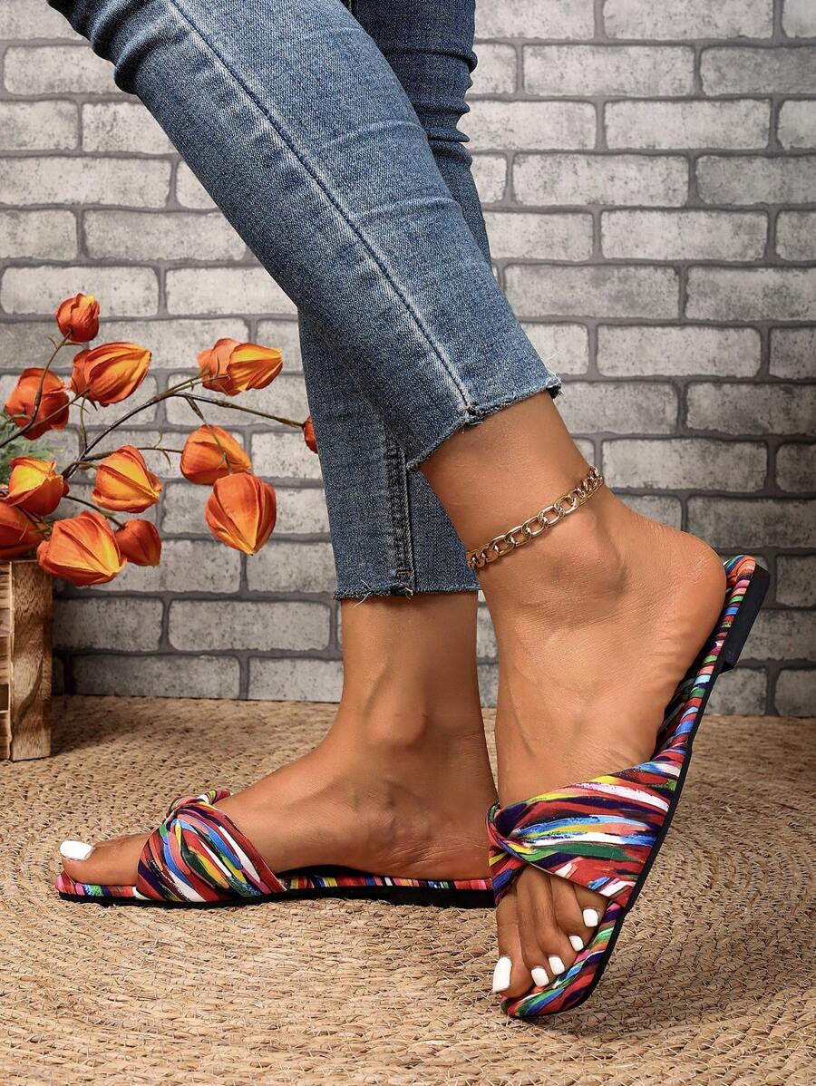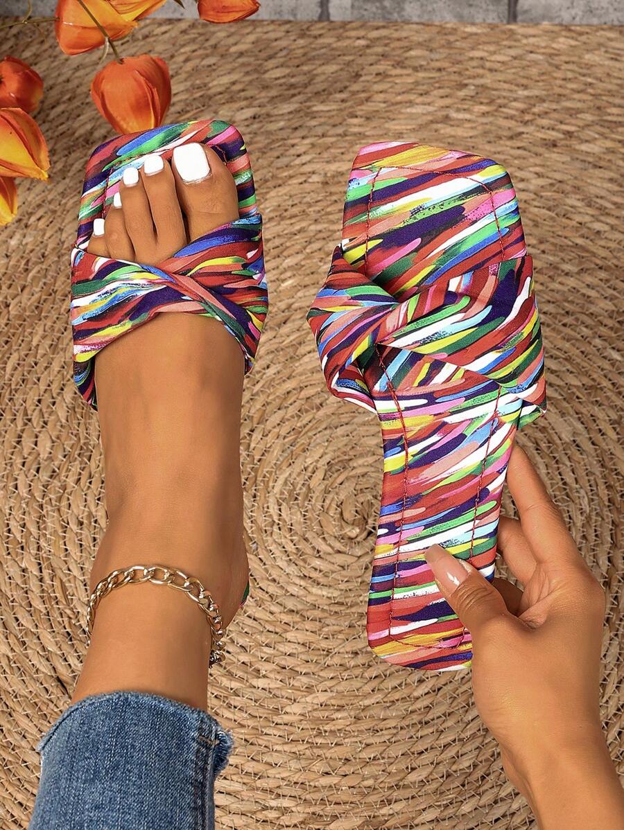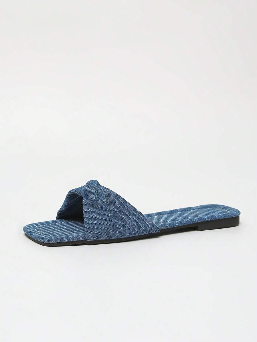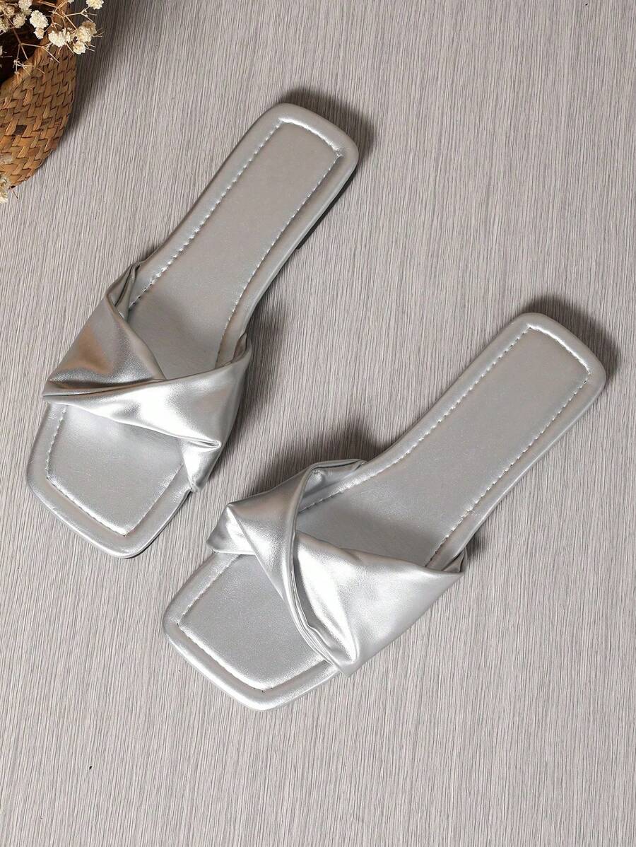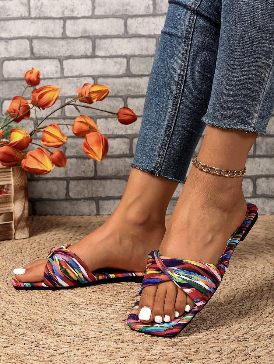 MIU Summer New White Cute Flat Sandals Women, Fashion Casual Thong Slippers With Yellow Sole Square Toe