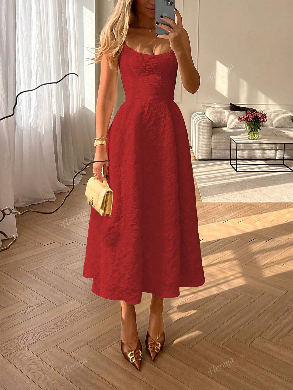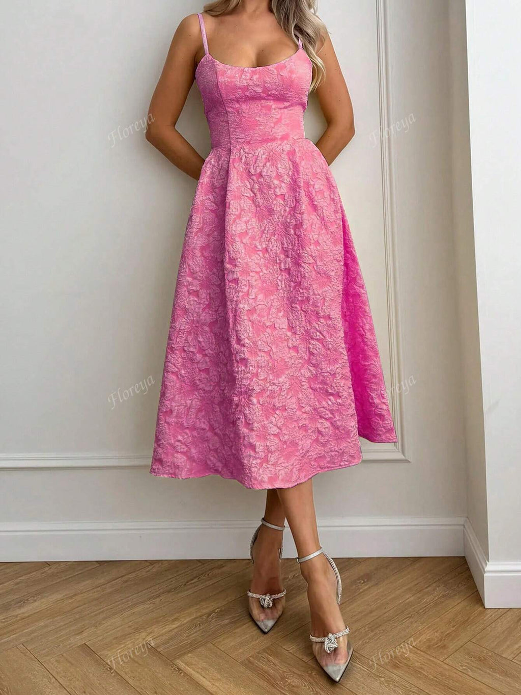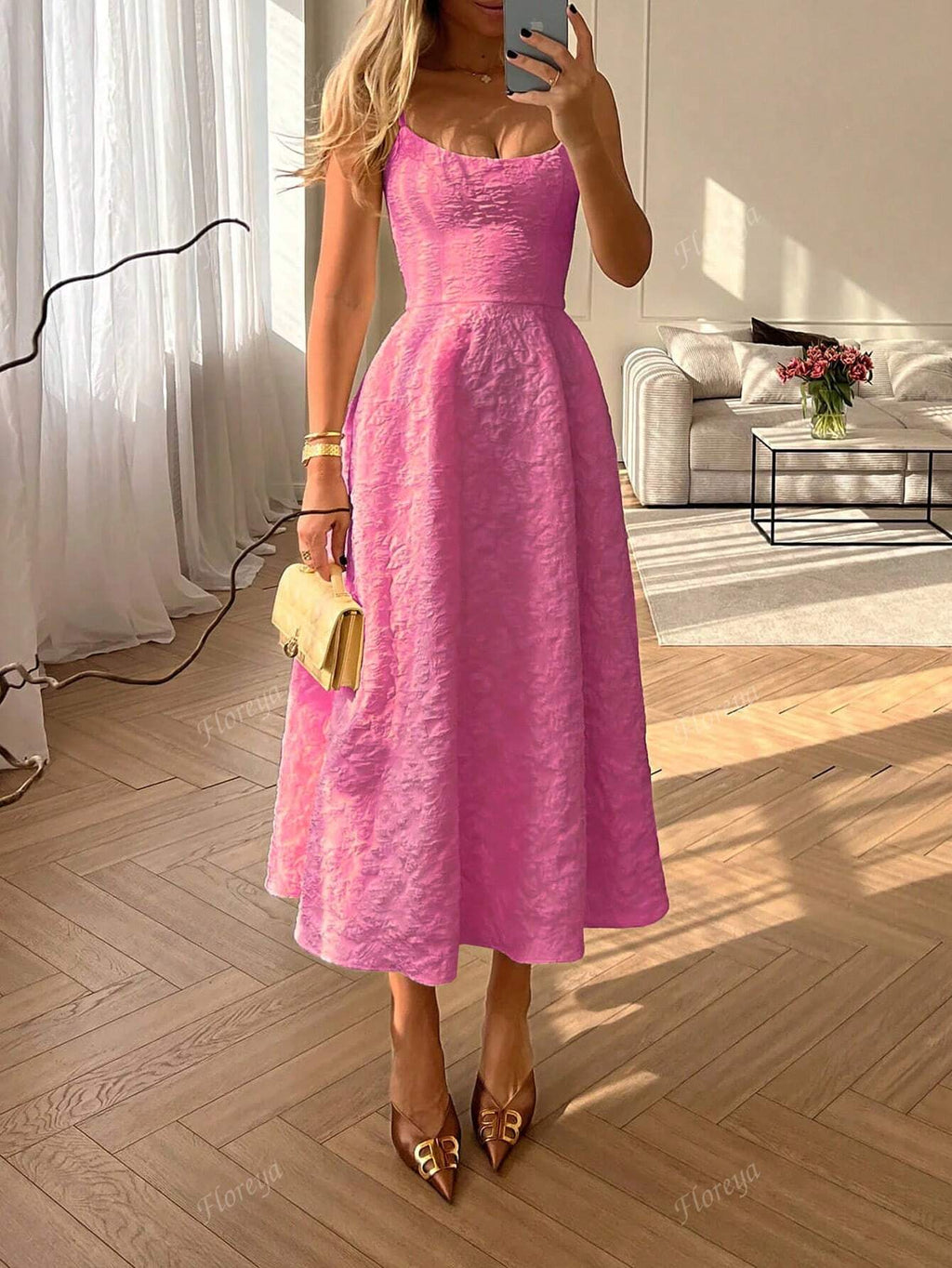 MIU Summer Wedding Elegant Solid Color French Chic Quality Waist-Cinched Slim Fit Sling Midi Dress, Dusty Rose