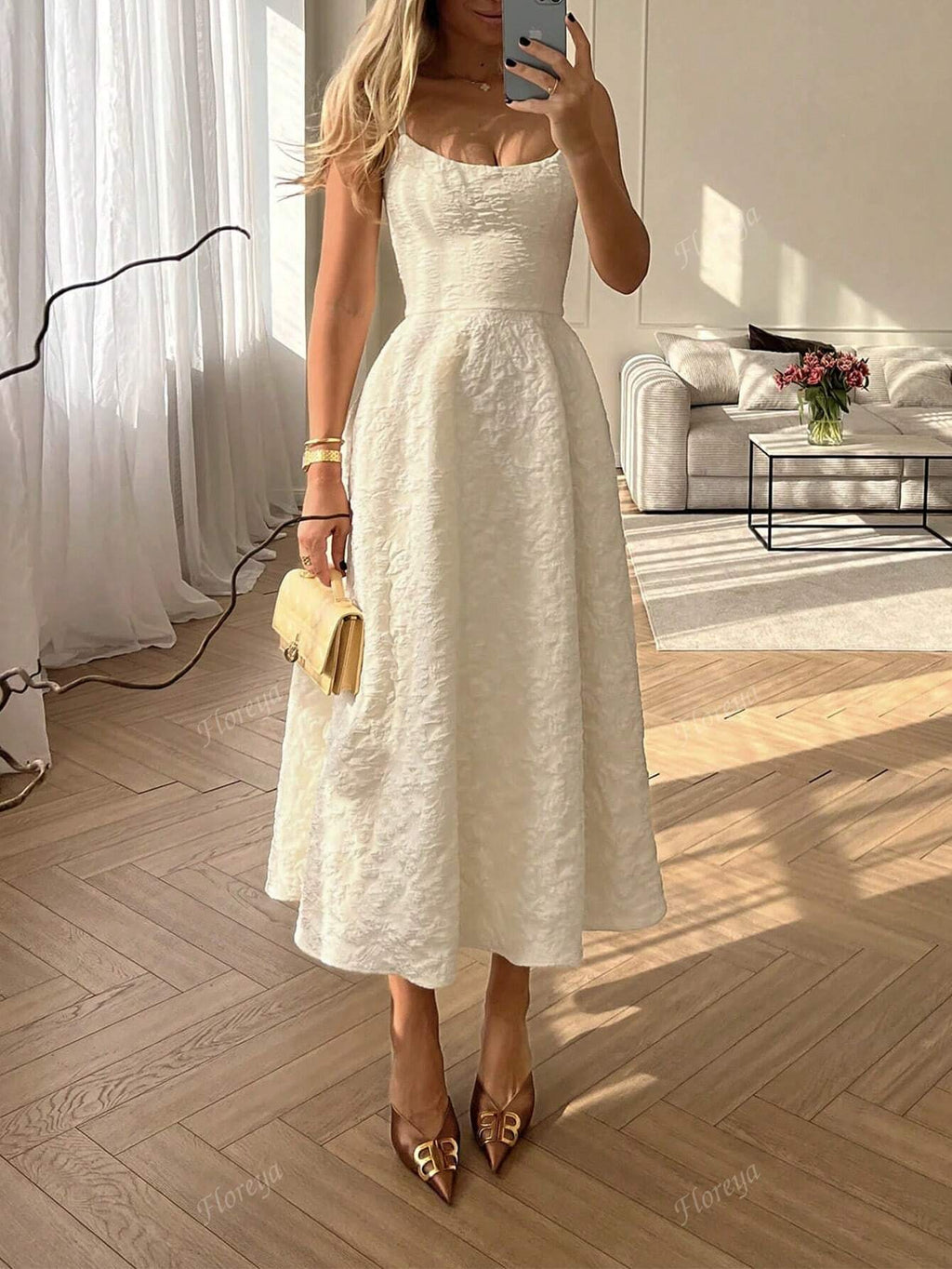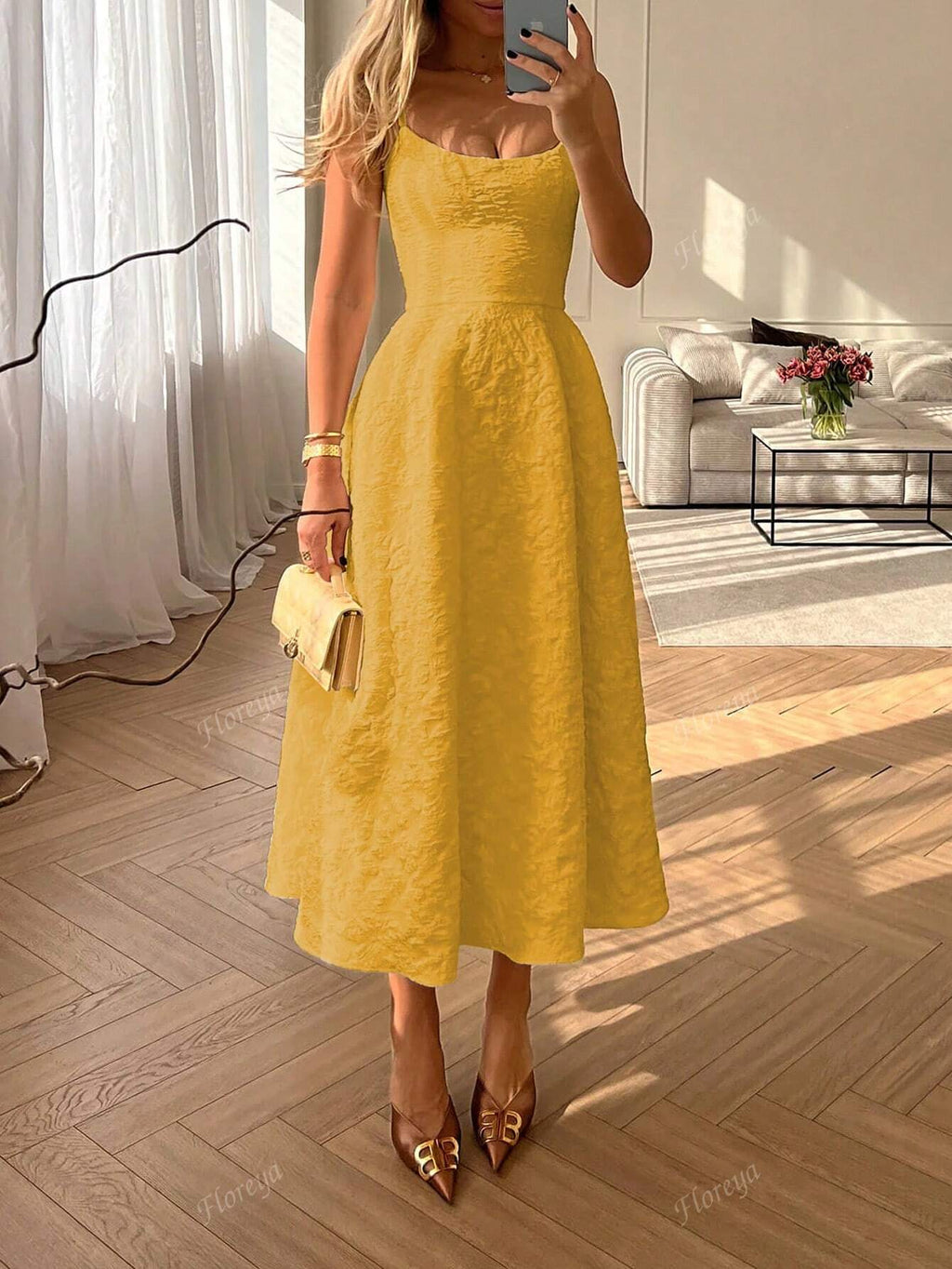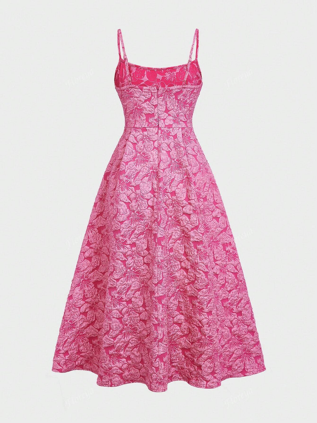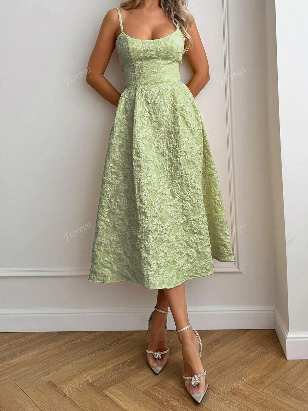 MIU Summer Wedding Elegant Solid Color French Chic Quality Waist-Cinched Slim Fit Sling Midi Dress, Dusty Rose