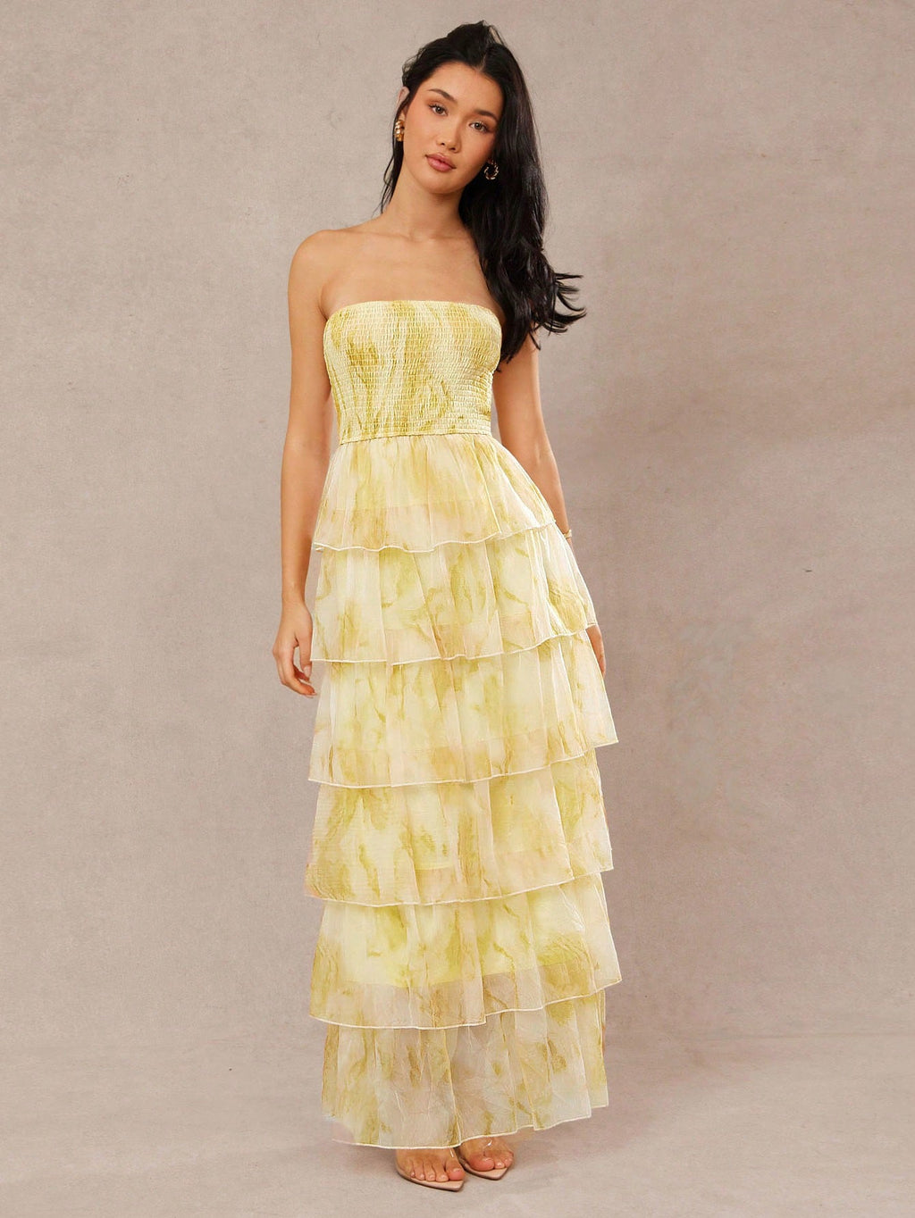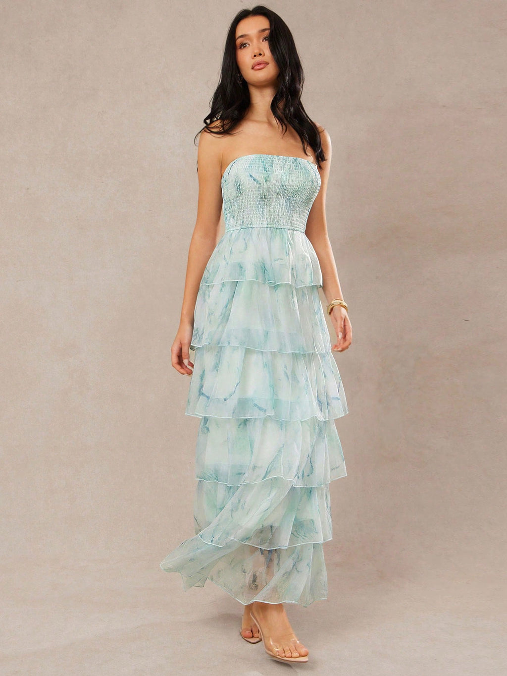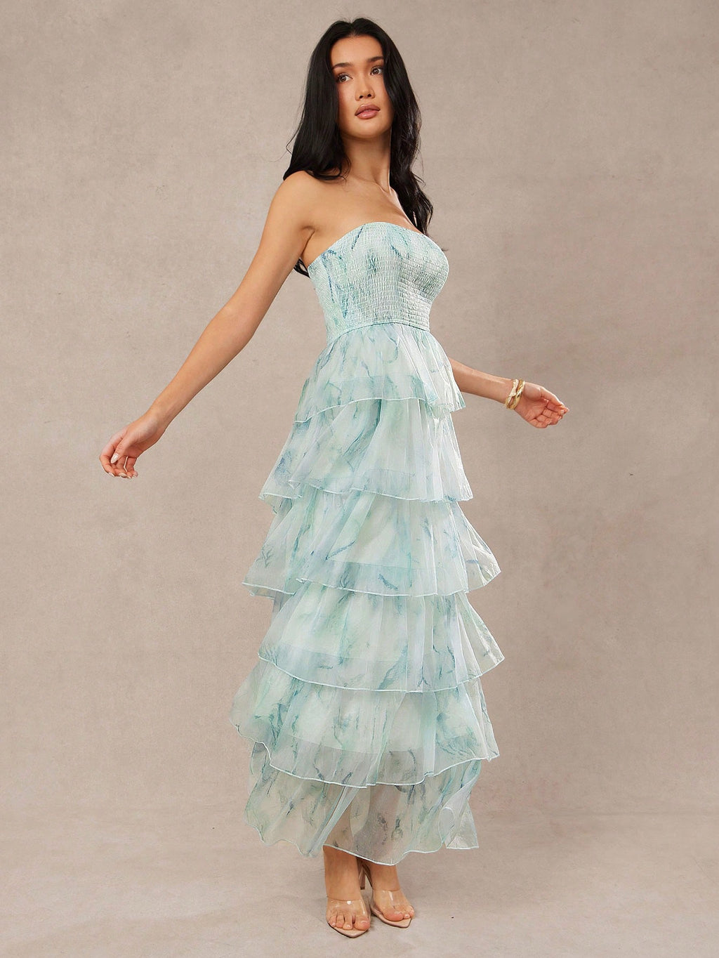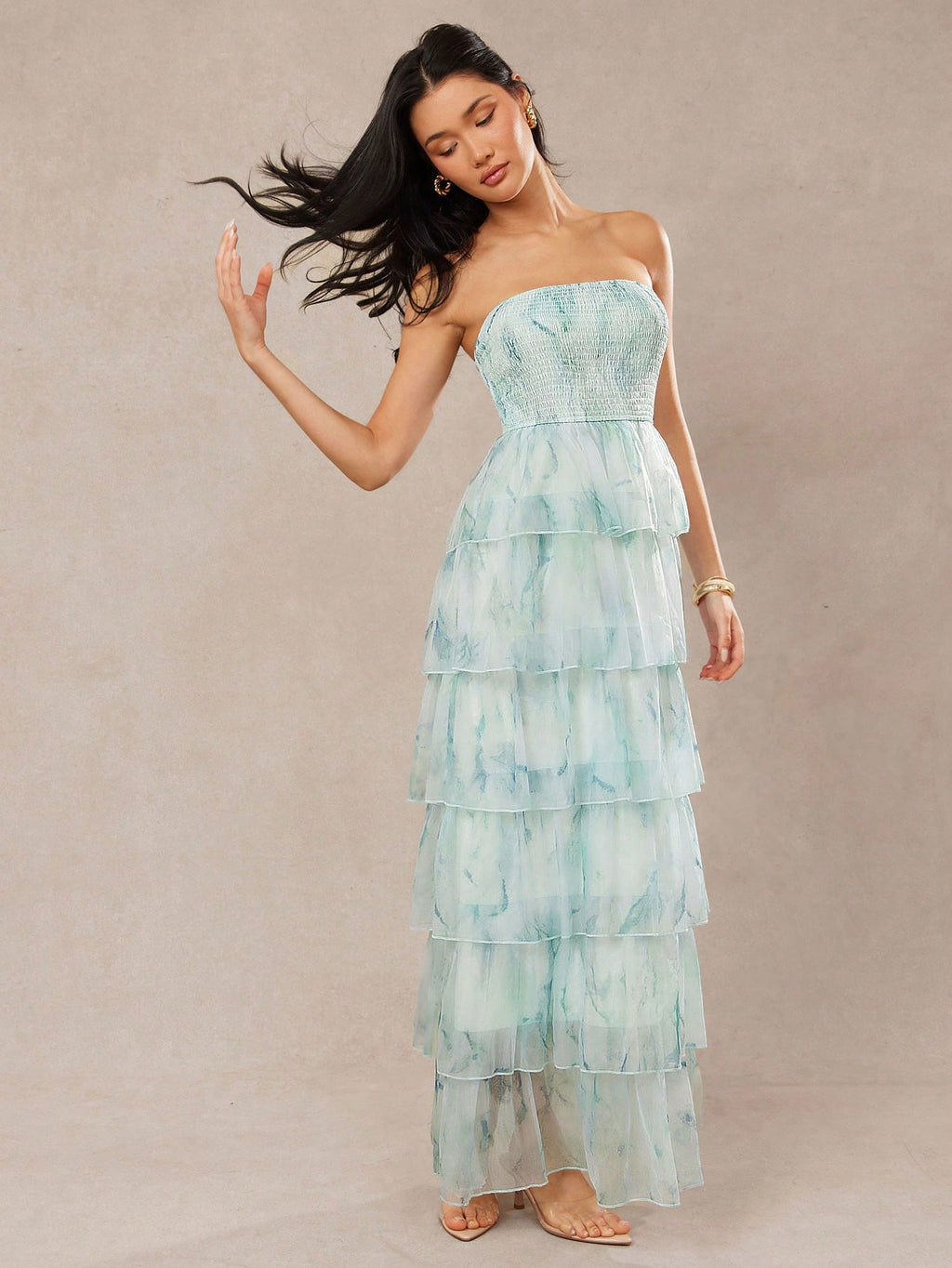 MIU Tiered Printed Maxi Dress With Shirring, Wedding Guest Dress