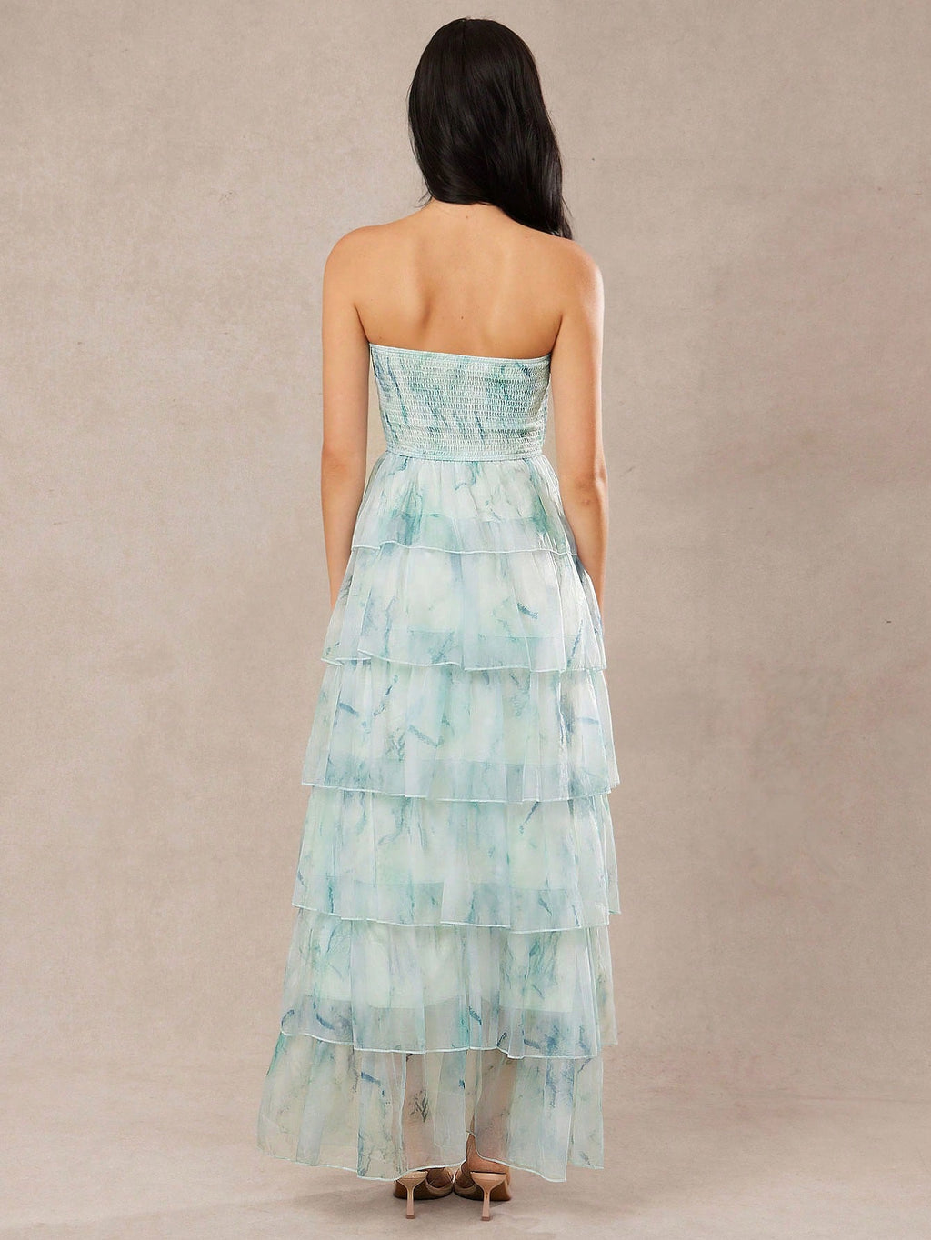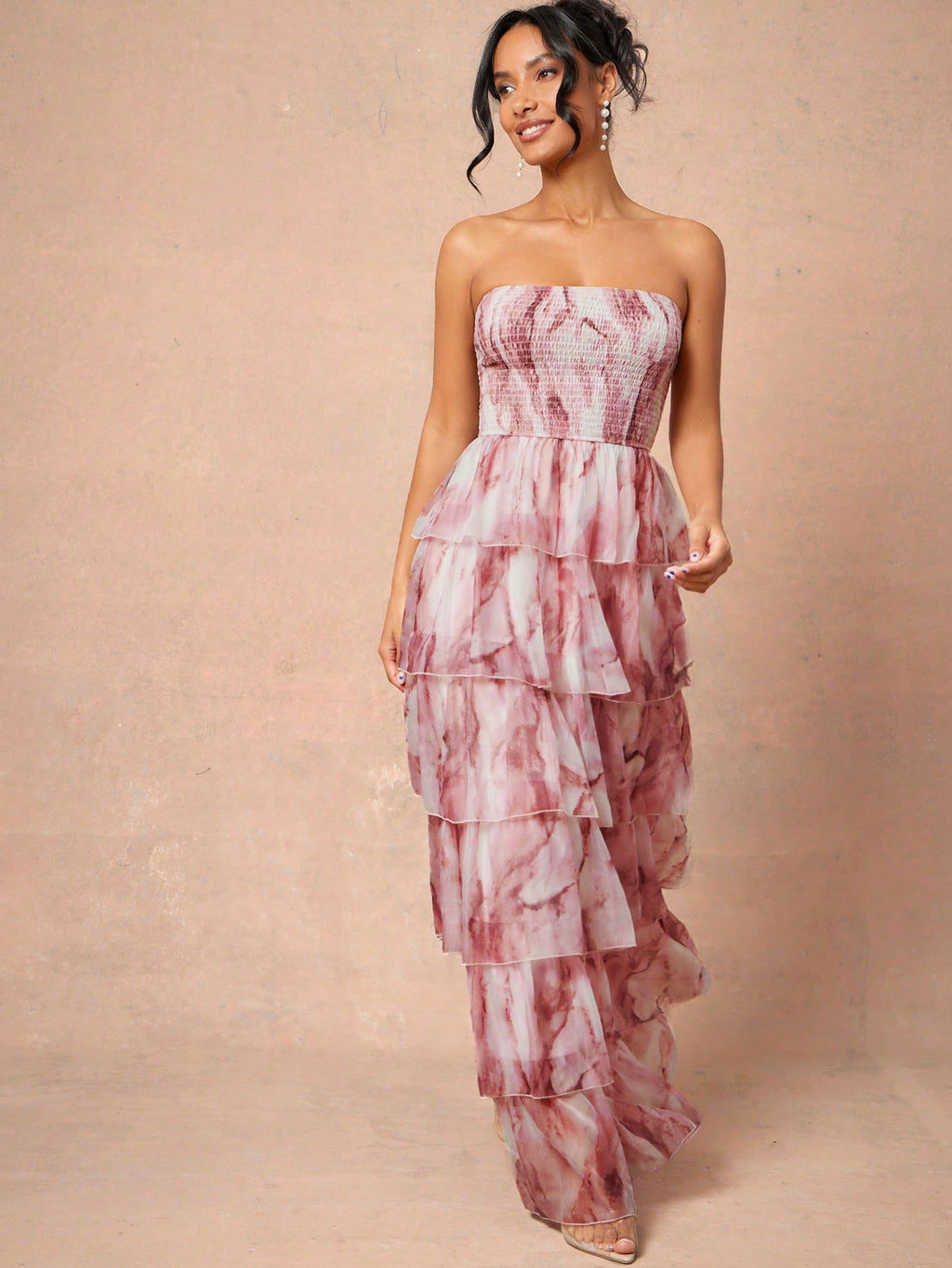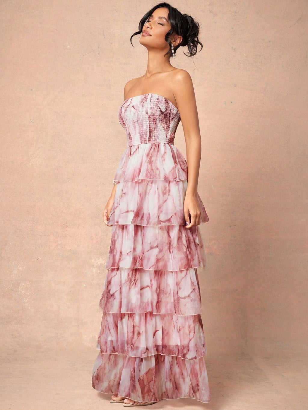 MIU Tiered Printed Maxi Dress With Shirring, Wedding Guest Dress