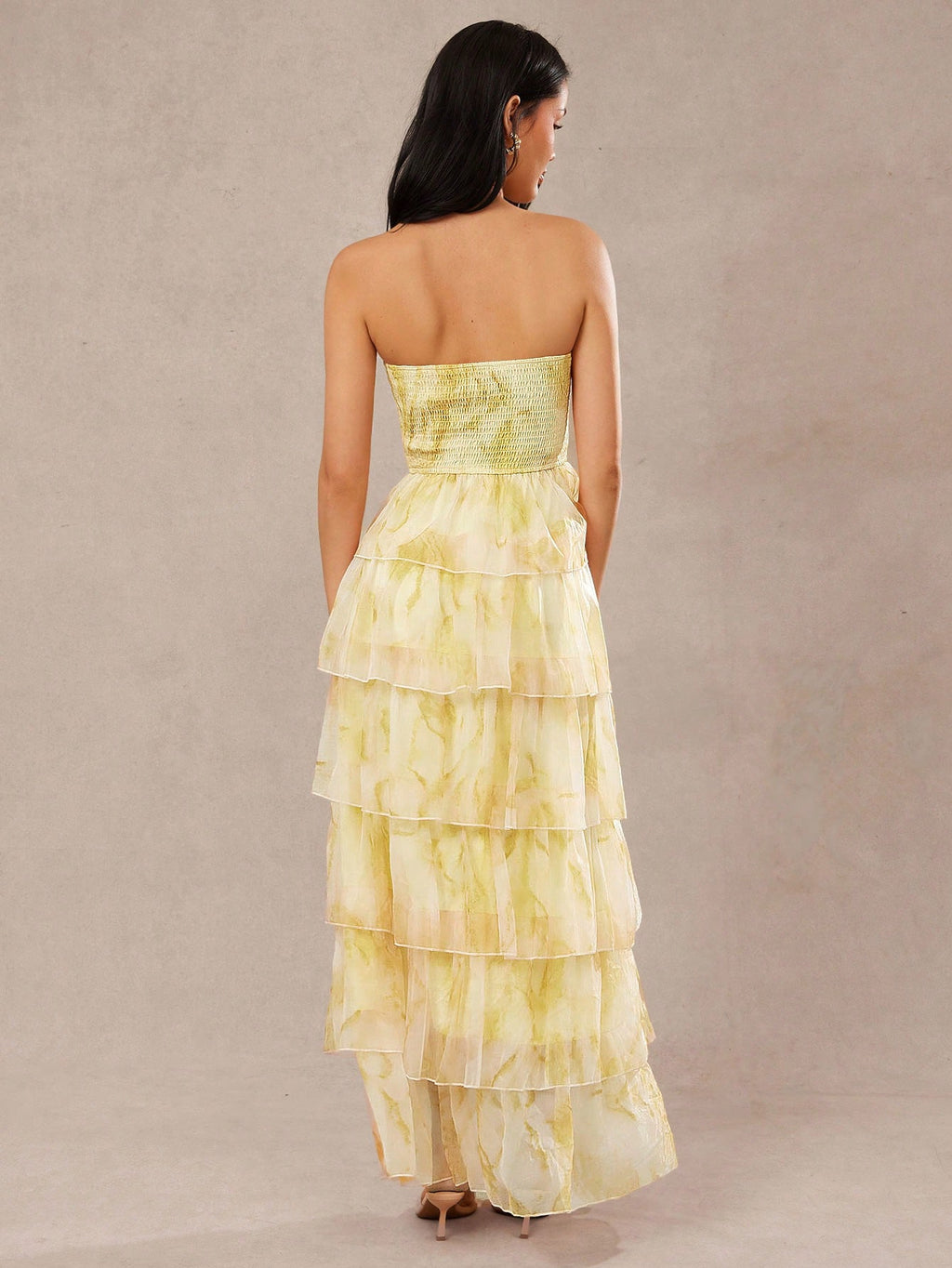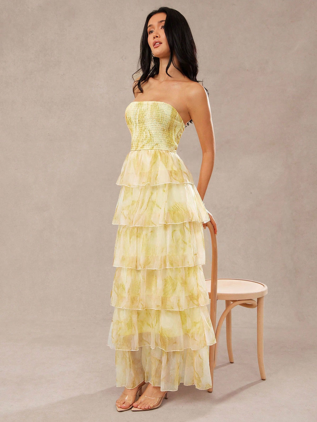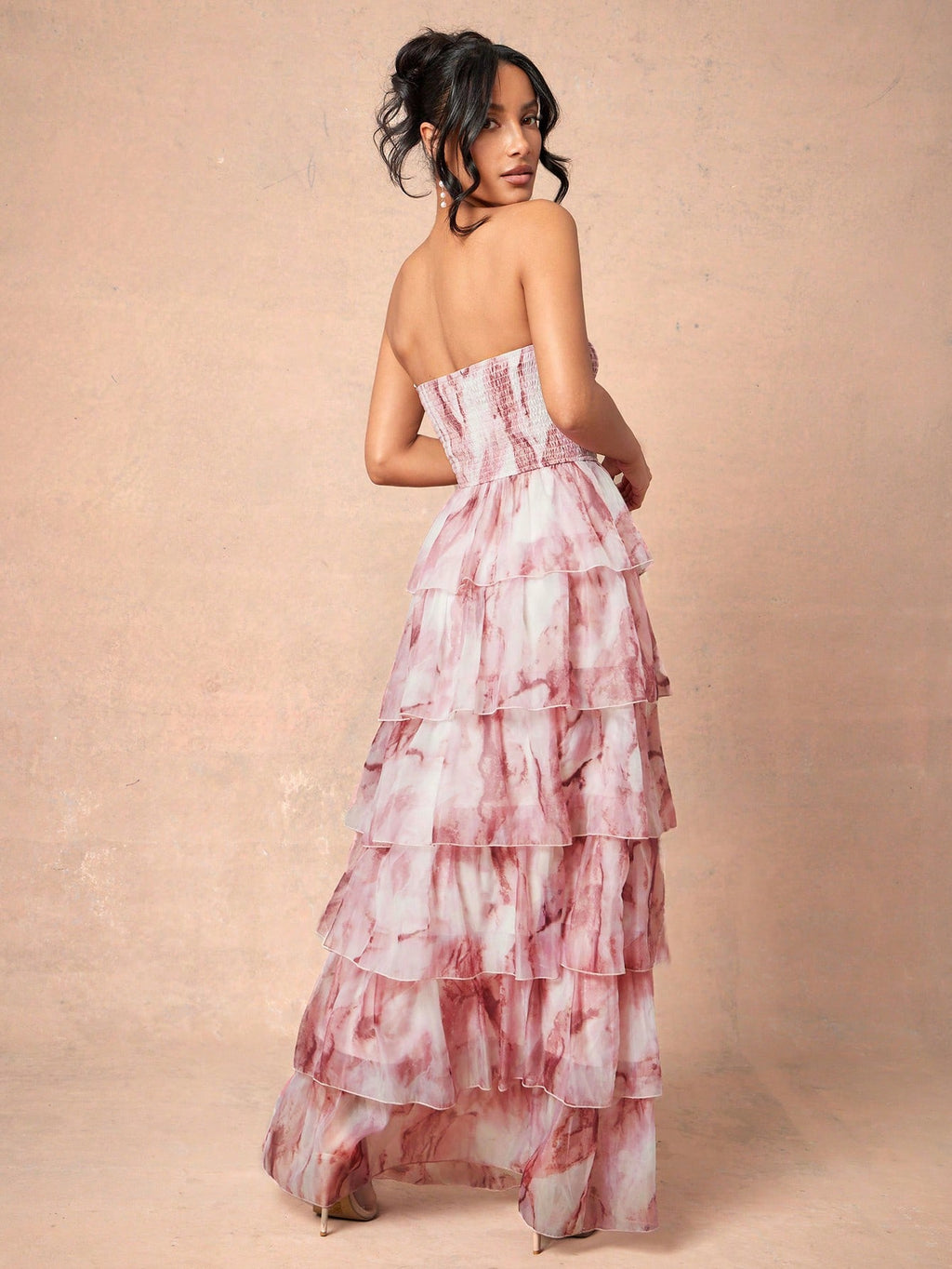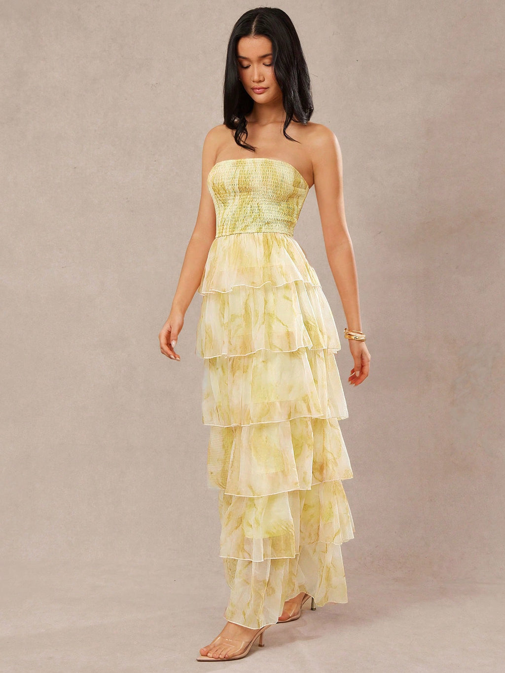 MIU Tiered Printed Maxi Dress With Shirring, Wedding Guest Dress
