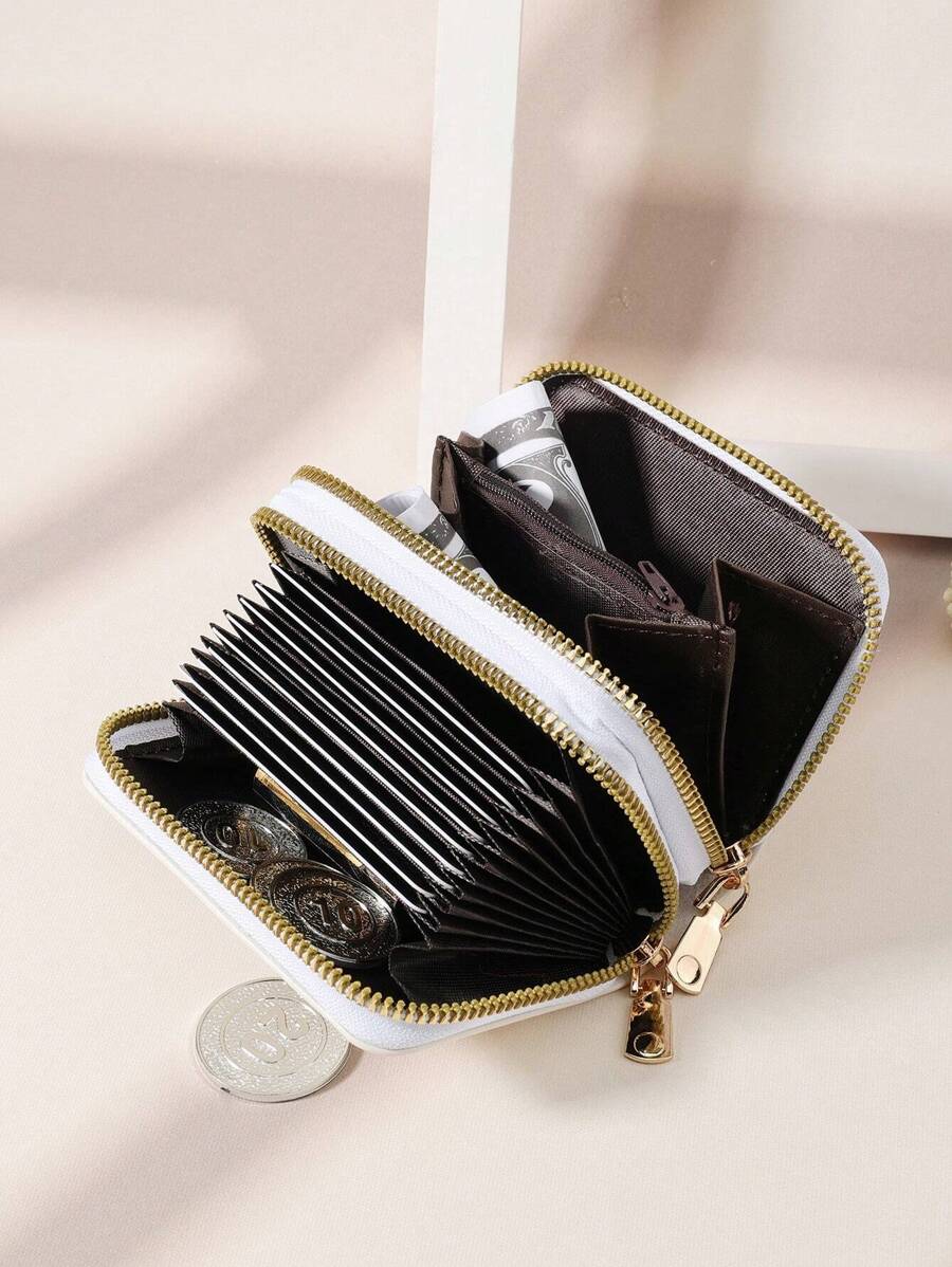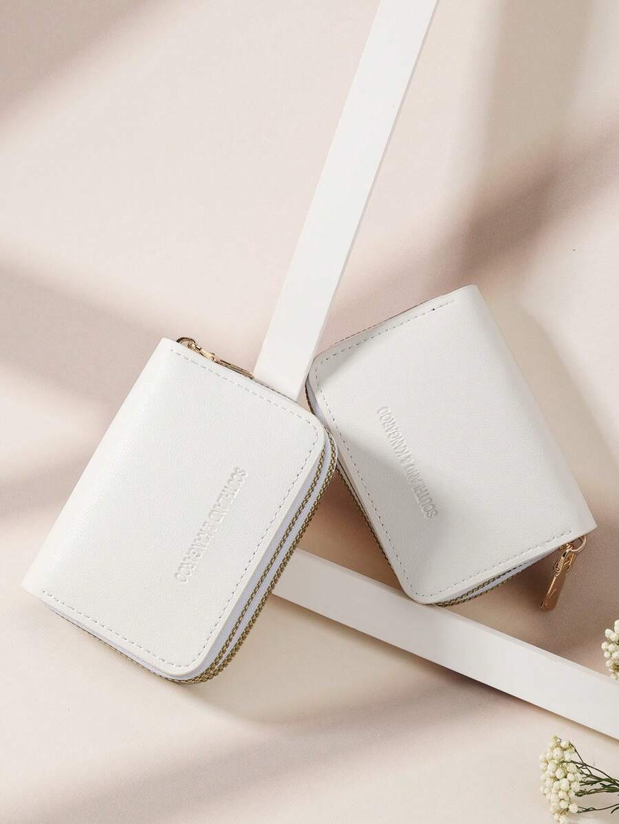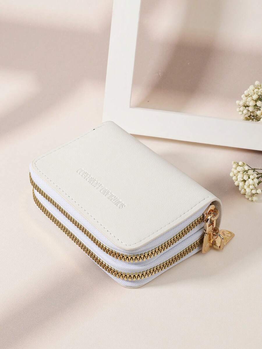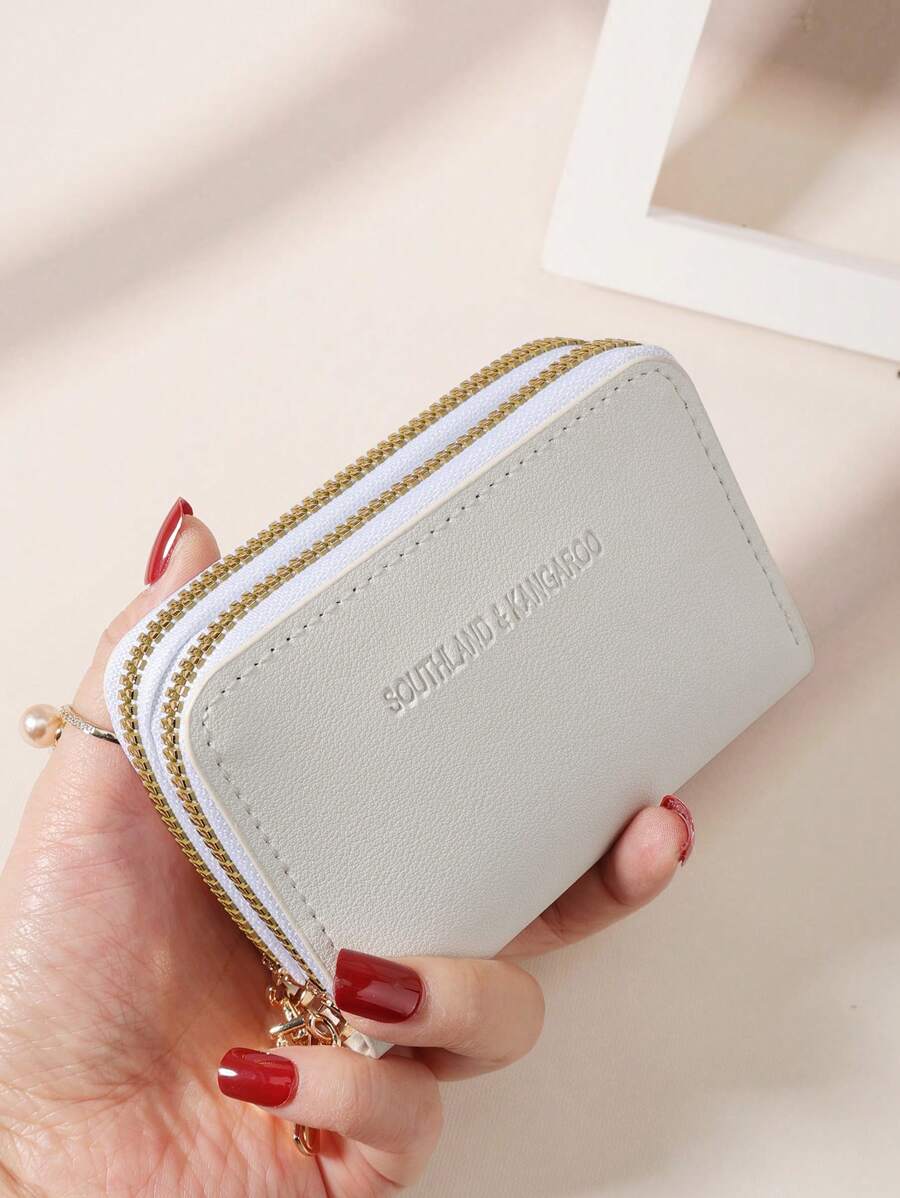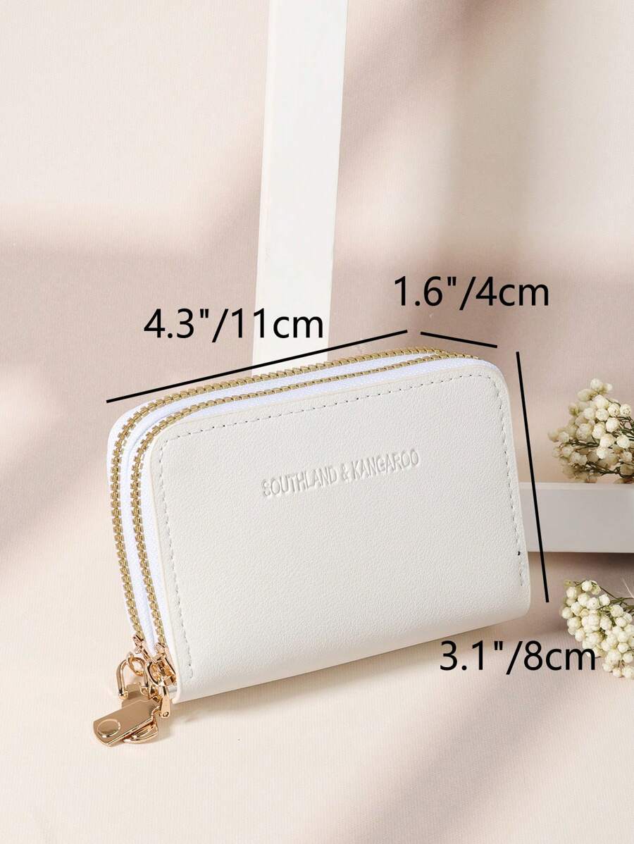 MIU White Double Zipper Versatile Coin Wallet Letter Graphic Card Holder Multi-Card Card Organizer For Storage Credit Cards School Supplies For School Dorm Room Women Business Casual For Women Wallet Purse Wallet Small Wallet