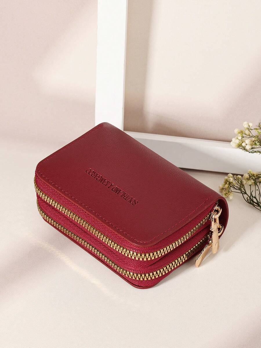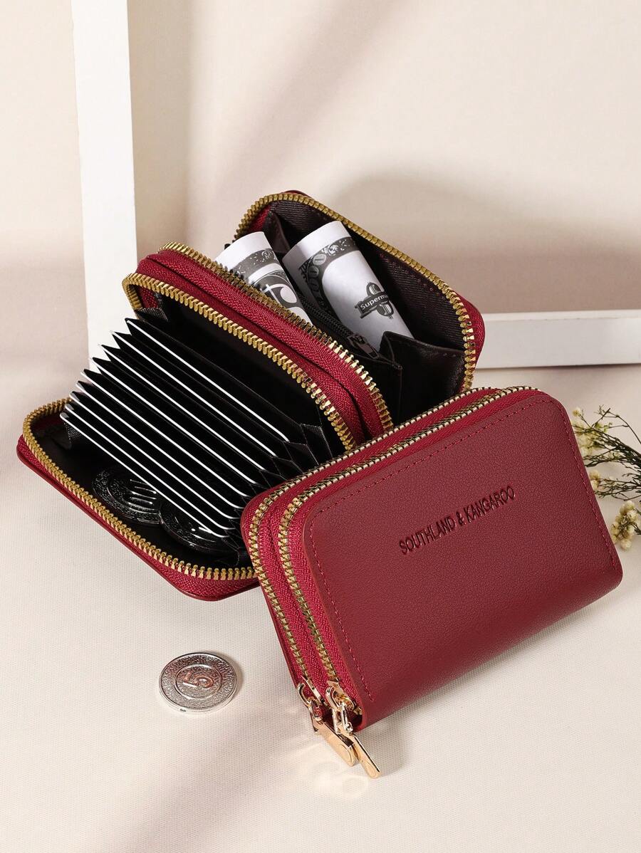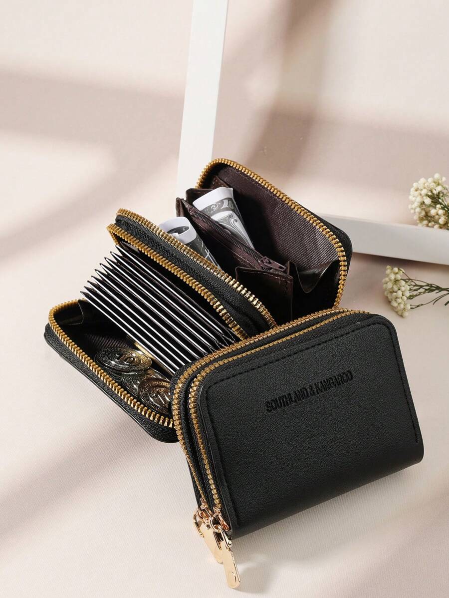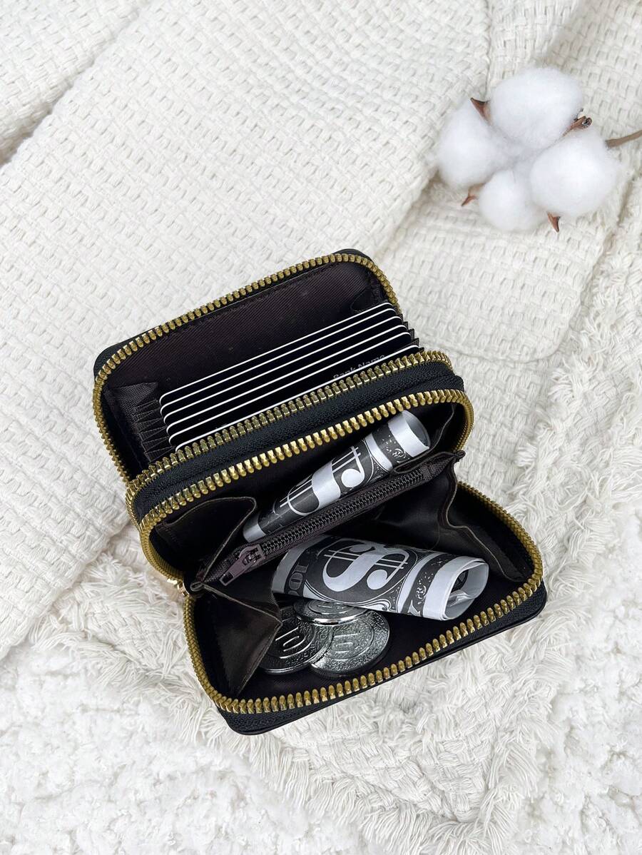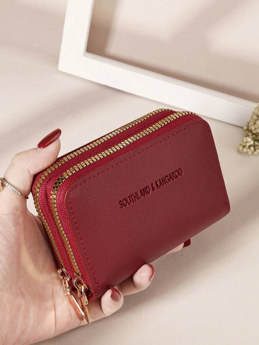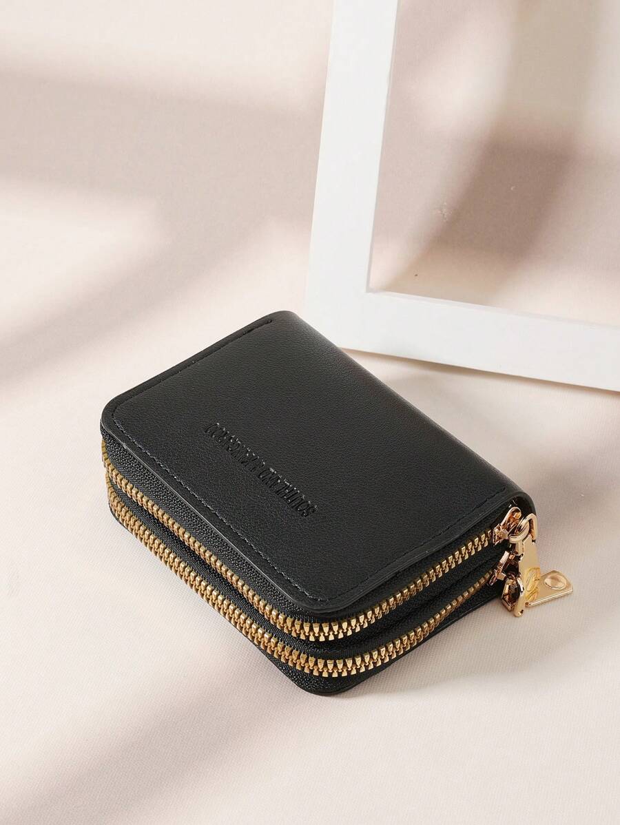 MIU White Double Zipper Versatile Coin Wallet Letter Graphic Card Holder Multi-Card Card Organizer For Storage Credit Cards School Supplies For School Dorm Room Women Business Casual For Women Wallet Purse Wallet Small Wallet