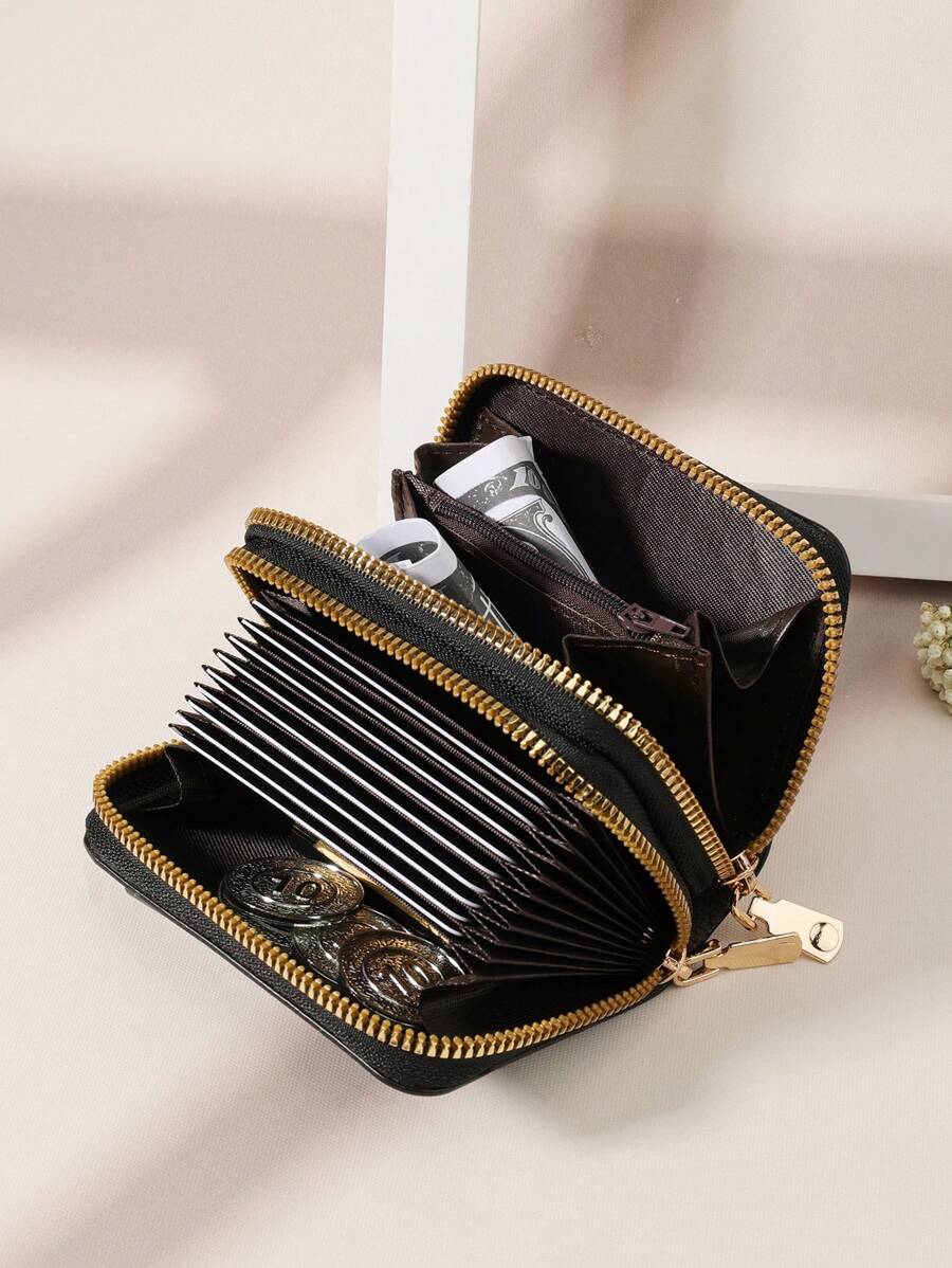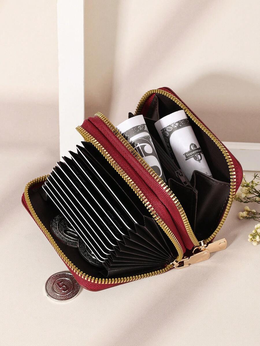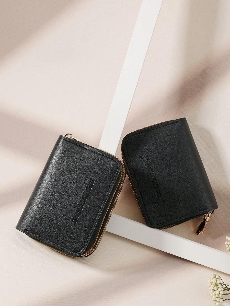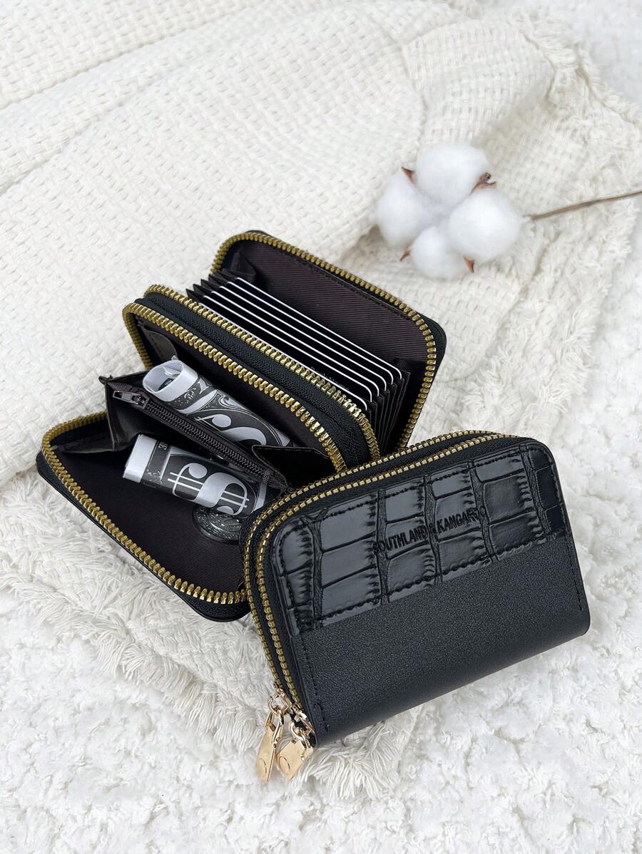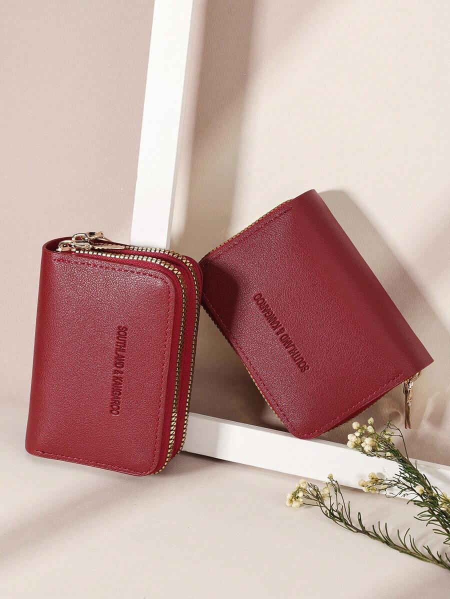 MIU White Double Zipper Versatile Coin Wallet Letter Graphic Card Holder Multi-Card Card Organizer For Storage Credit Cards School Supplies For School Dorm Room Women Business Casual For Women Wallet Purse Wallet Small Wallet