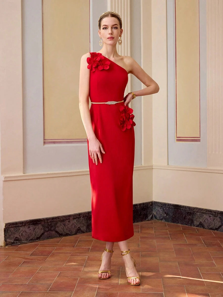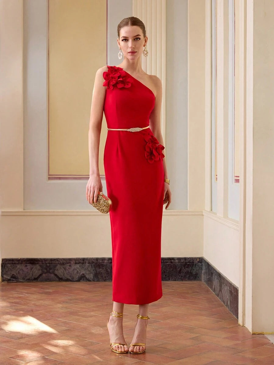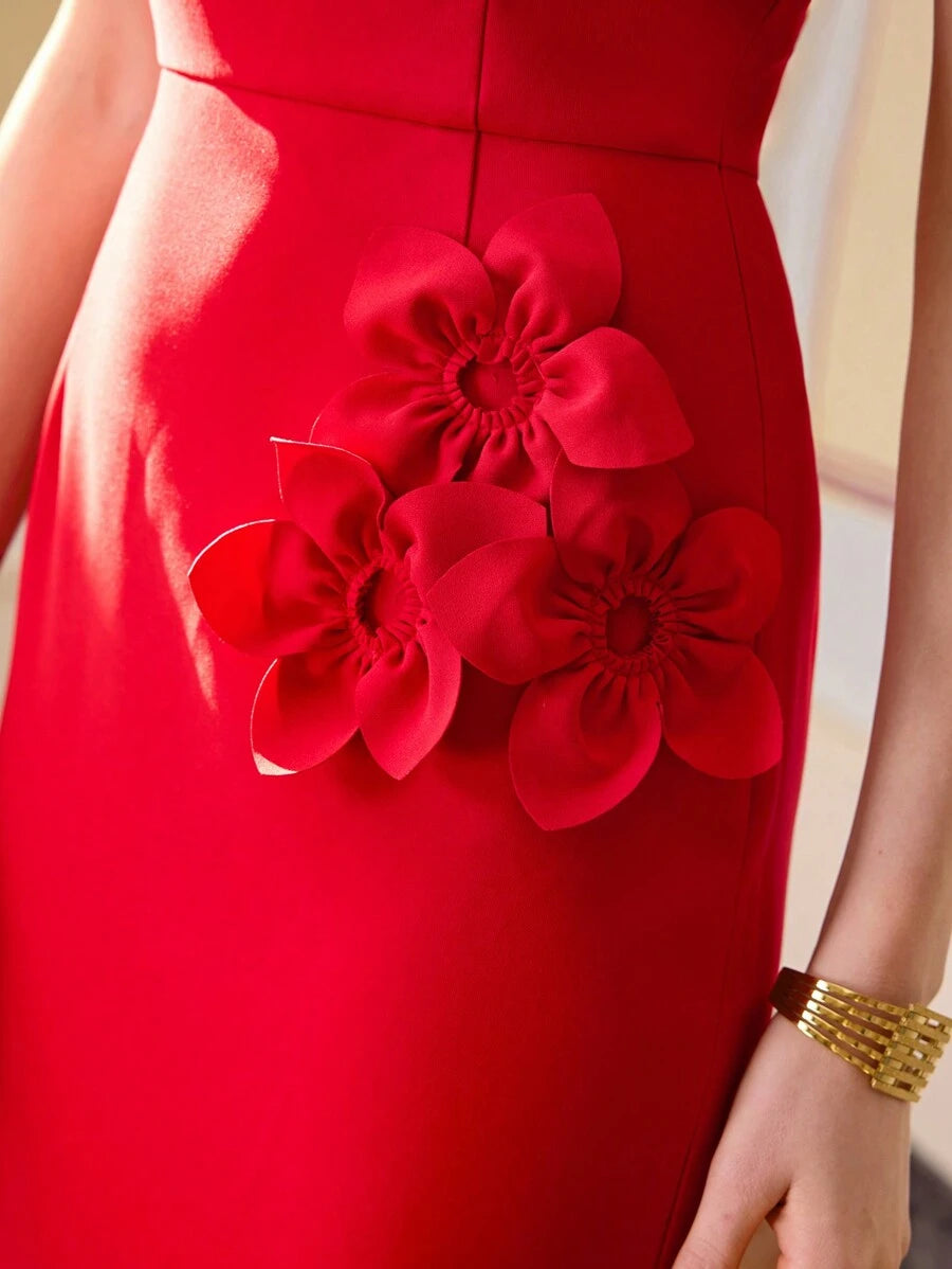 MIU Women 3D Flower Decor Sleeveless Midi Dress, Elegant