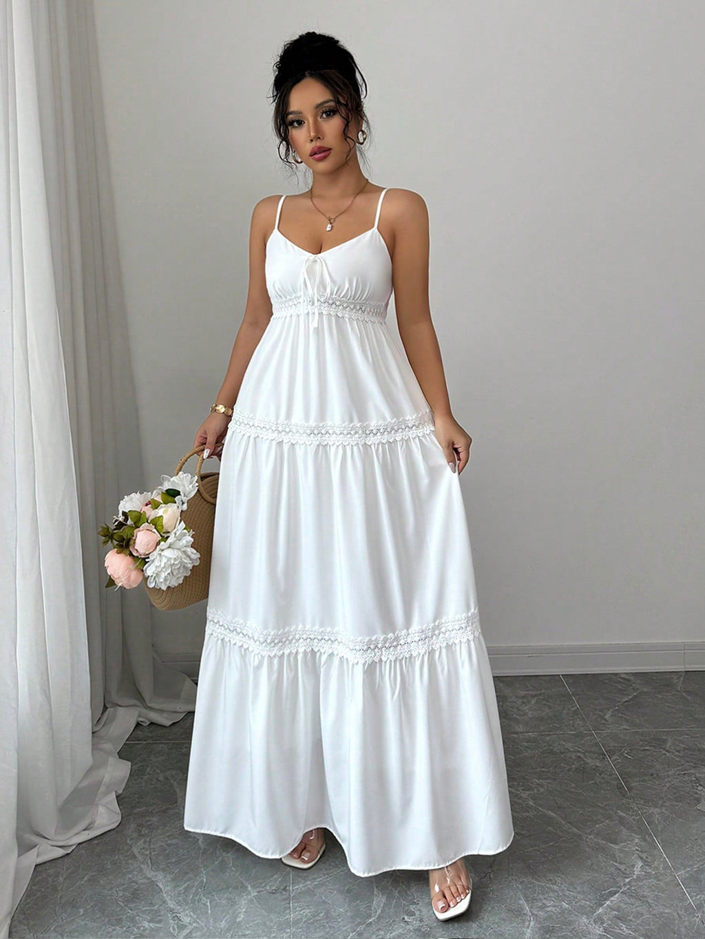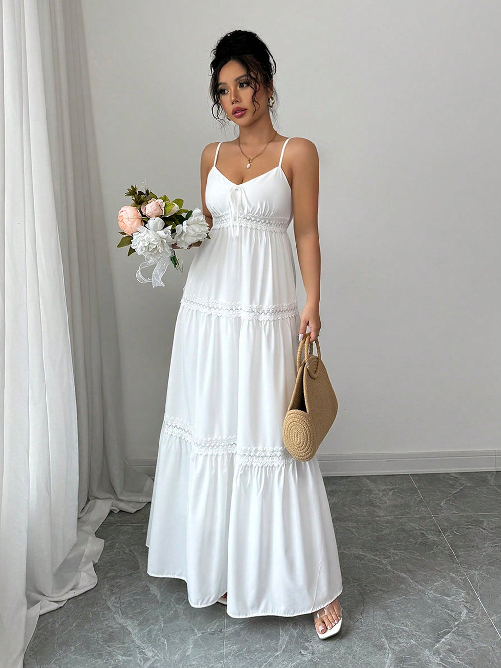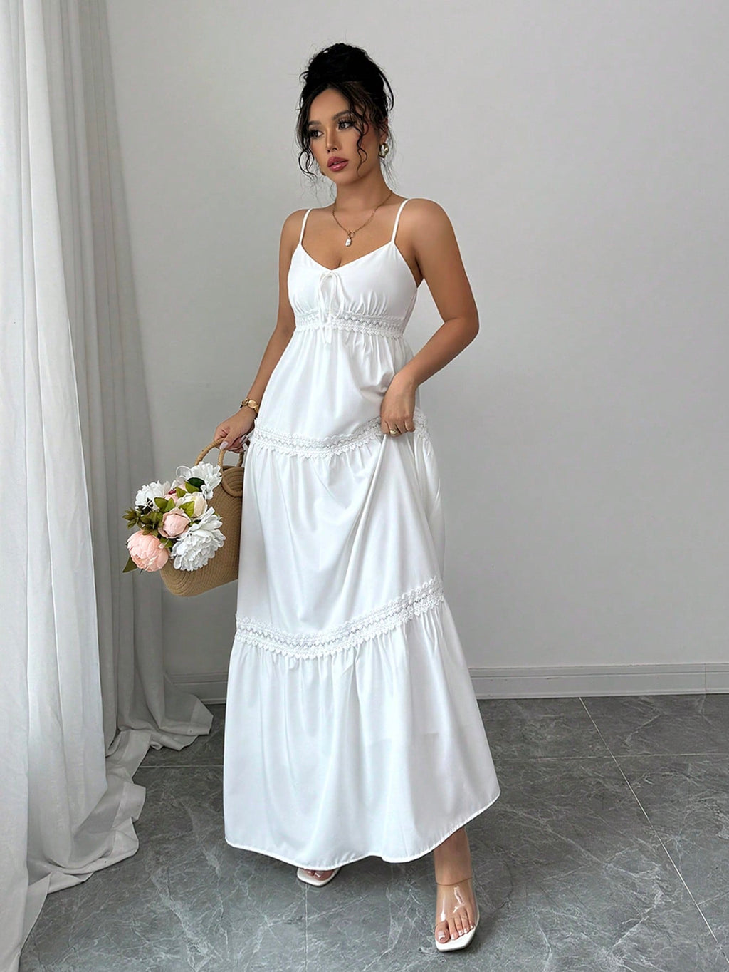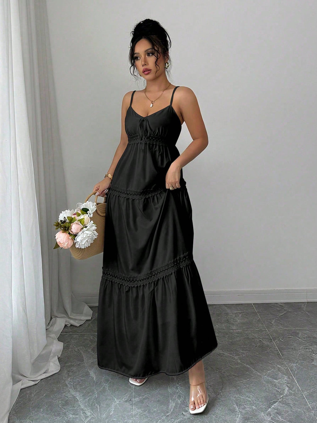 MIU Women Adjustable Strap Waist Elegant Solid Color Casual Dress, Suitable For Summer