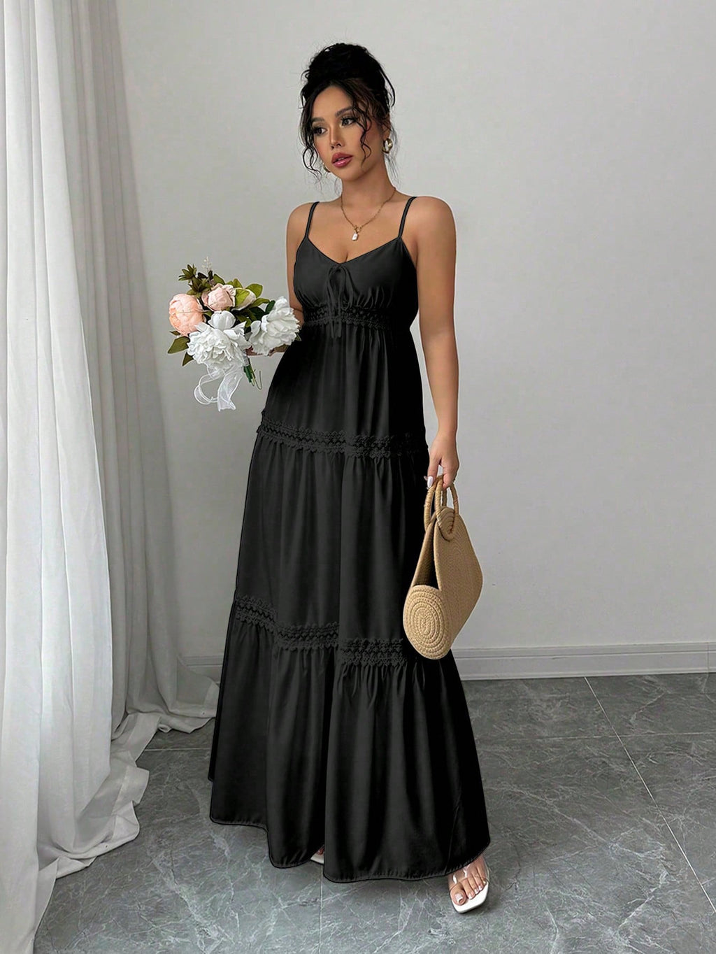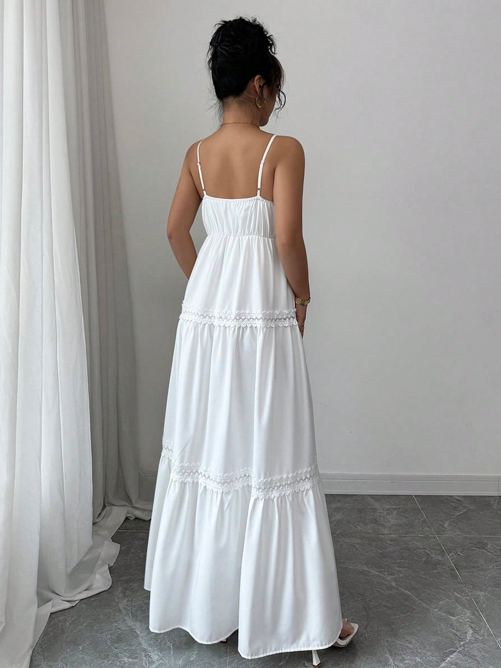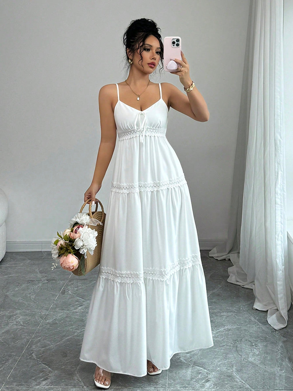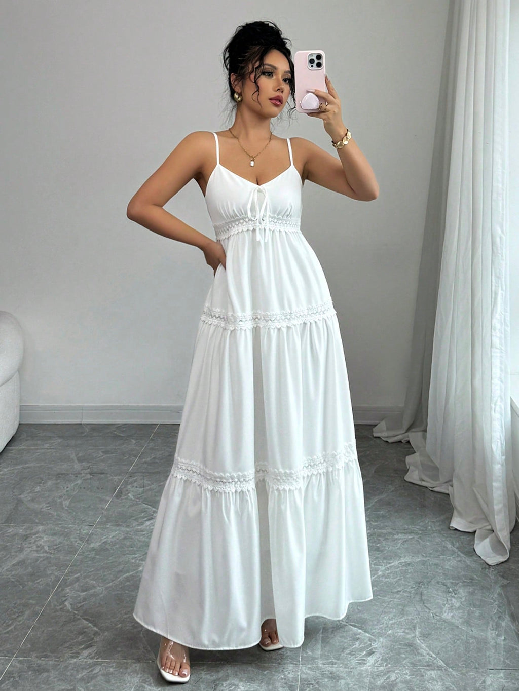 MIU Women Adjustable Strap Waist Elegant Solid Color Casual Dress, Suitable For Summer
