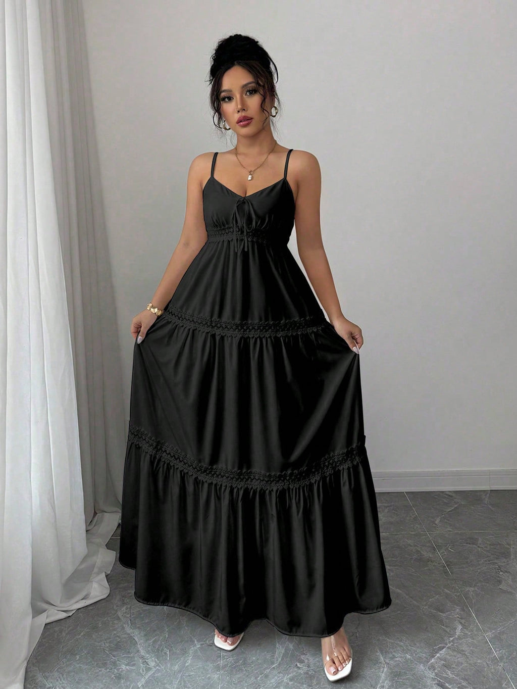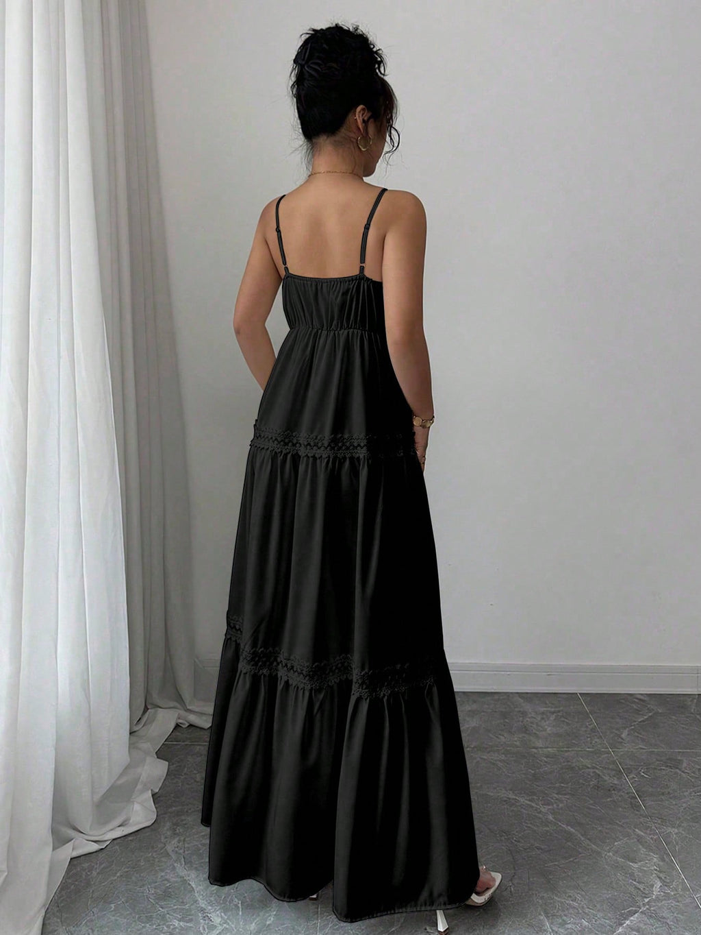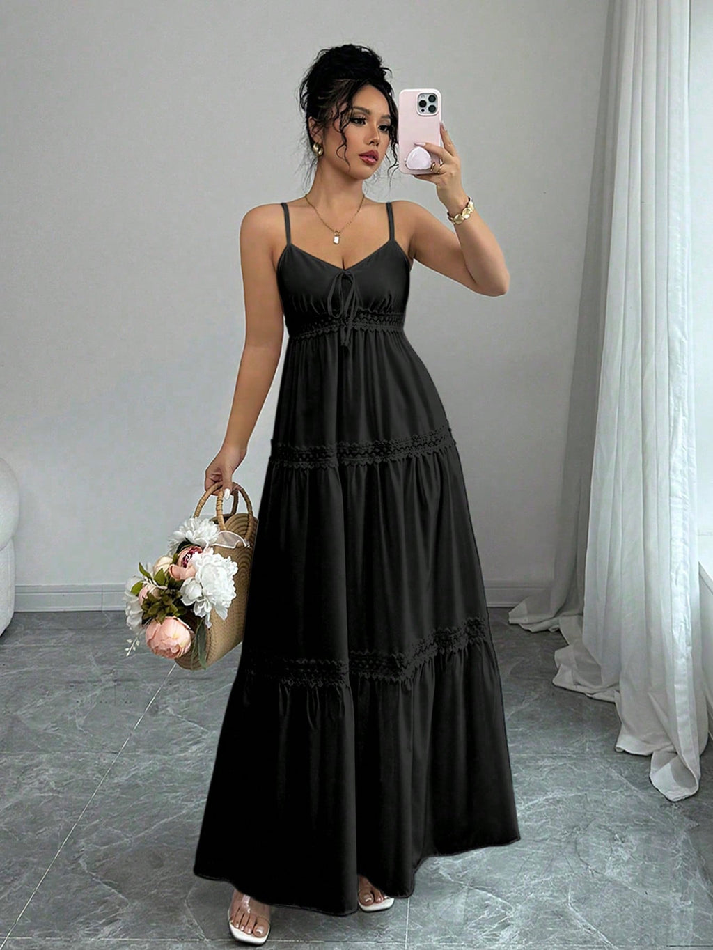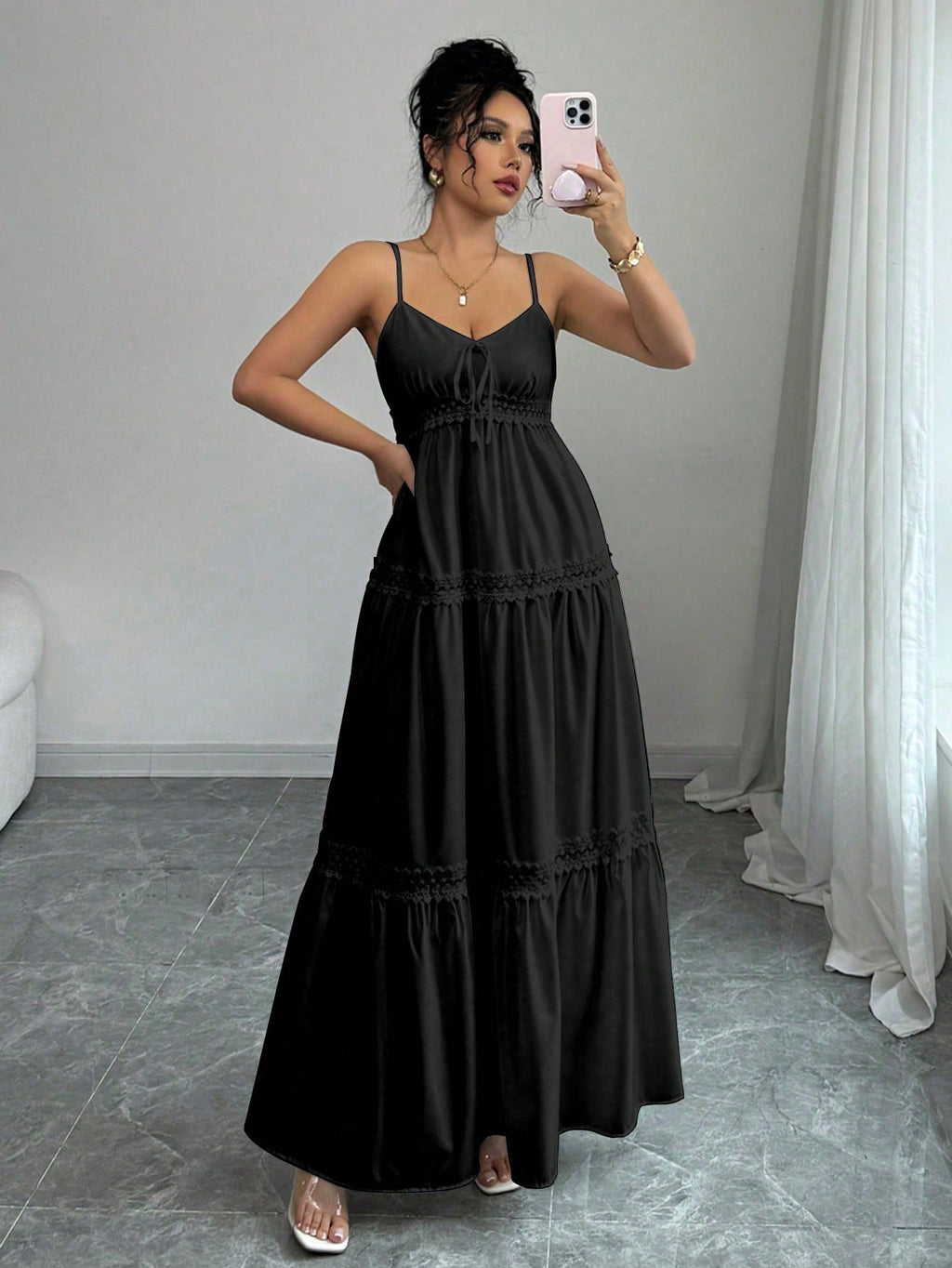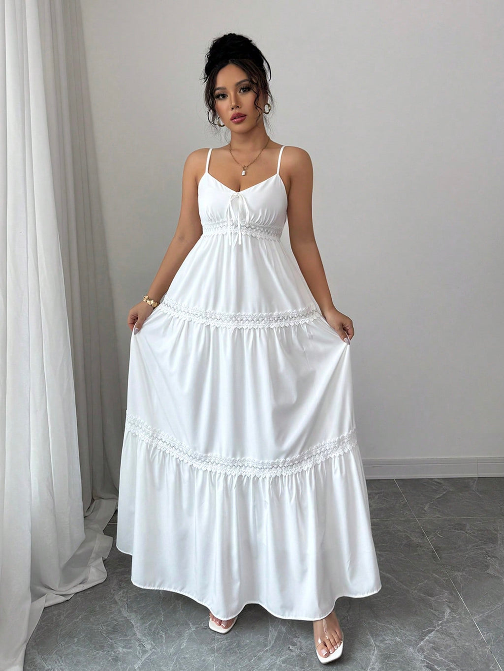 MIU Women Adjustable Strap Waist Elegant Solid Color Casual Dress, Suitable For Summer