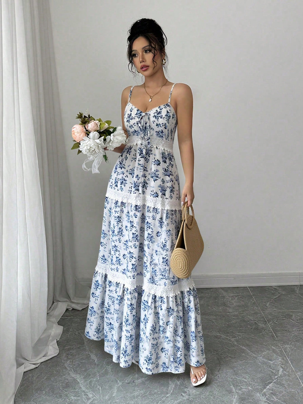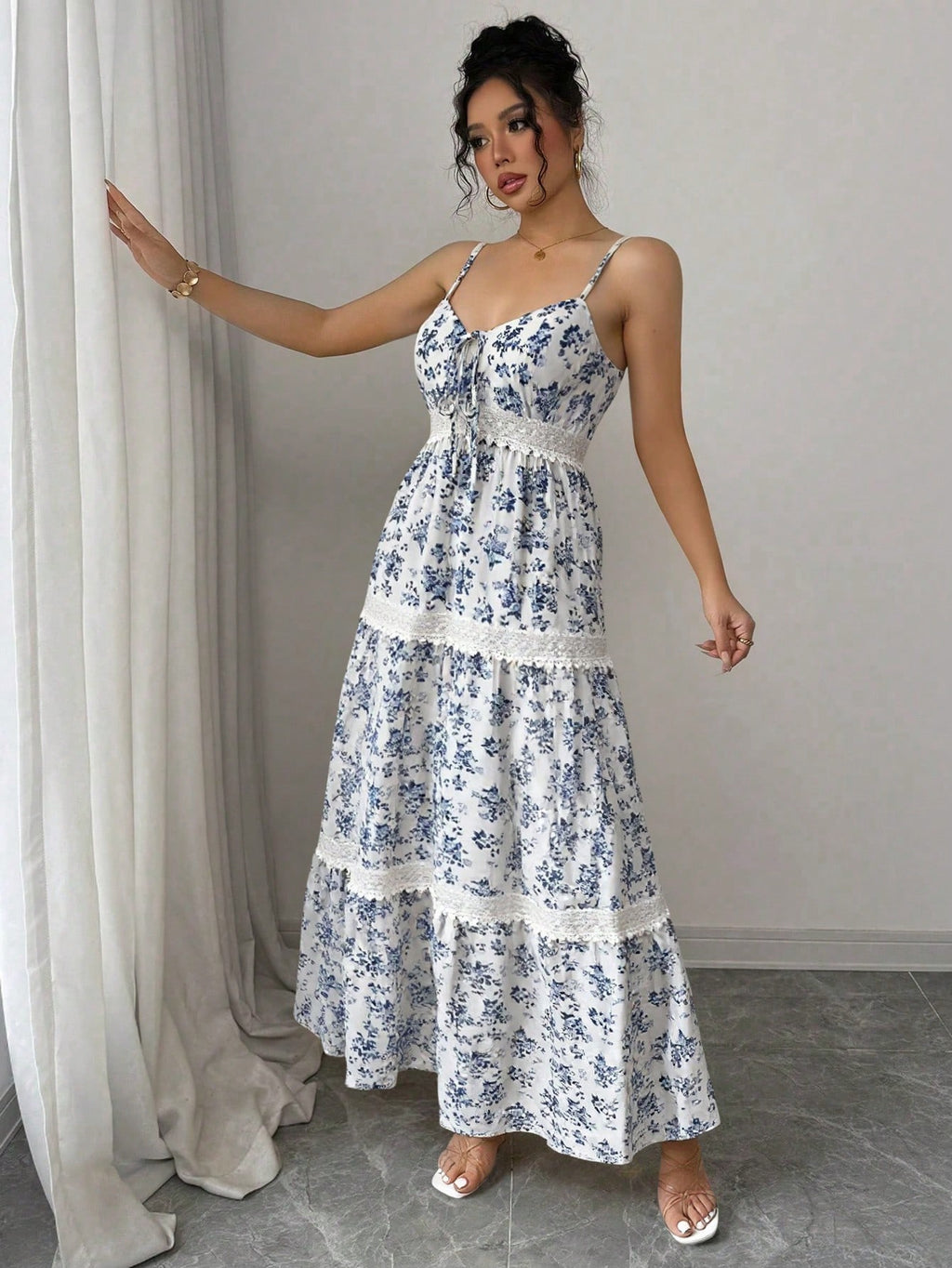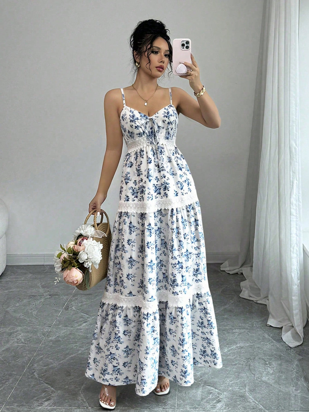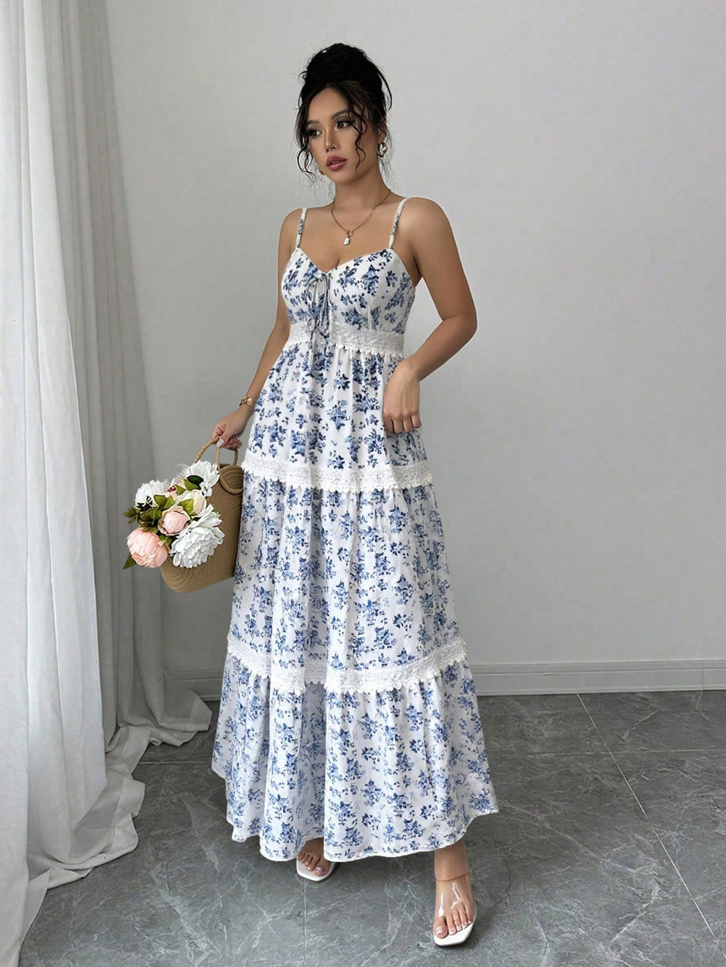 MIU Women Adjustable Strap Waist Elegant Solid Color Casual Dress, Suitable For Summer