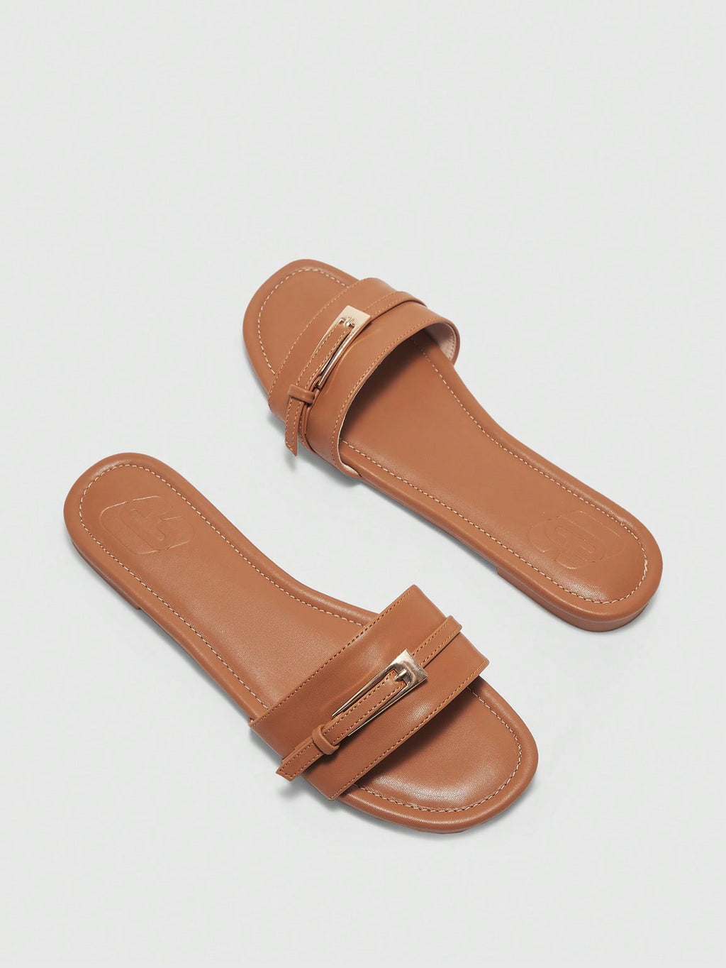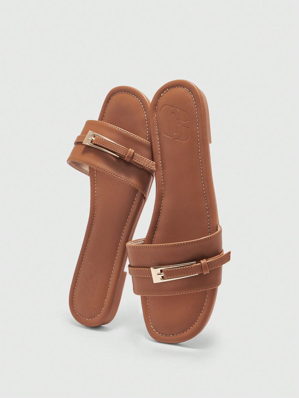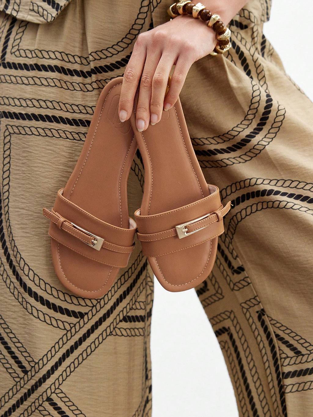 MIU Women Brown Comfortable Spring/Summer Fashionable Buckle Decor Sandals