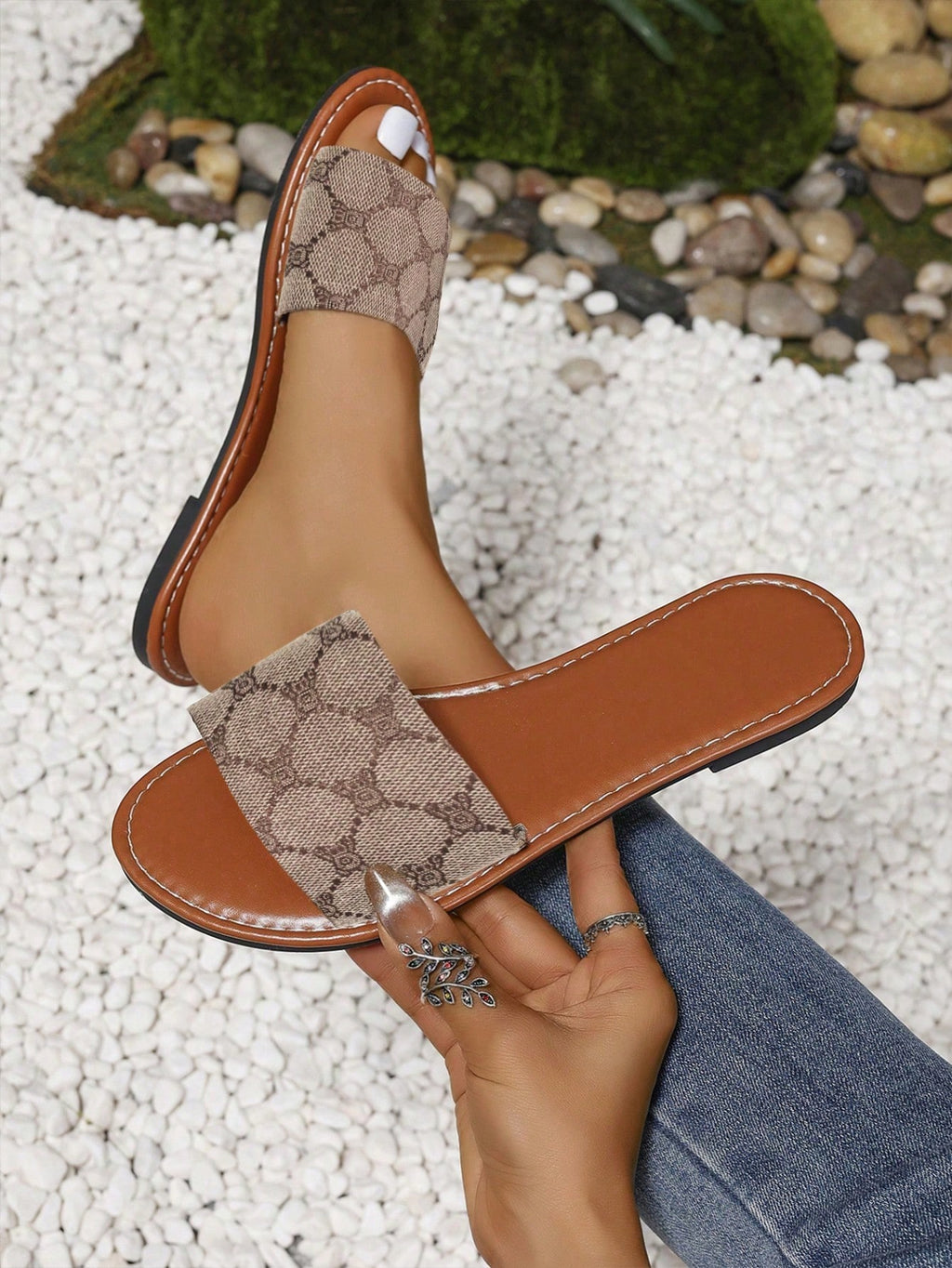 MIU Women Comfortable Fabric Cute Elegant Pattern Round Toe Flat Casual Versatile Holiday Fashion Sandals, Spring/Summer