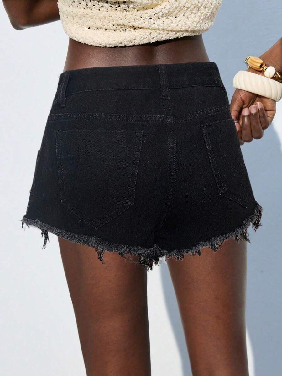 MIU Women Frayed Edge Solid Color Fashion Distressed Denim Shorts, Loose Casual Streetwear Y2K Style