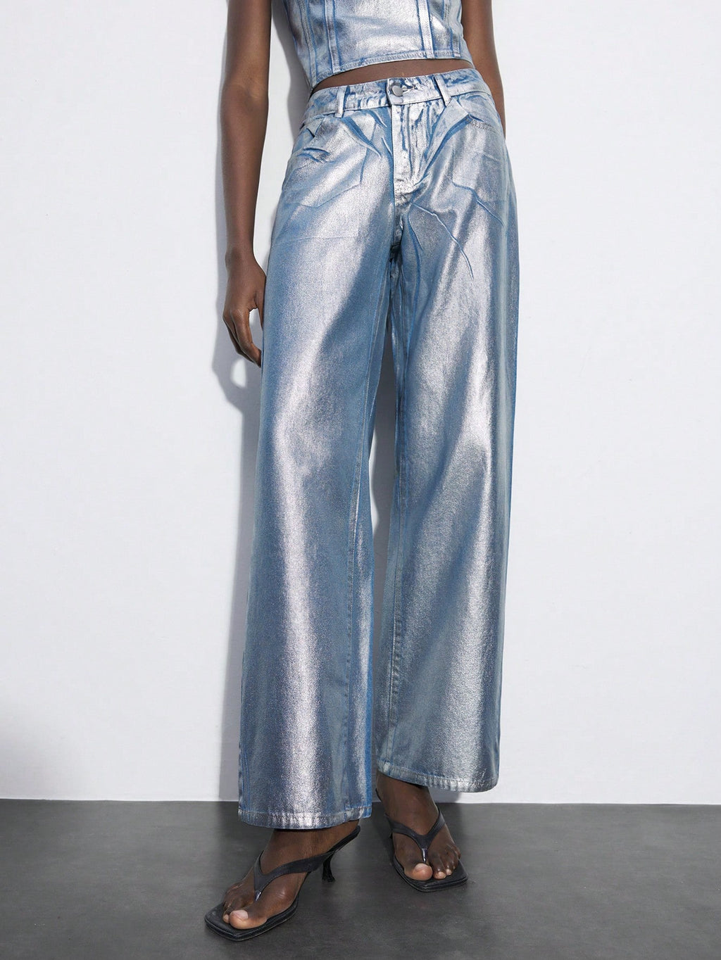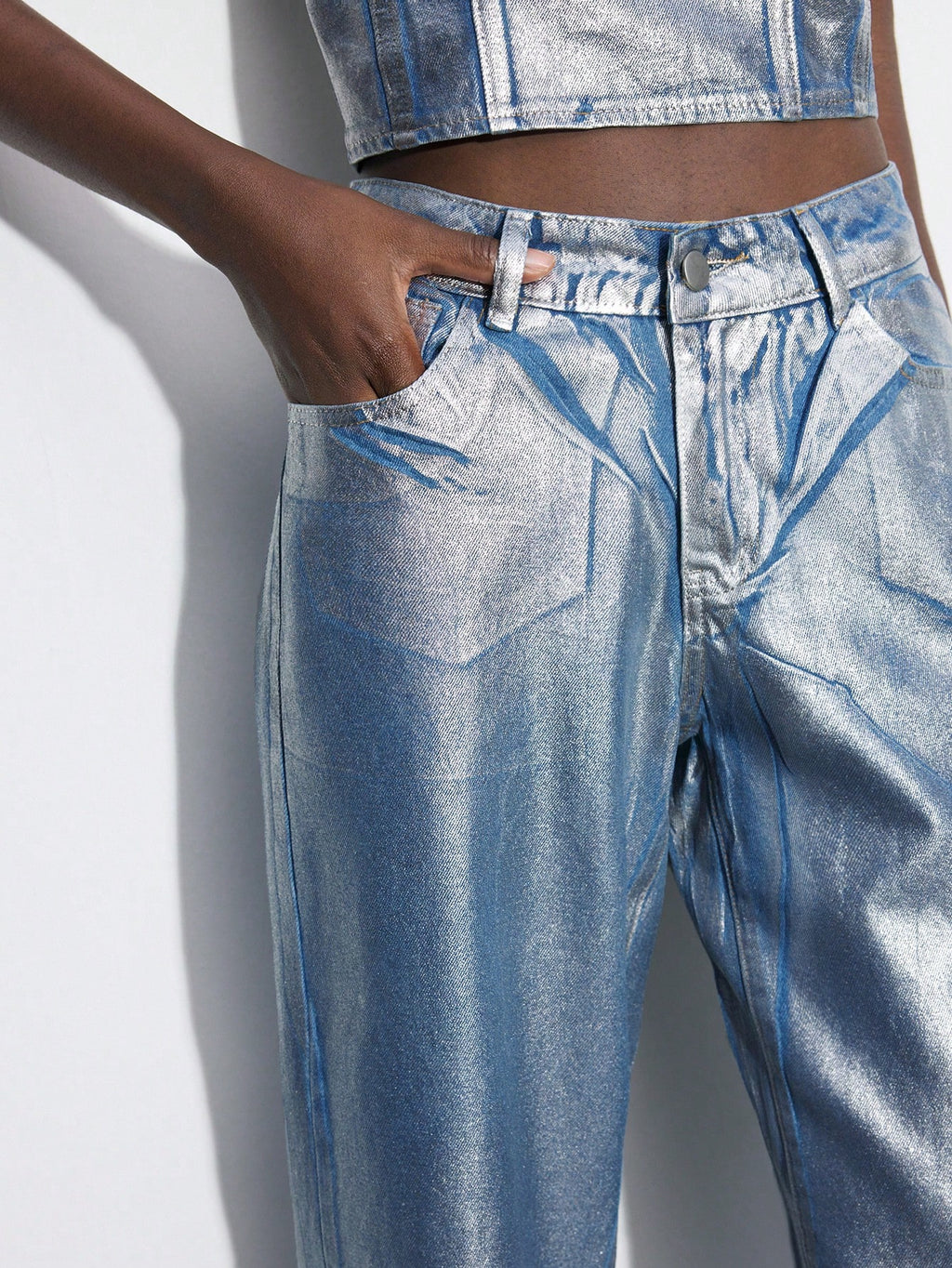 MIU Women Front Button Pocket Simple Casual Denim Jeans, Daily Wear