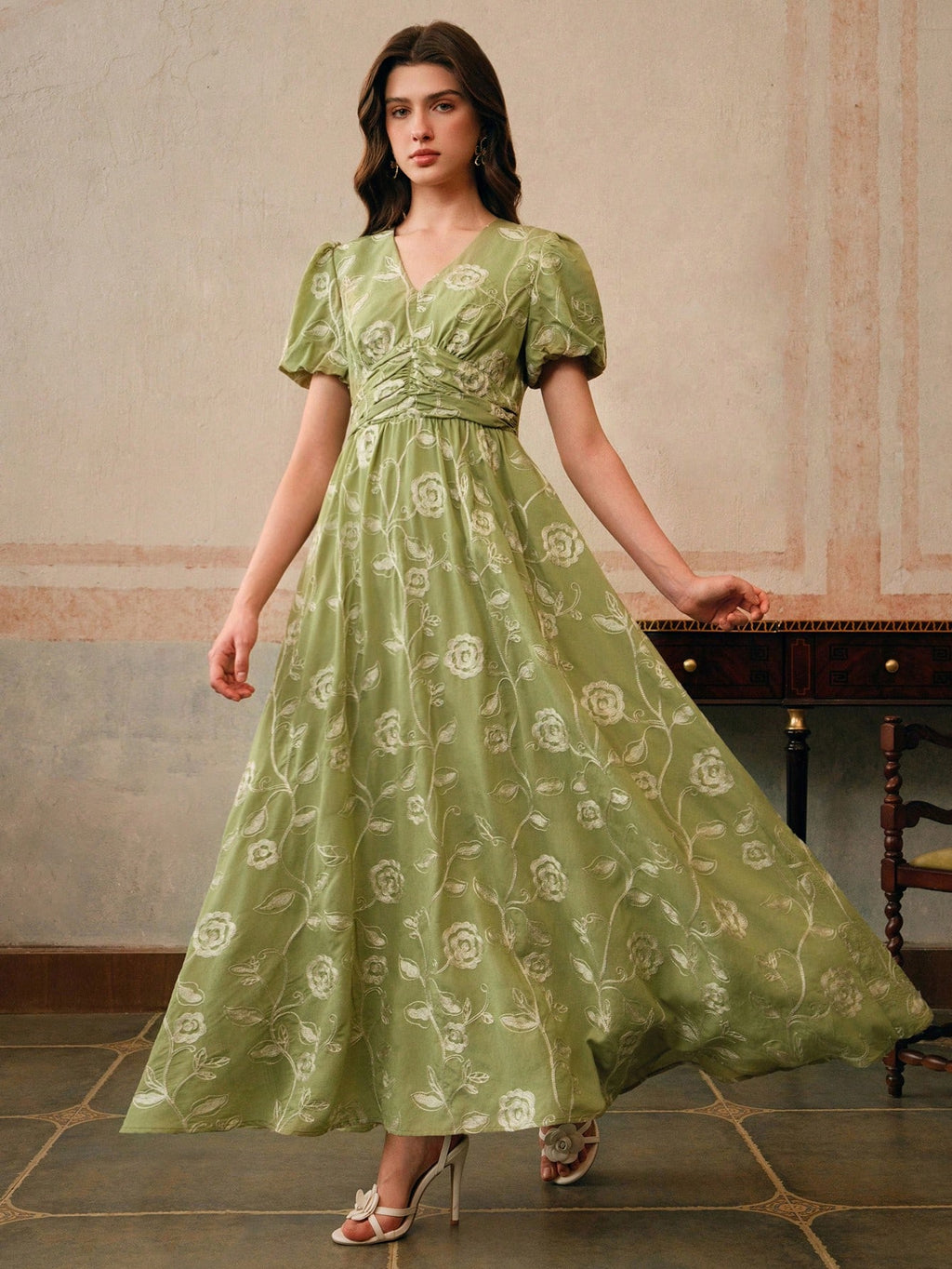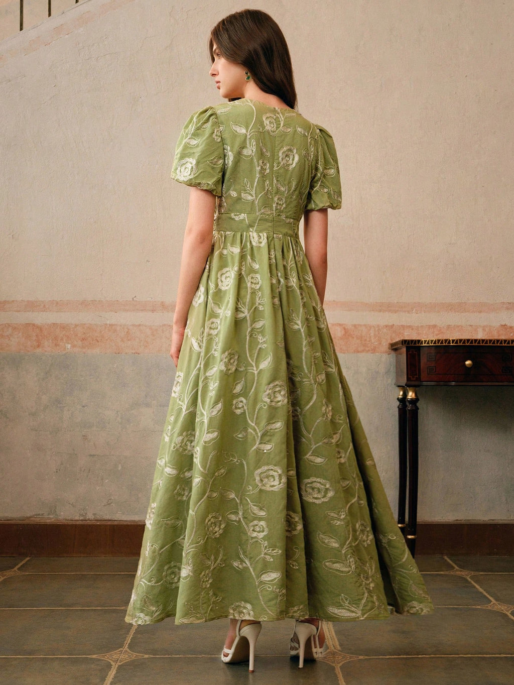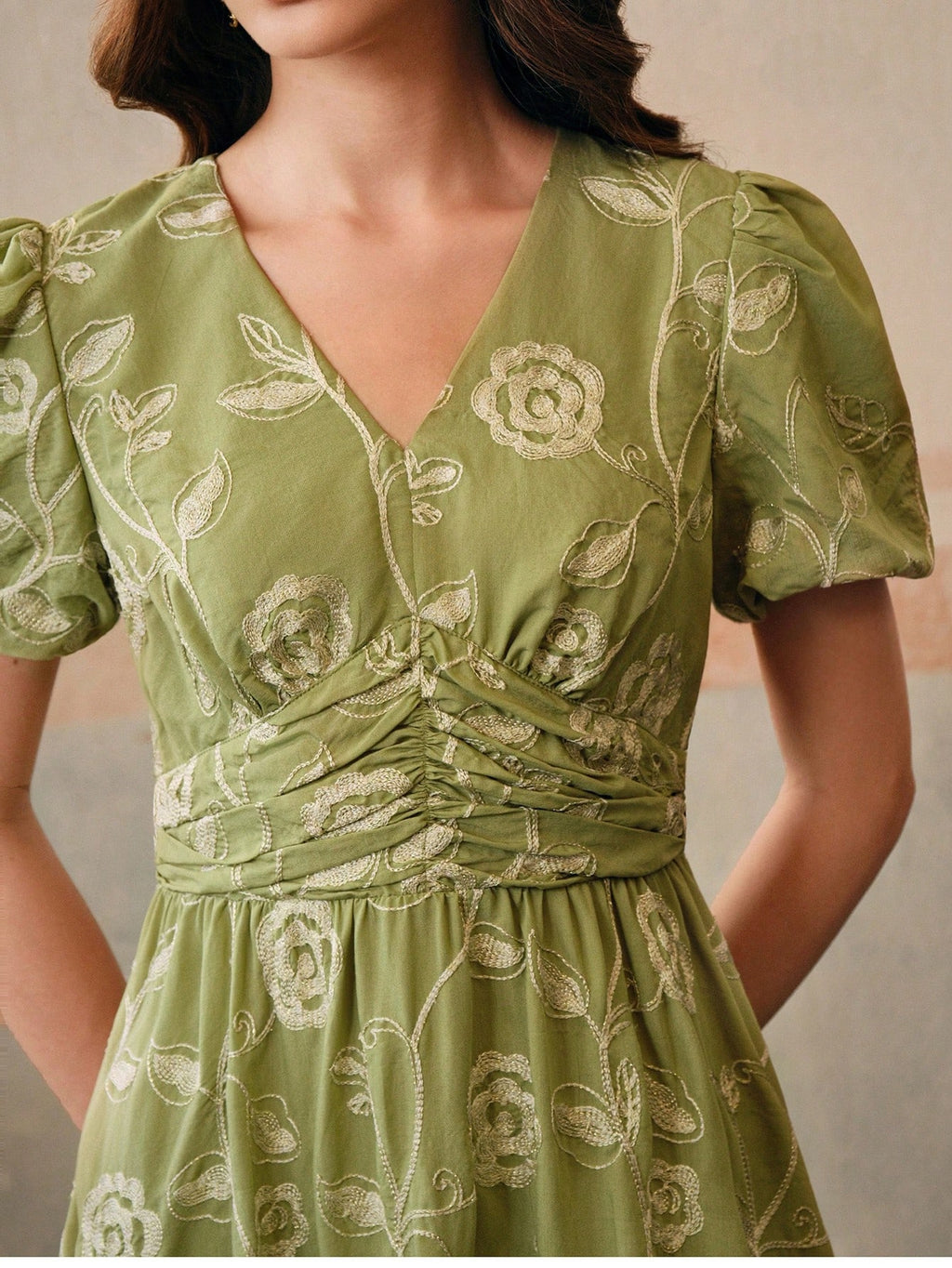 MIU Women Long Sleeve Embroidered Elegant Dress, Formal Dress, Spring Fashion