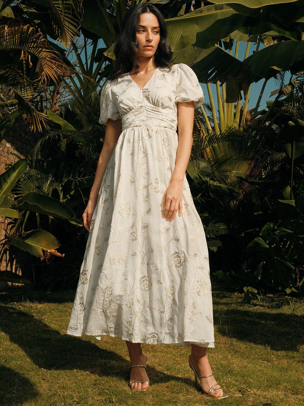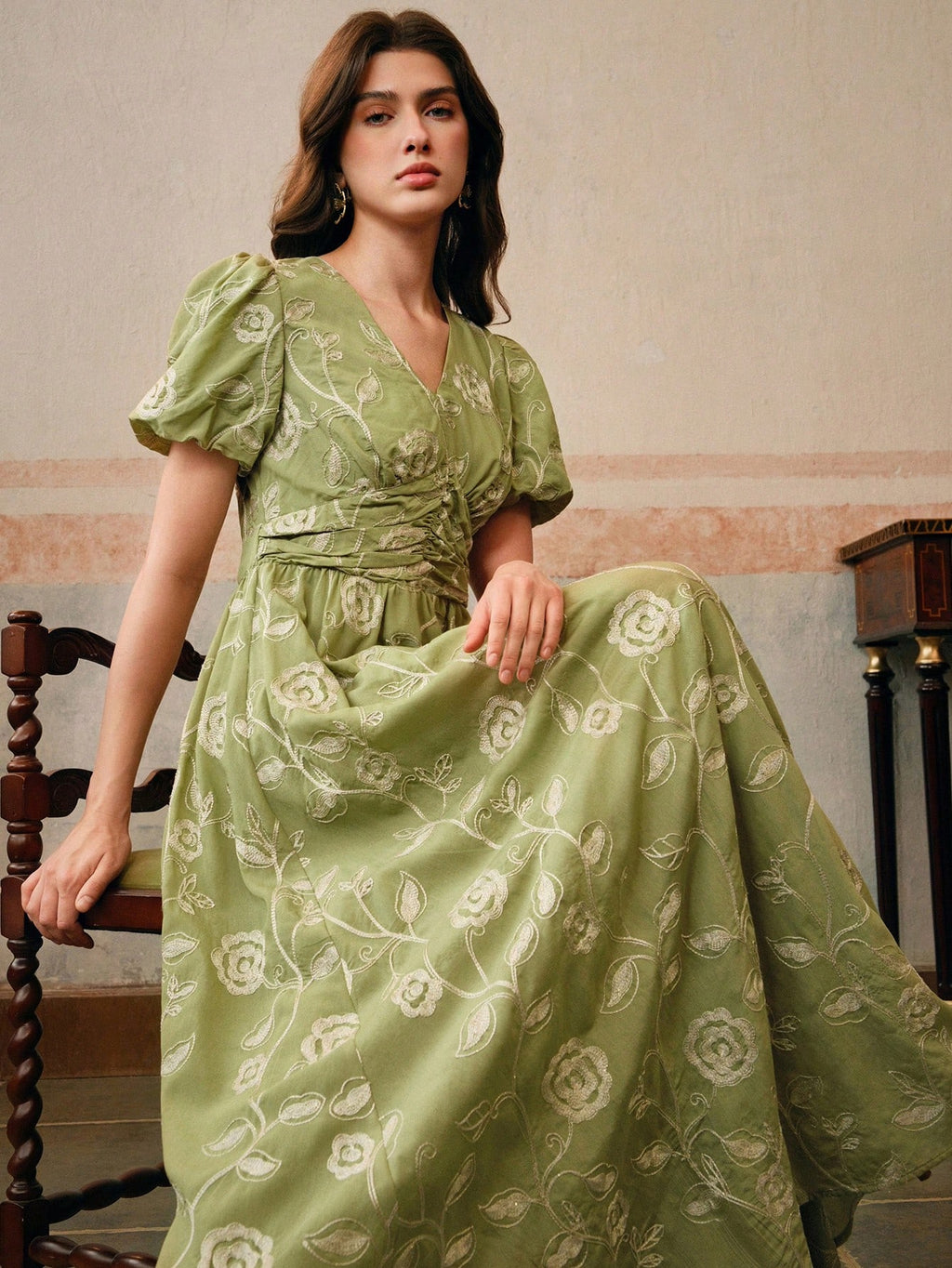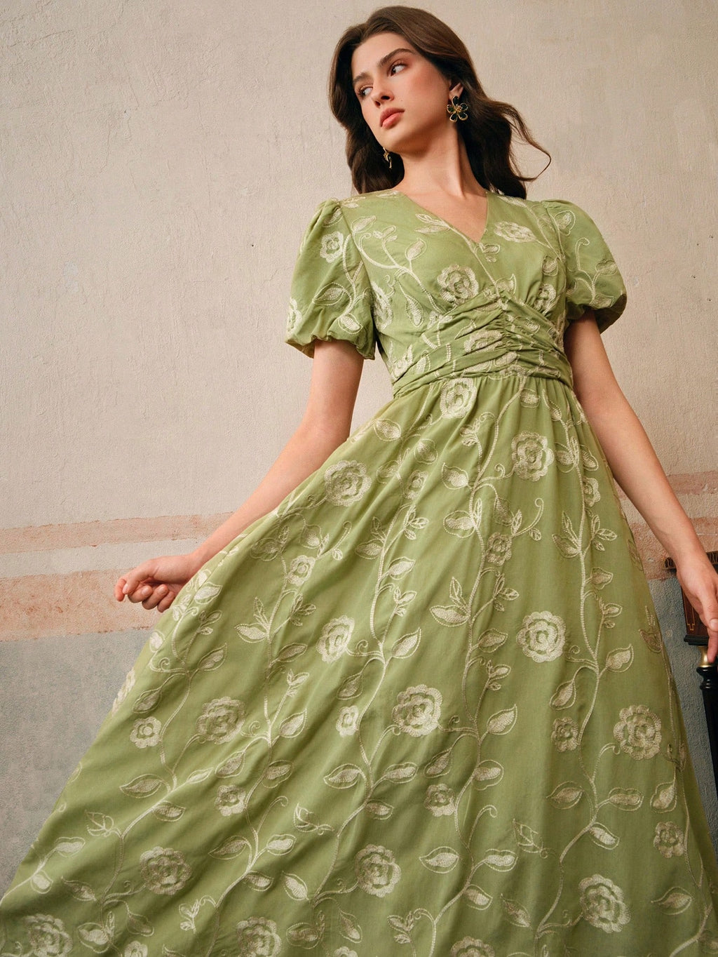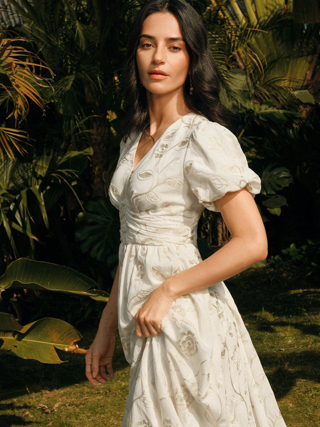 MIU Women Long Sleeve Embroidered Elegant Dress, Formal Dress, Spring Fashion