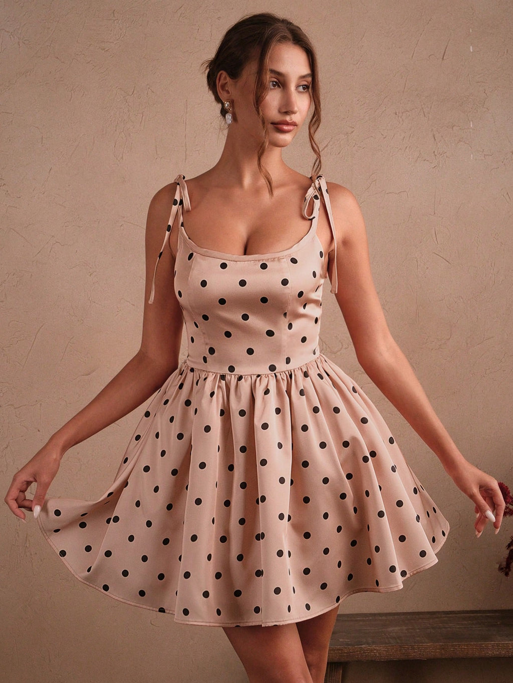 MIU Women Polka Dot Bowknot Sleeveless Mini Dress, Suitable For Summer, Beach, Festival, Holiday, Sexy Party
