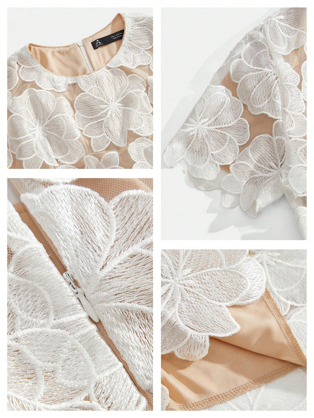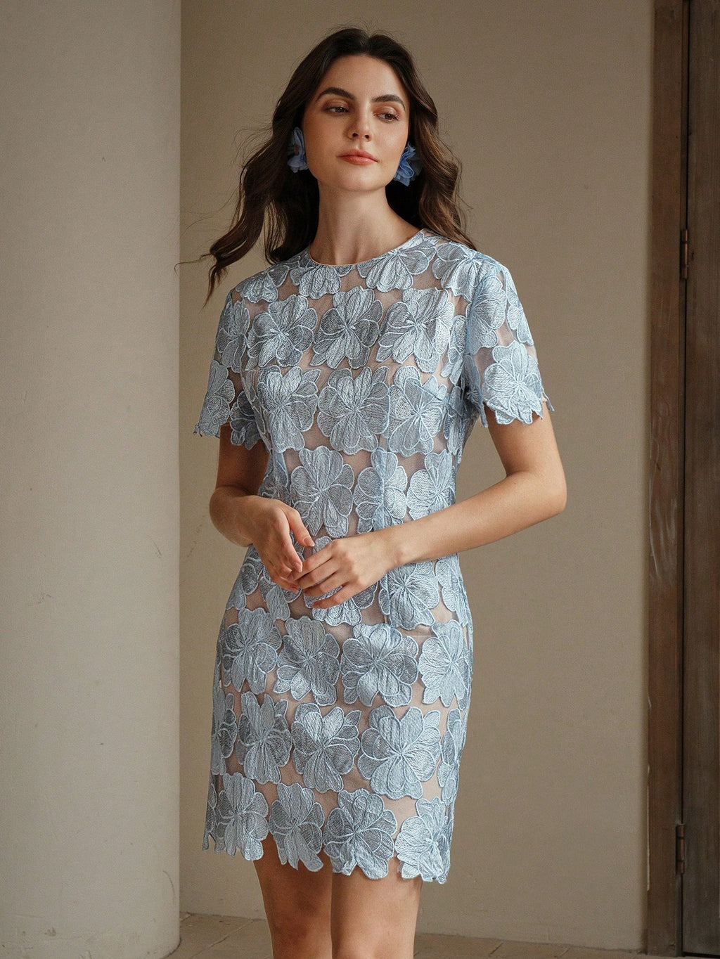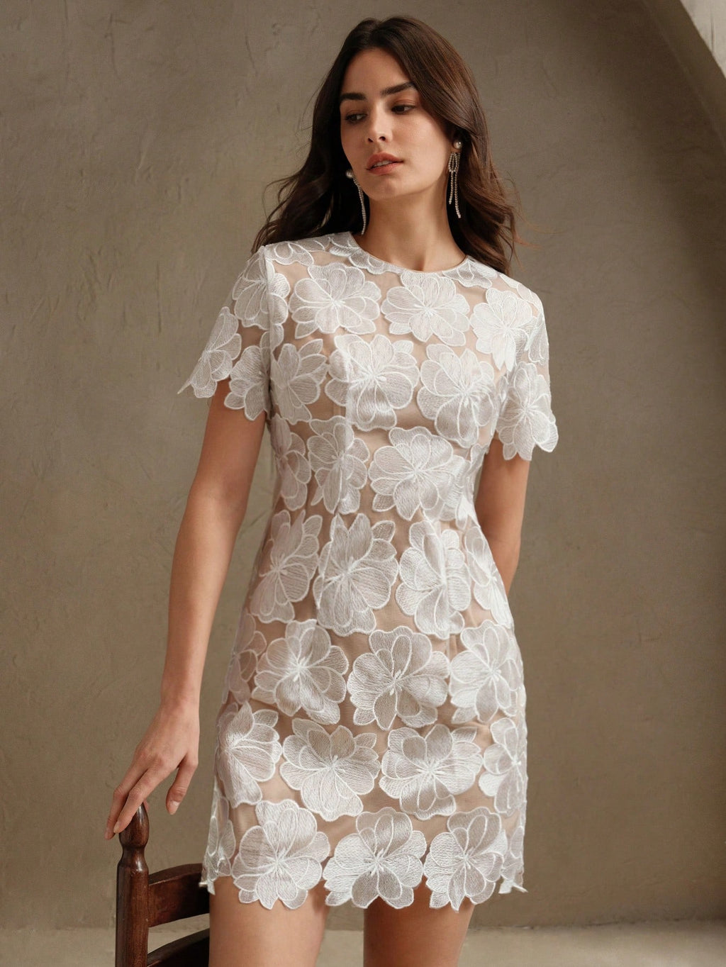 MIU Women Short Sleeve Embroidered Elegant Fitted Mini Dress, Sexy, Suitable For Spring/Summer Spring Dresses For Women Women Short Dresses