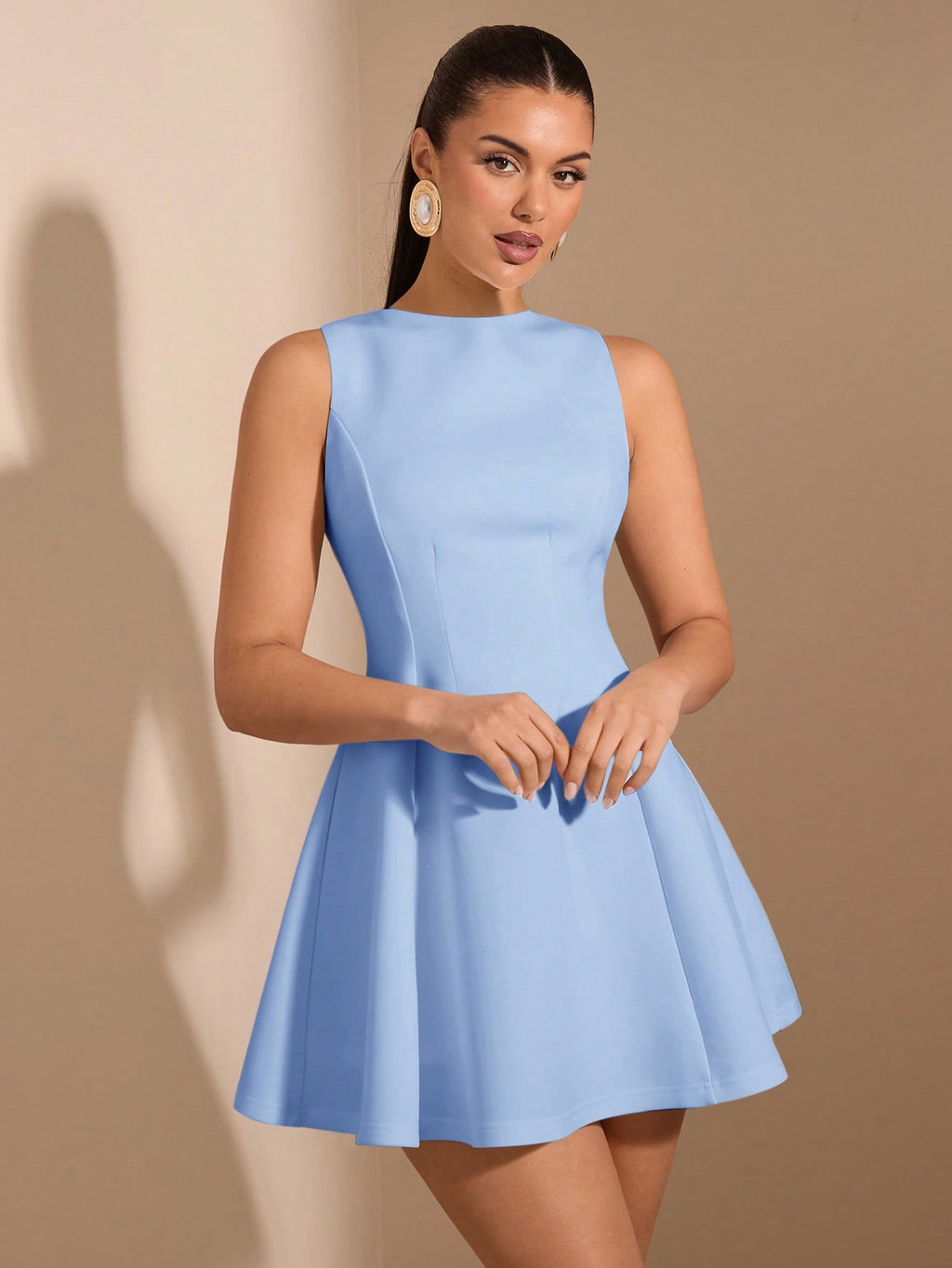 MIU Women Solid Color Sleeveless A-Line Elegant Midi Dress, Suitable For Spring/Summer And Dates,Pastel Dresses For Women,Business Casual Woman