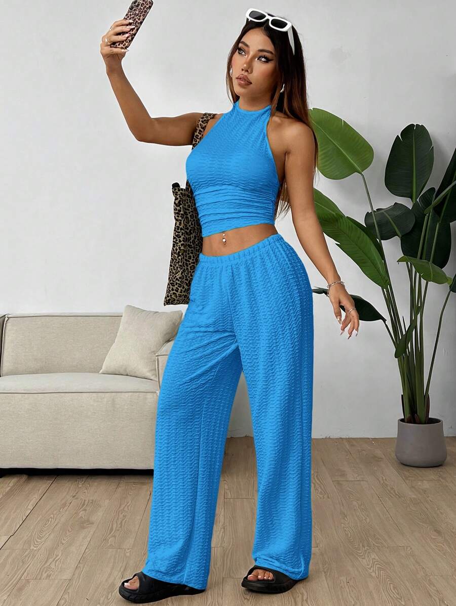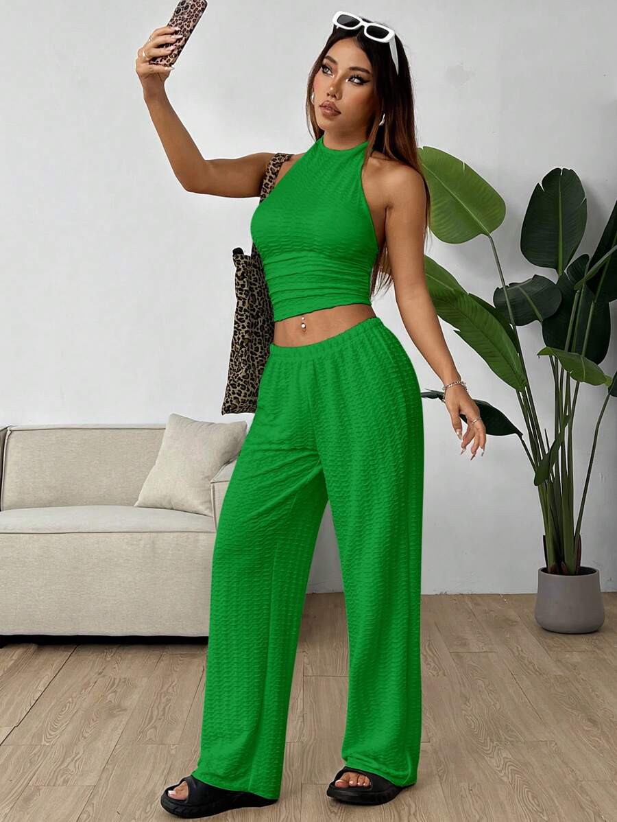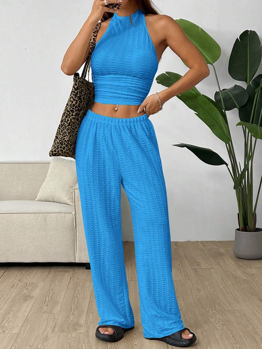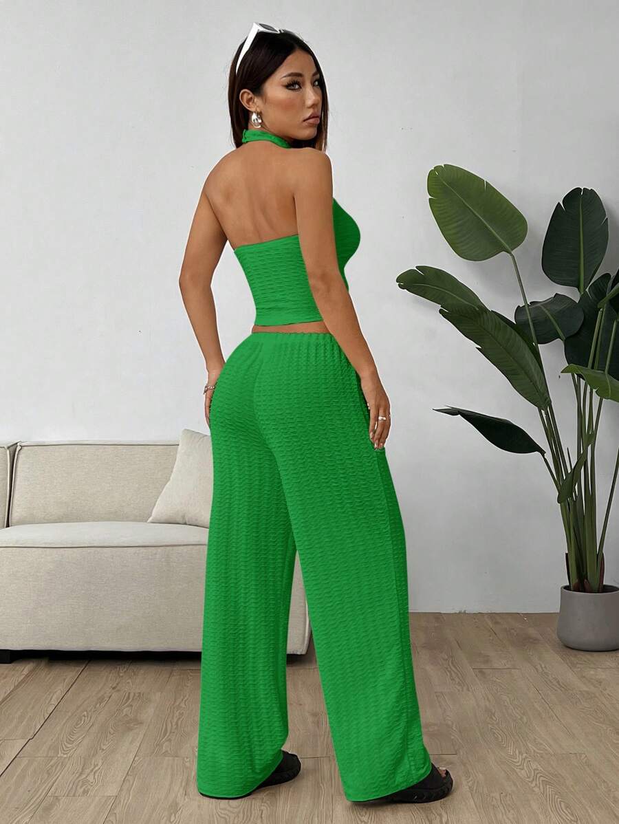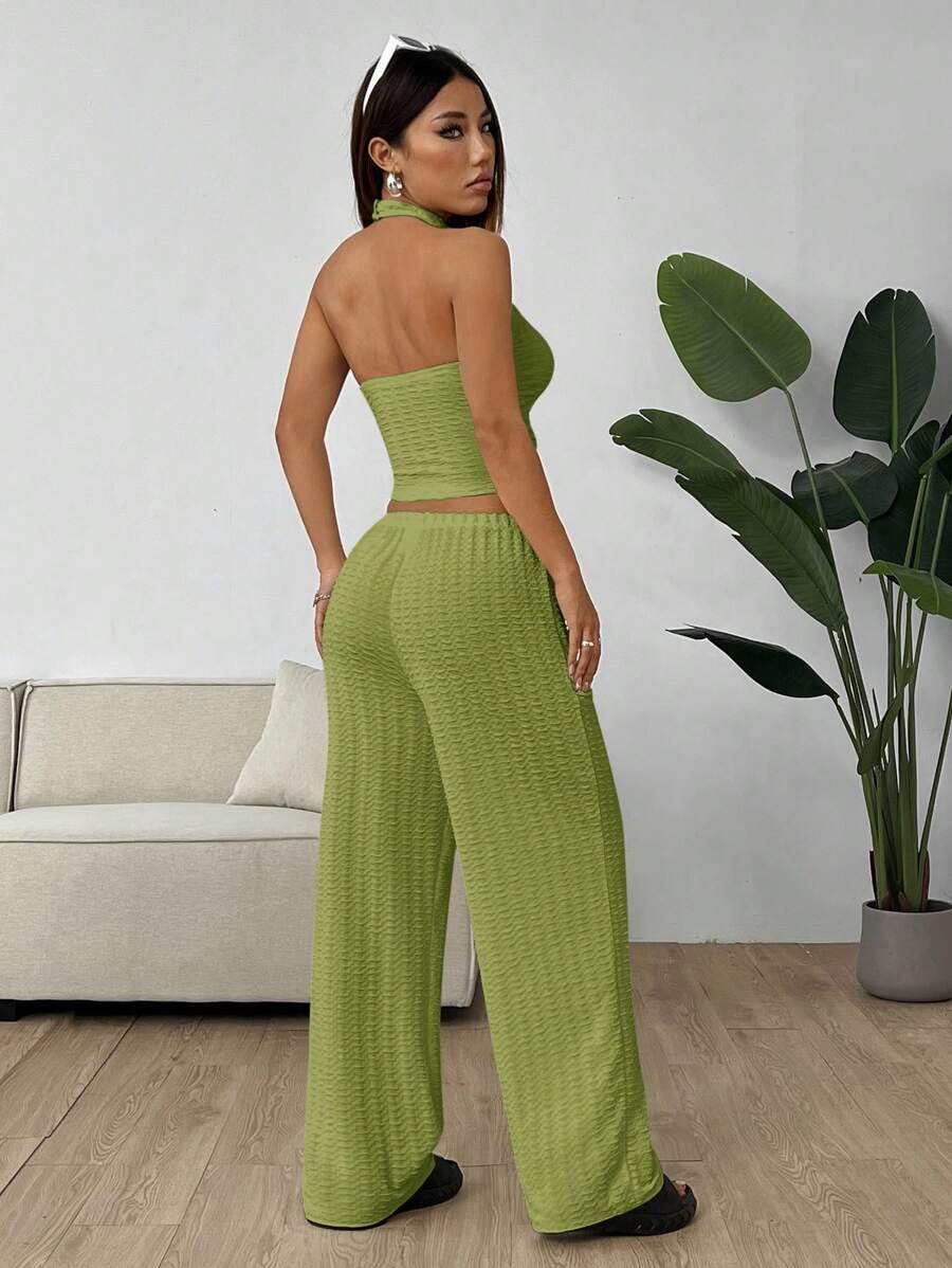 MIU Women Summer Casual Solid Color Halter Neck Top
